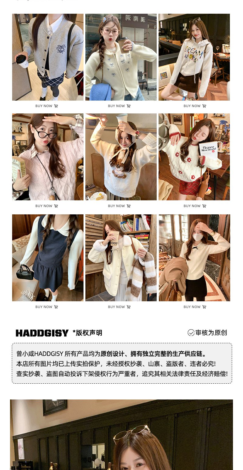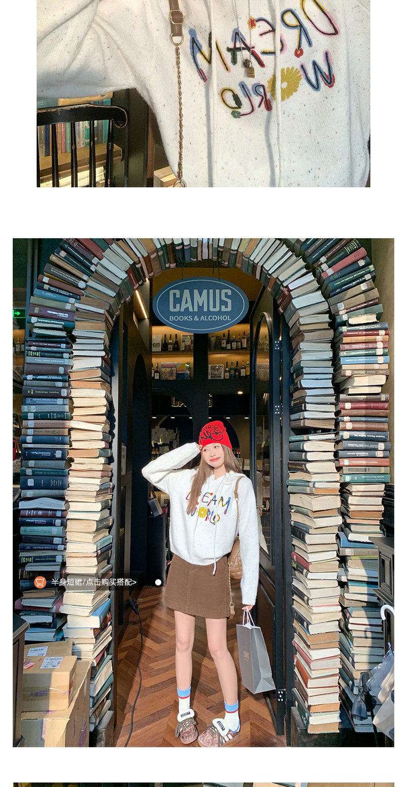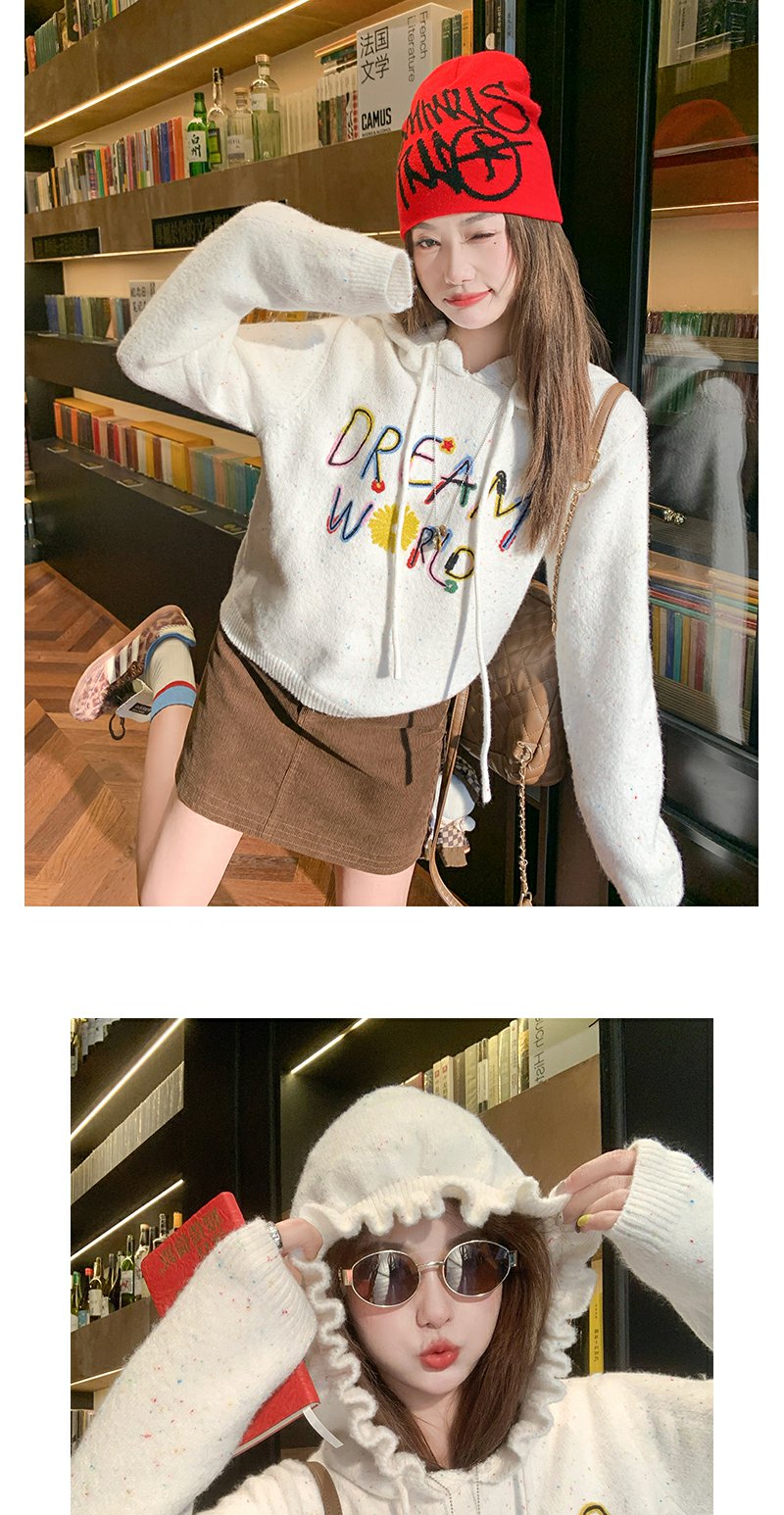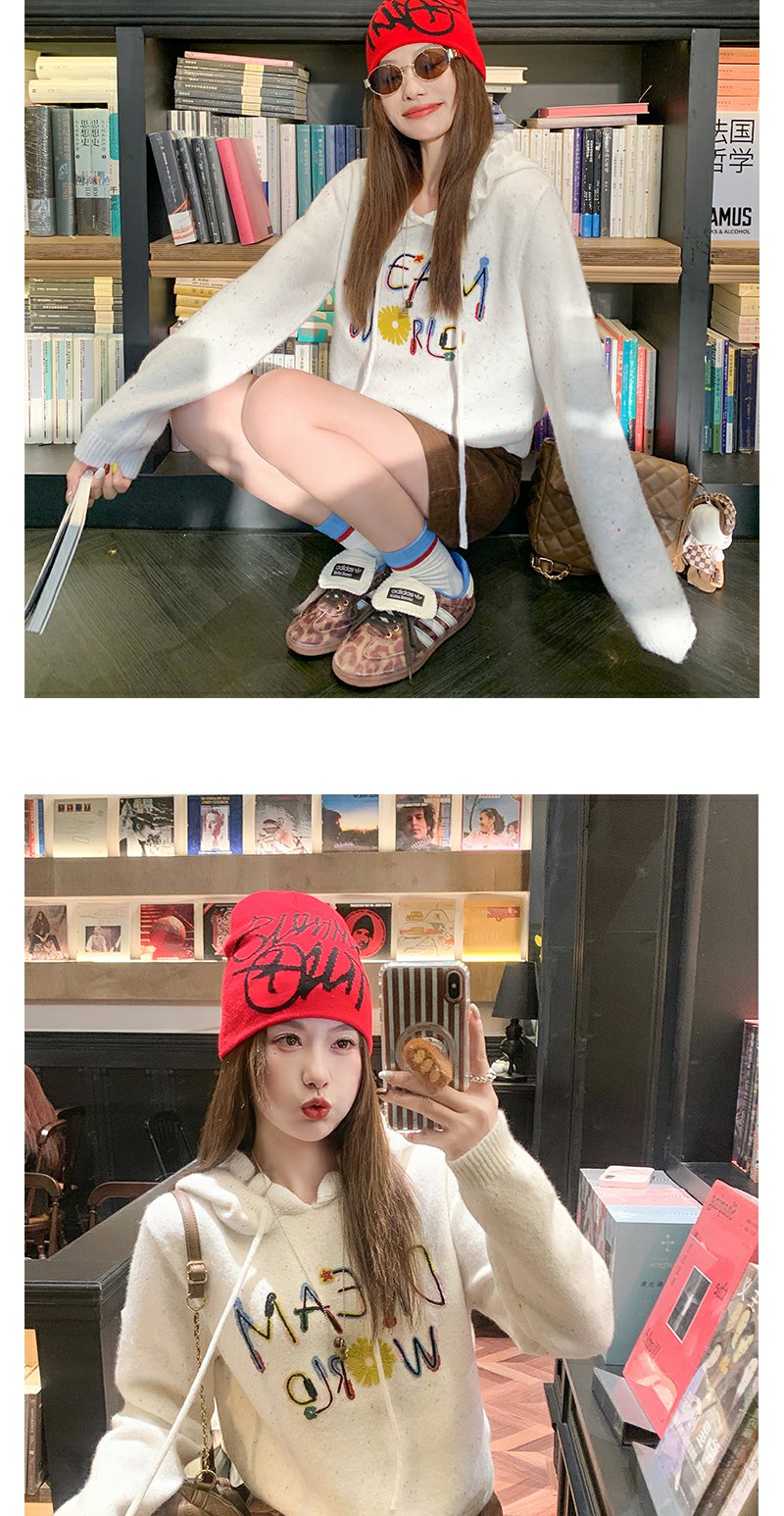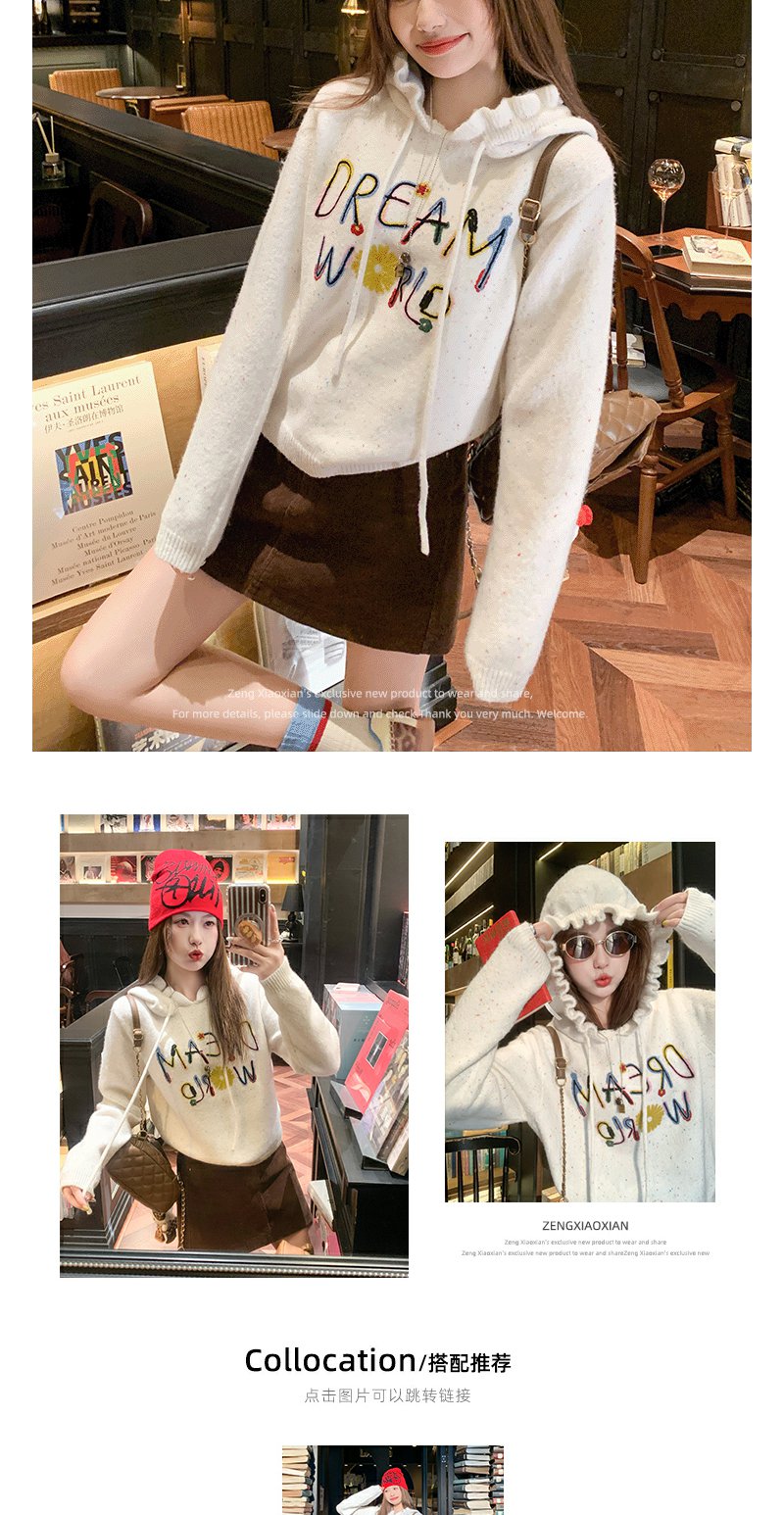 <曾小咸推荐>韩版连帽套头毛衣刺绣款