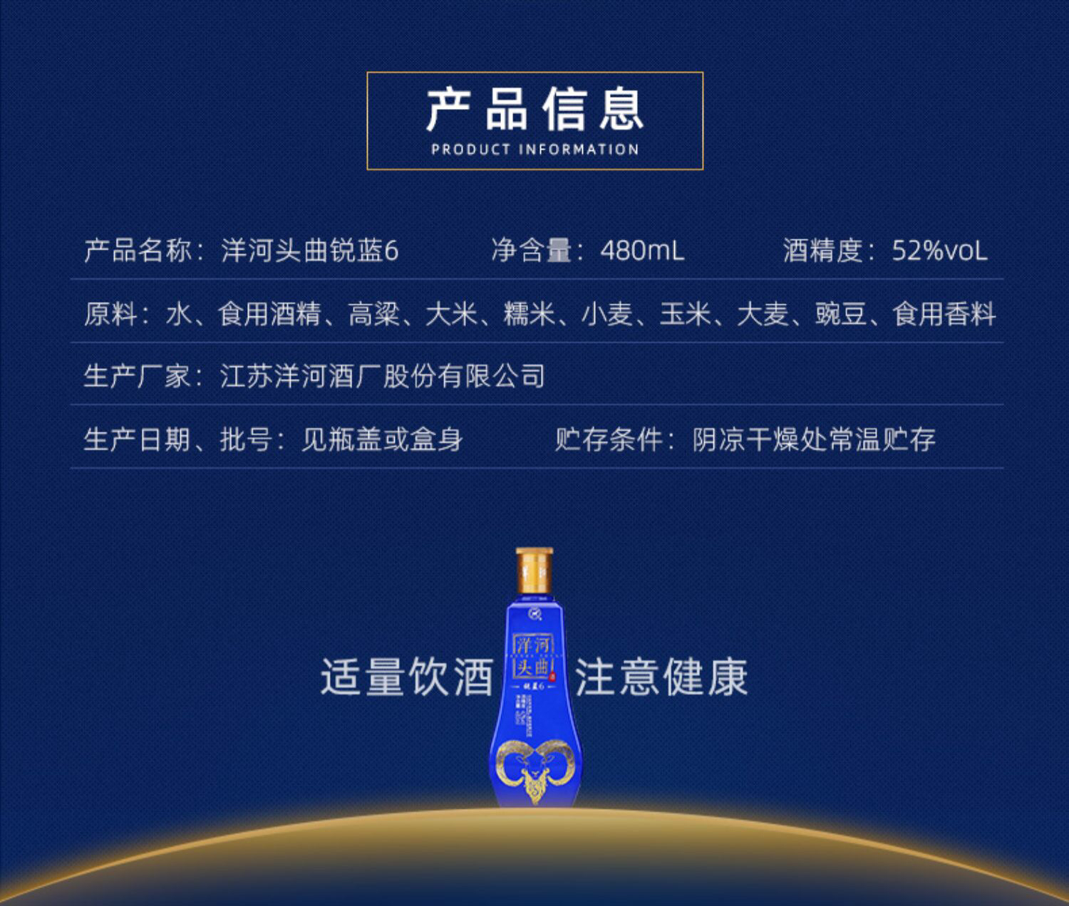 【新品】52度洋河头曲锐蓝6 480ml