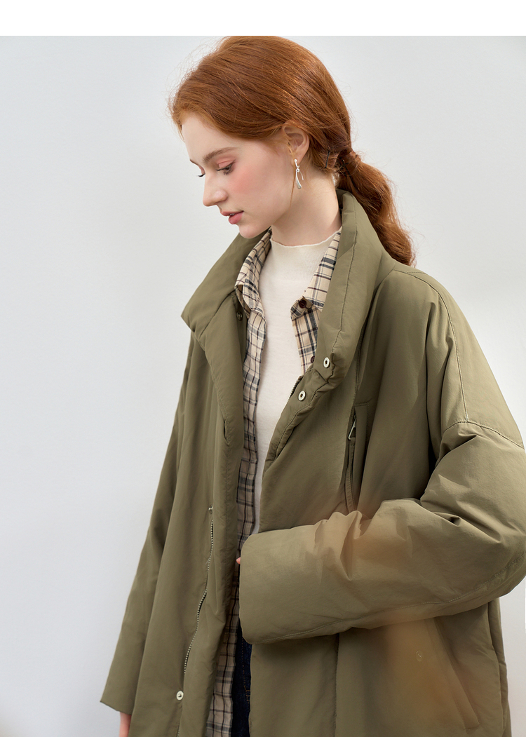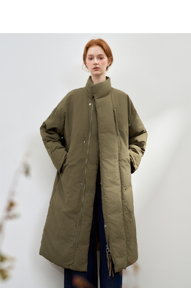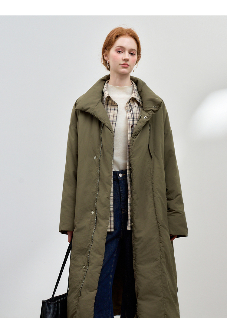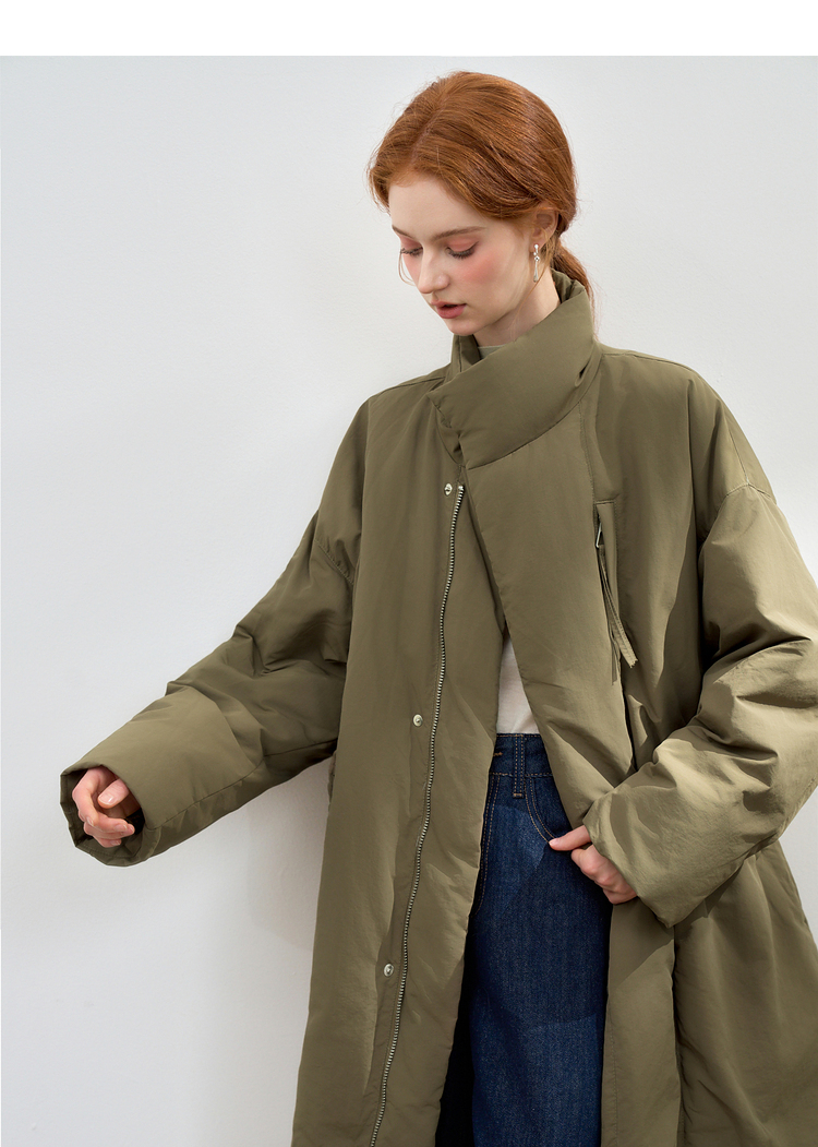 设计感立领蓬松保暖长款羽绒服女秋冬保暖面包服外套V0043046