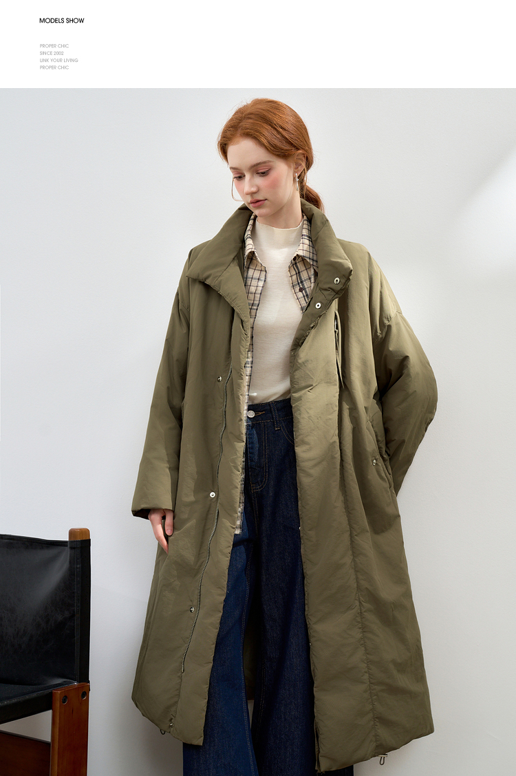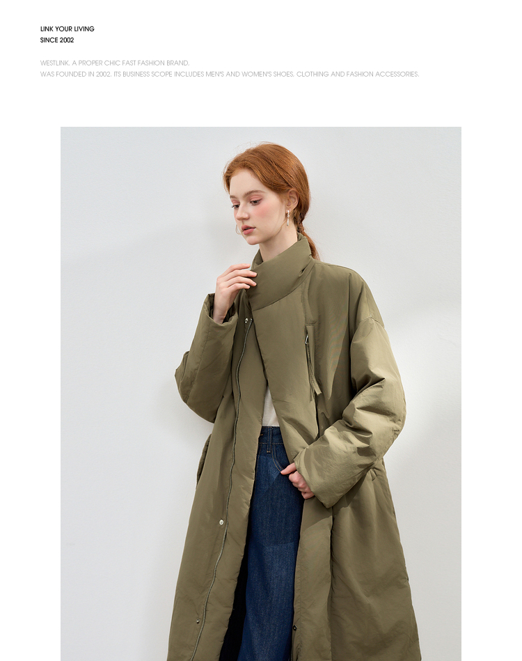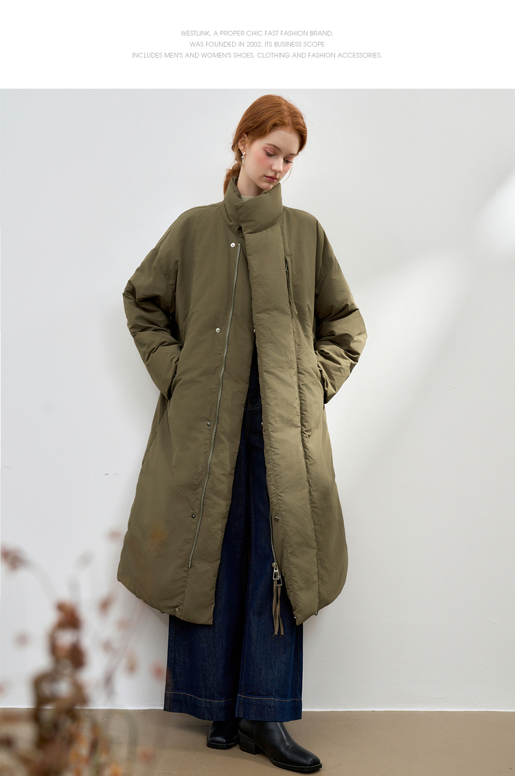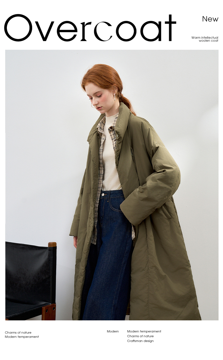 设计感立领蓬松保暖长款羽绒服女秋冬保暖面包服外套V0043046