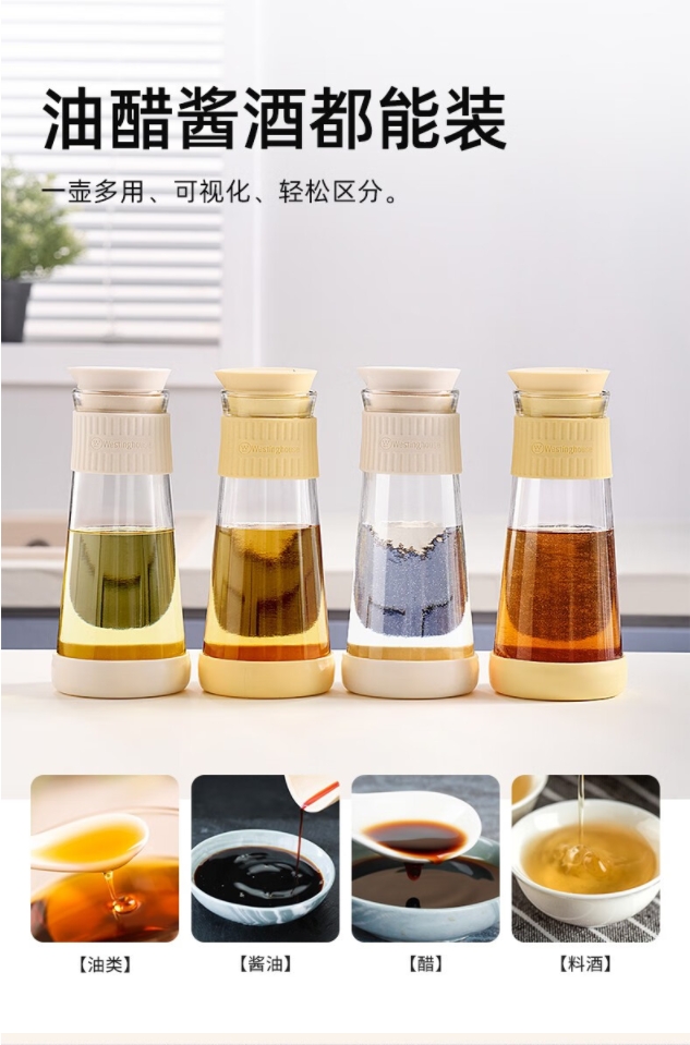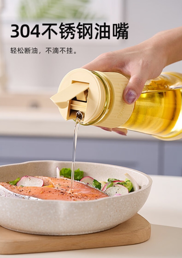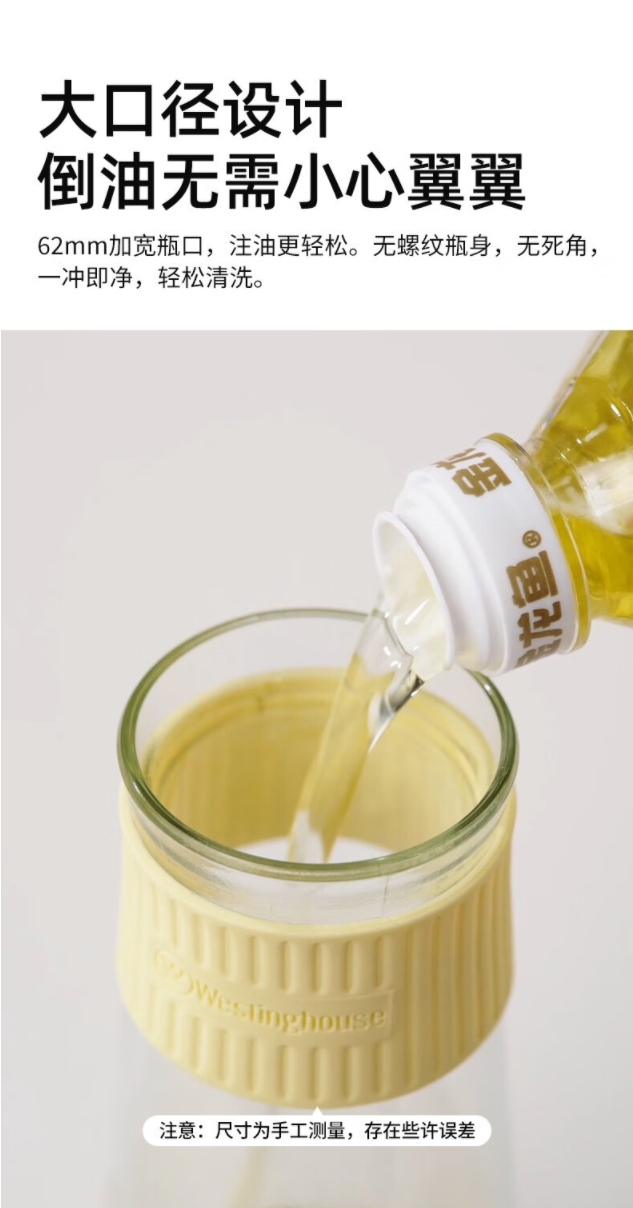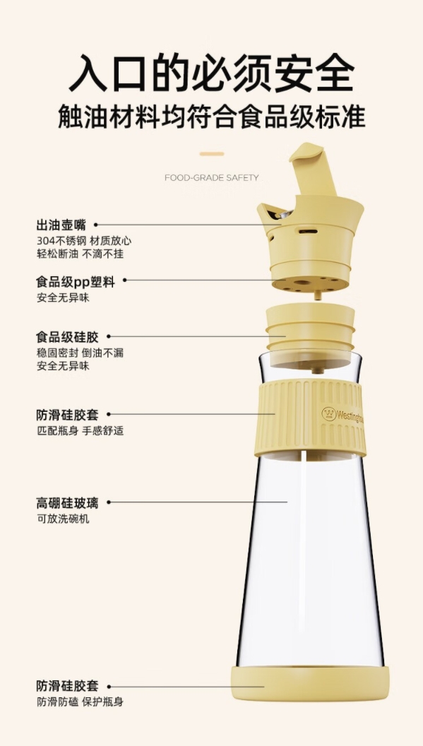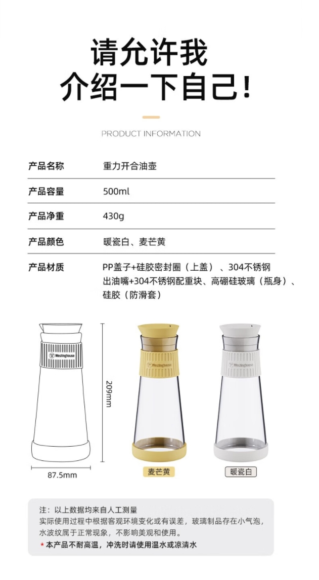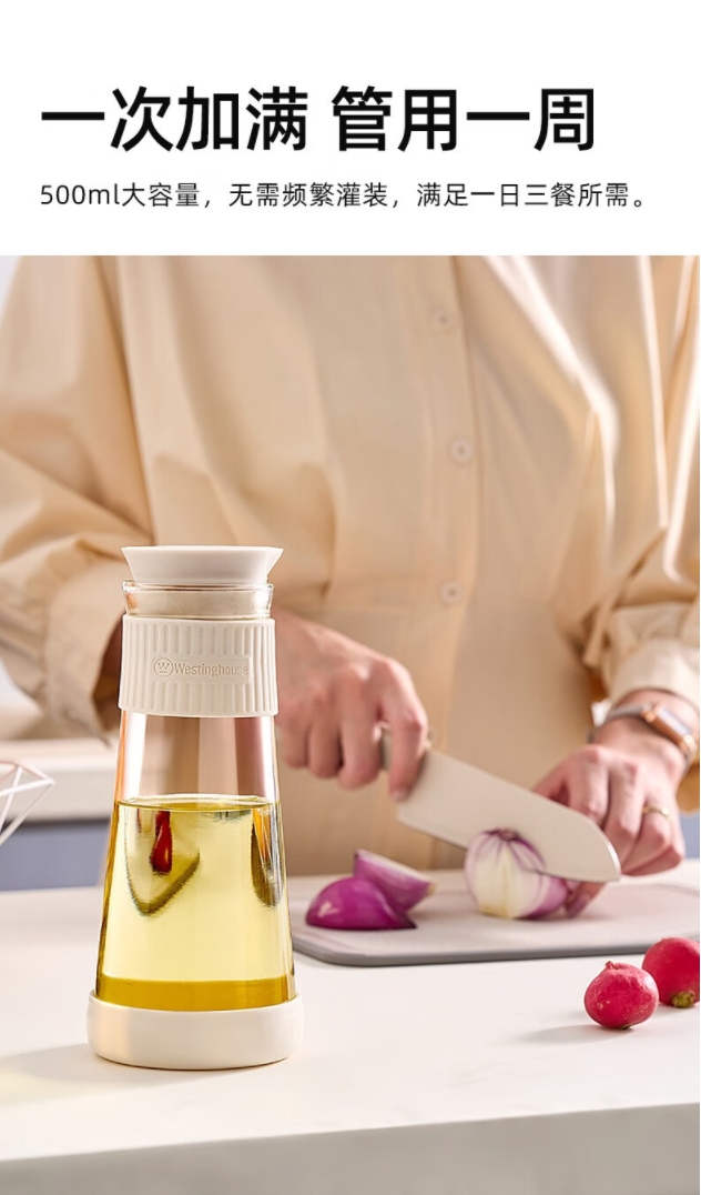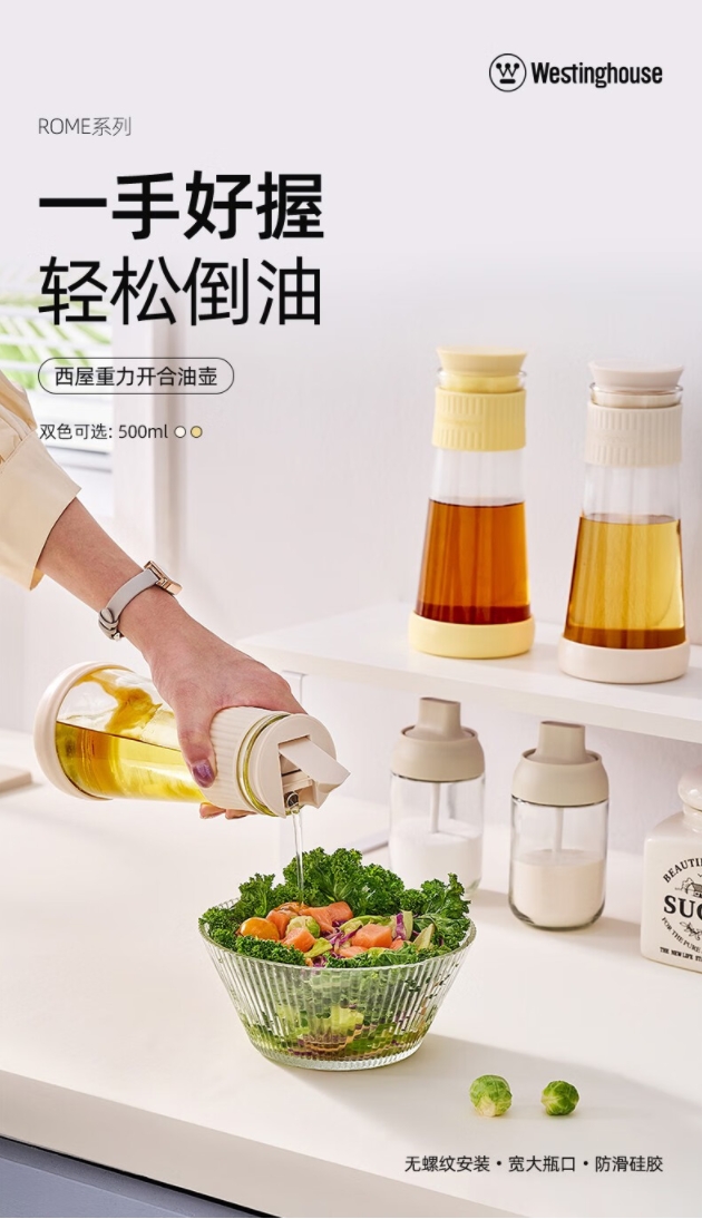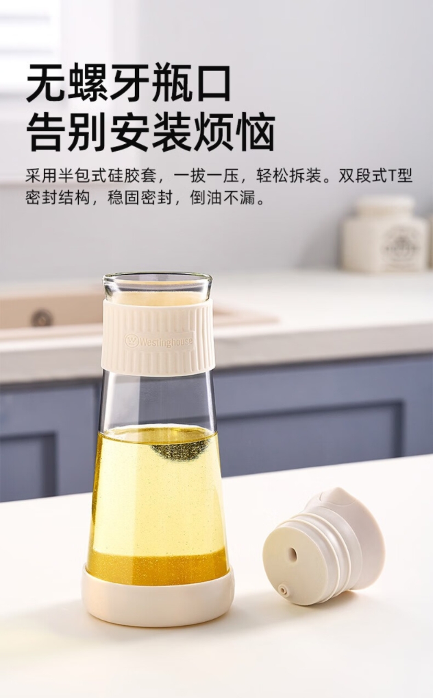 【美国西屋全玻璃油壶】西屋(Westinghouse)美国西屋玻璃油壶厨房家用防漏油瓶自动开合酱油醋调料瓶专利设计