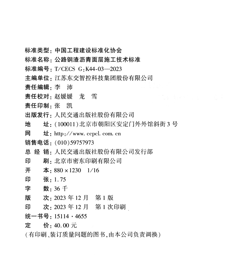书名:公路钢渣沥青面层施工技术标准(T/CECS G:K44-03—2023)