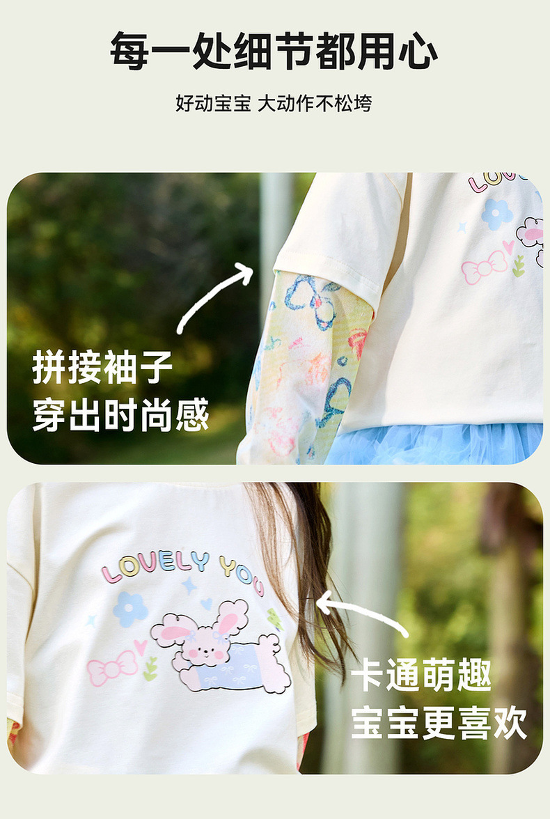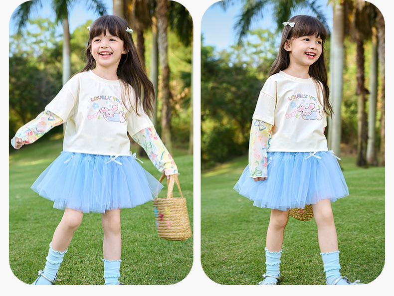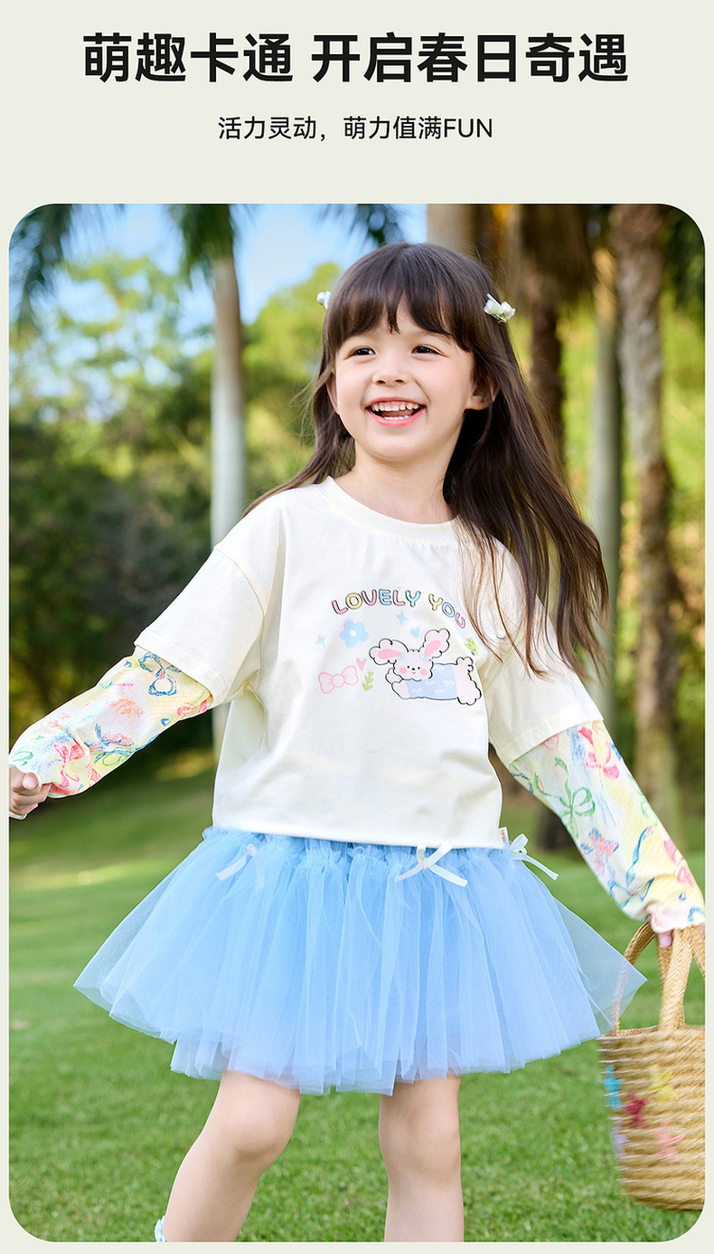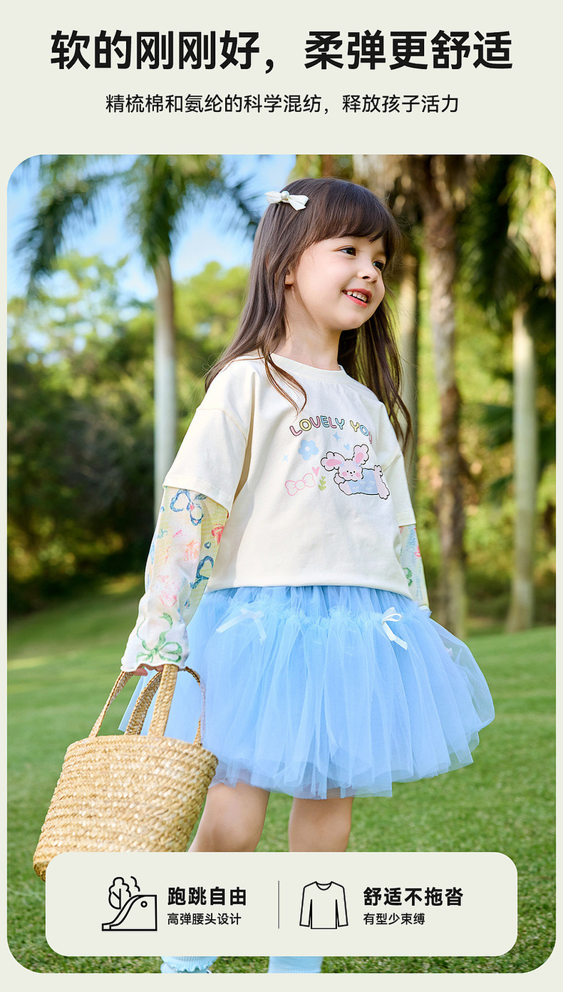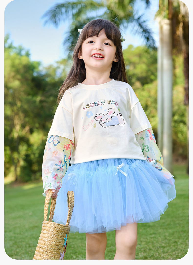嘟嘟家女童T恤假两件春装女孩打底衫春秋女宝长袖上衣儿童童装潮C6ATX062