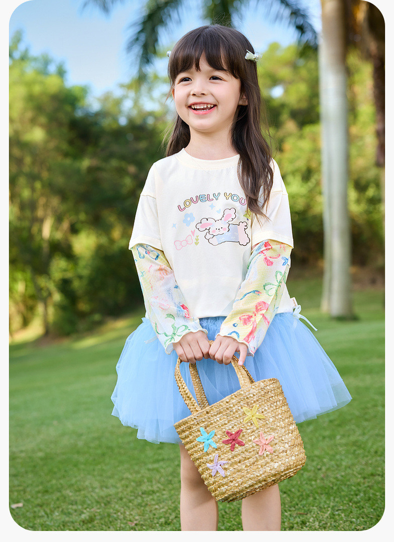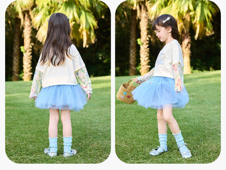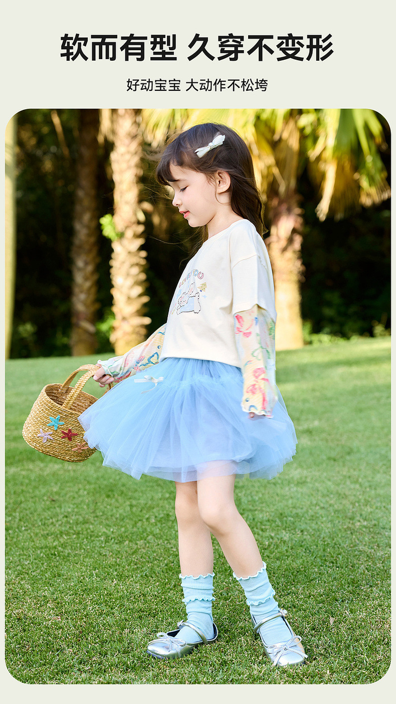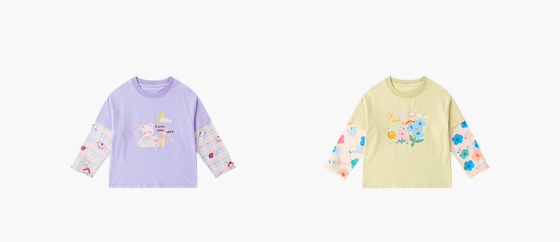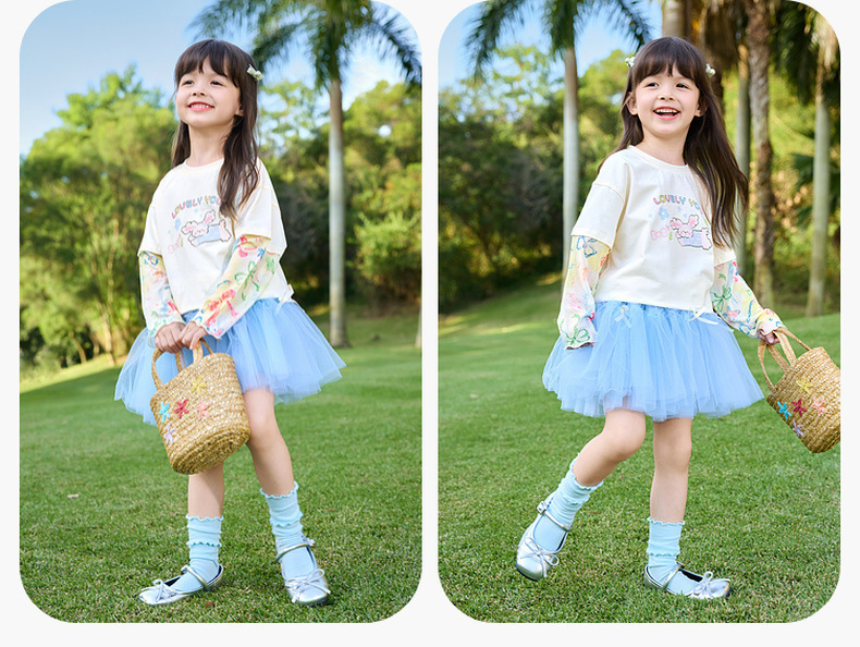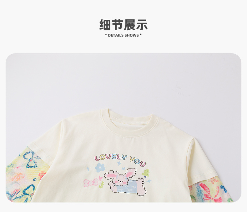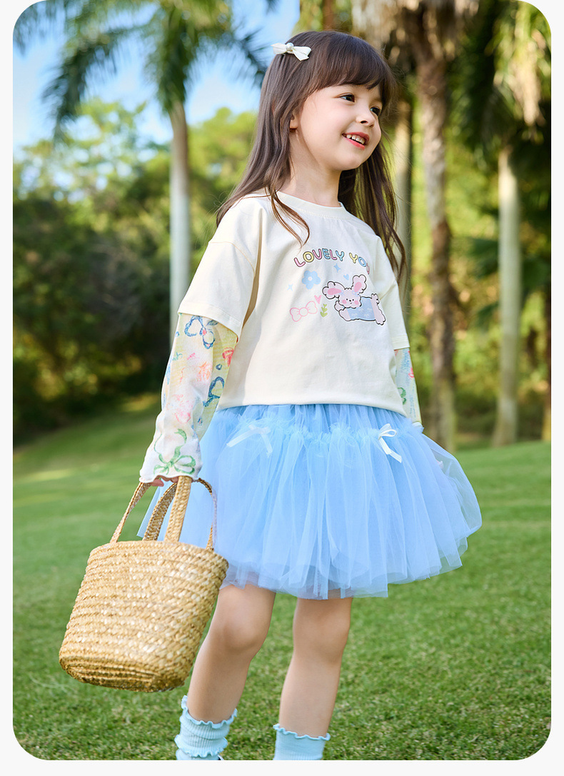 嘟嘟家女童T恤假两件春装女孩打底衫春秋女宝长袖上衣儿童童装潮C6ATX062