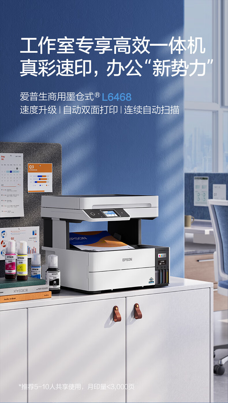 爱普生(EPSON)L6468 A4彩色商用打印机 墨仓式数码多功能一体机 复印/打印/扫描(上门安装)