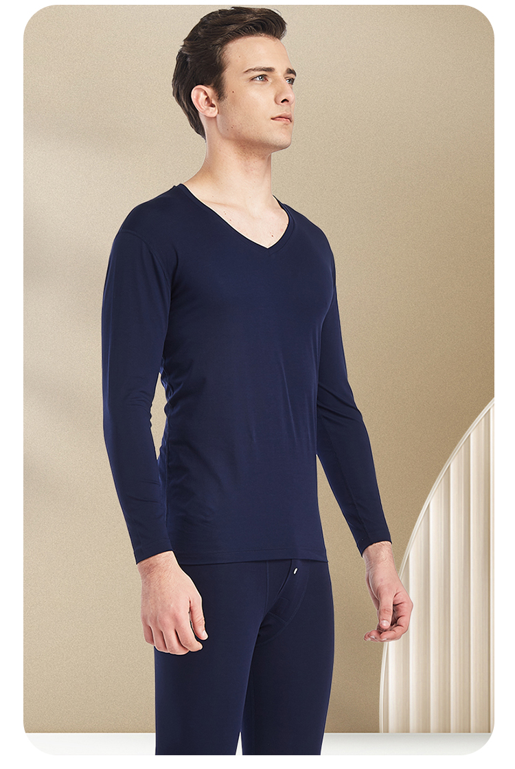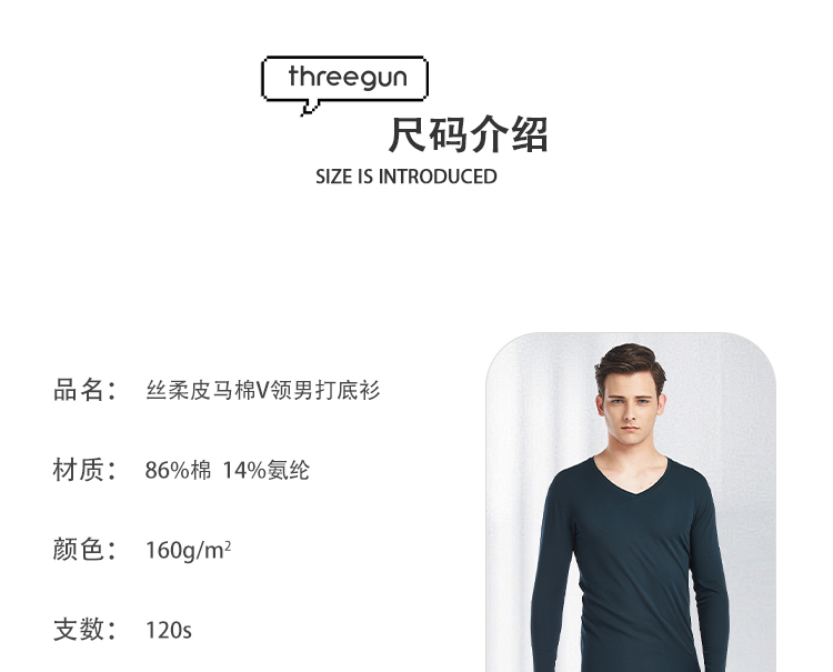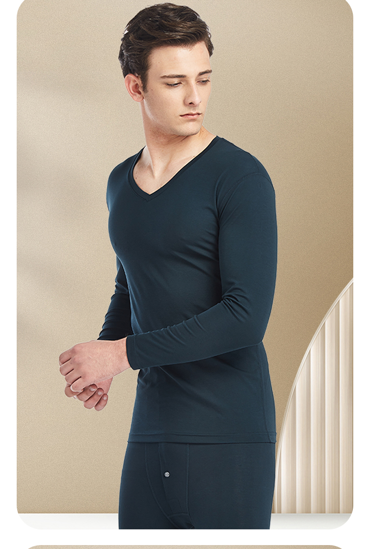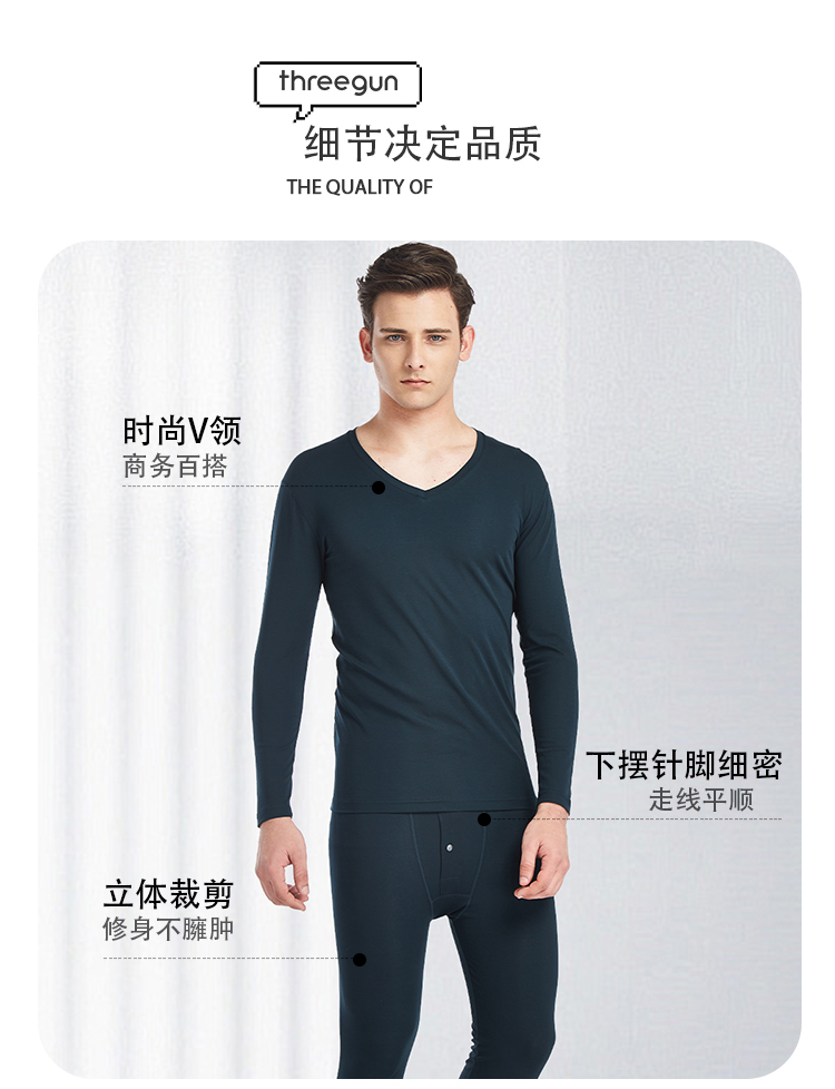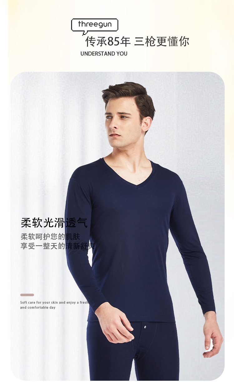 Threegun三枪 【丝柔皮马棉】V领男打底衫-22975A921