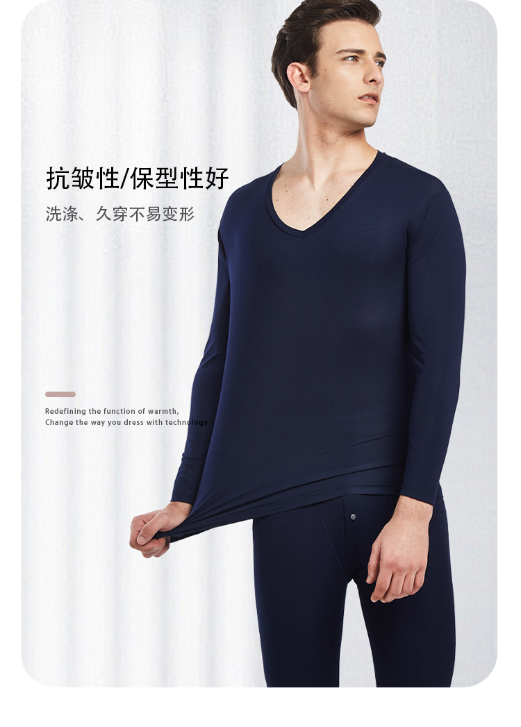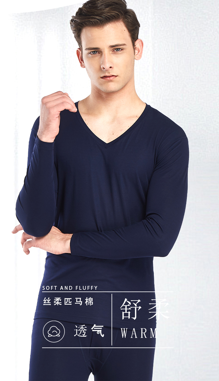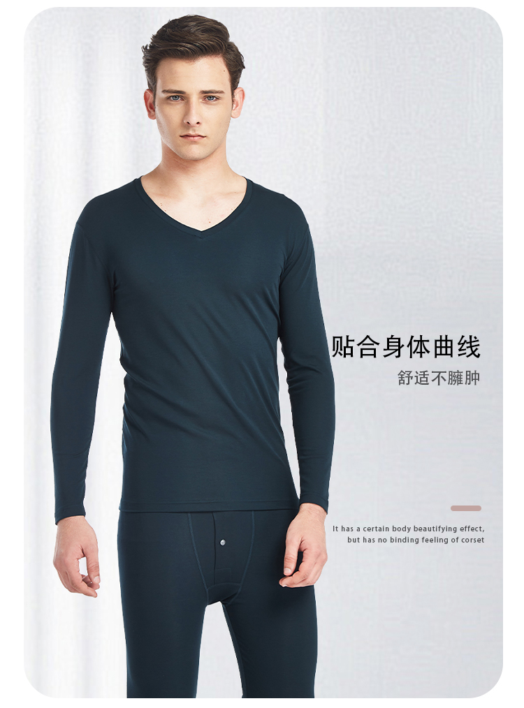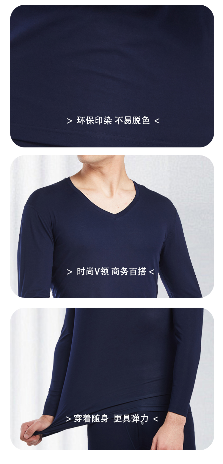 Threegun三枪 【丝柔皮马棉】V领男打底衫-22975A921