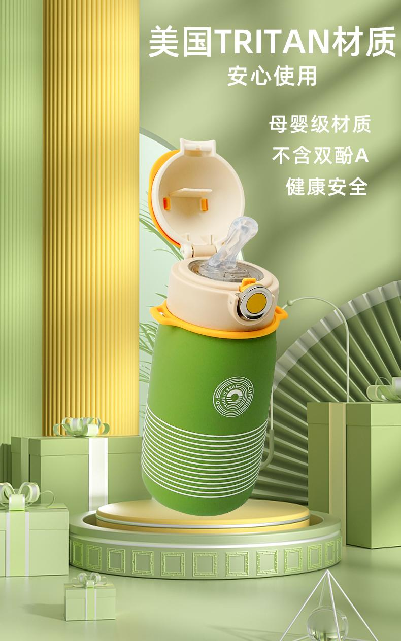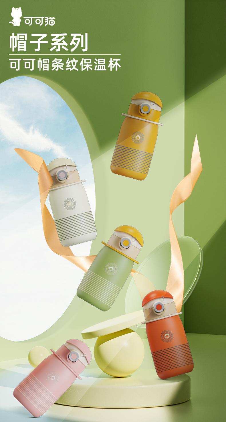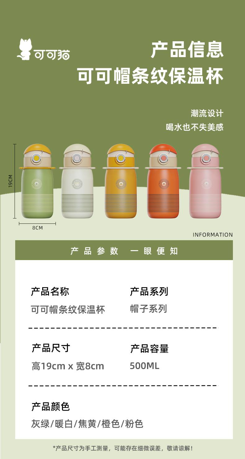 可可帽条纹直饮保温杯绿色 500ml
