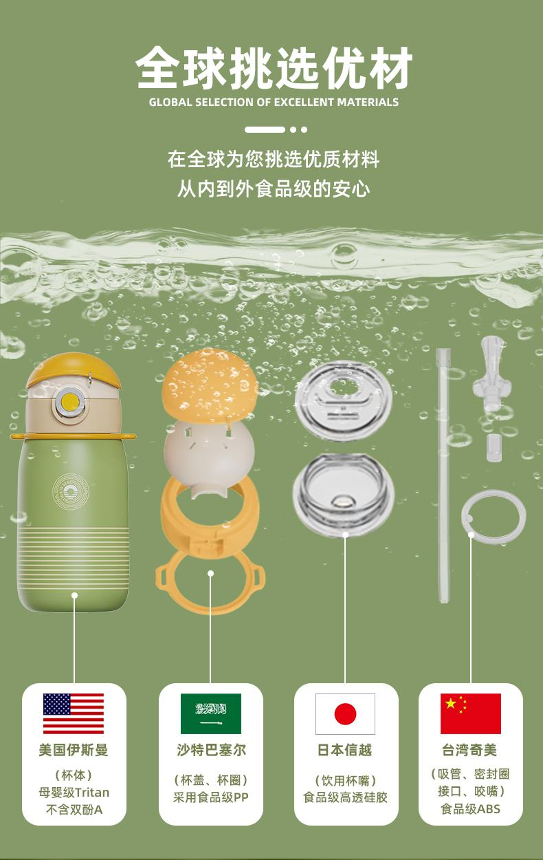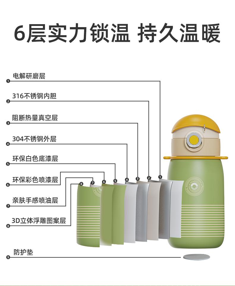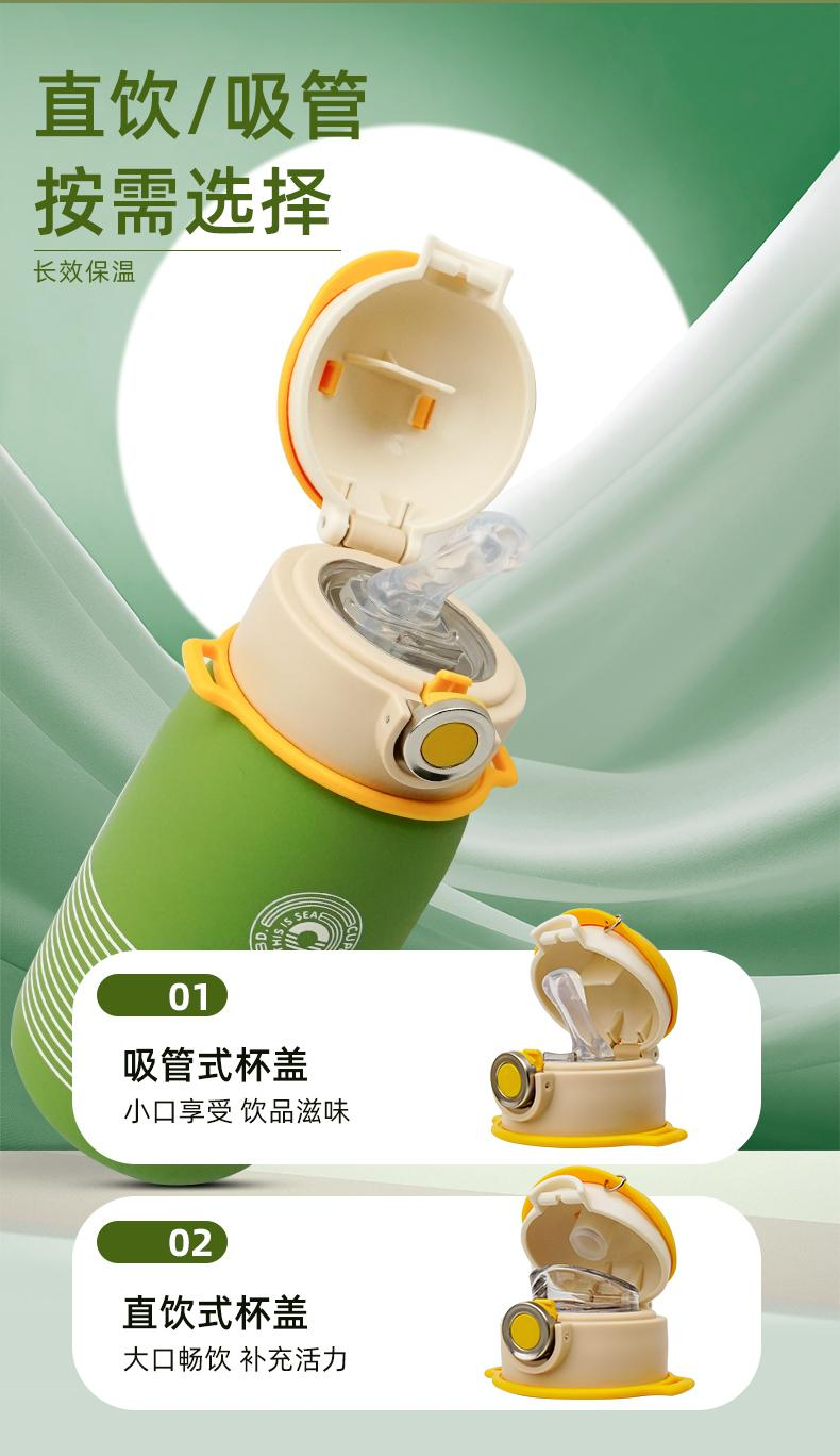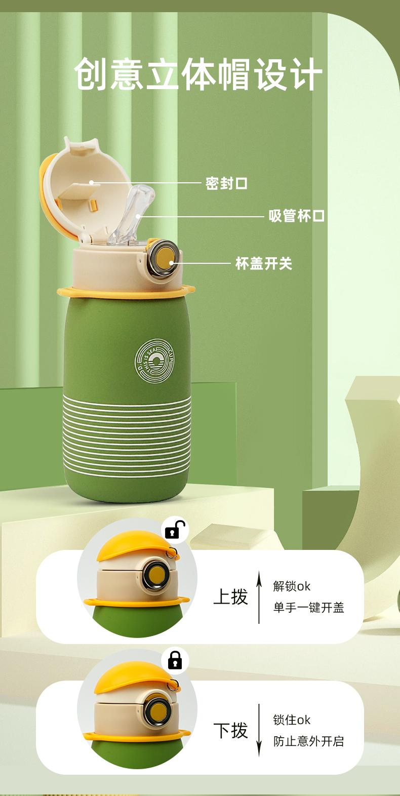 可可帽条纹直饮保温杯绿色 500ml