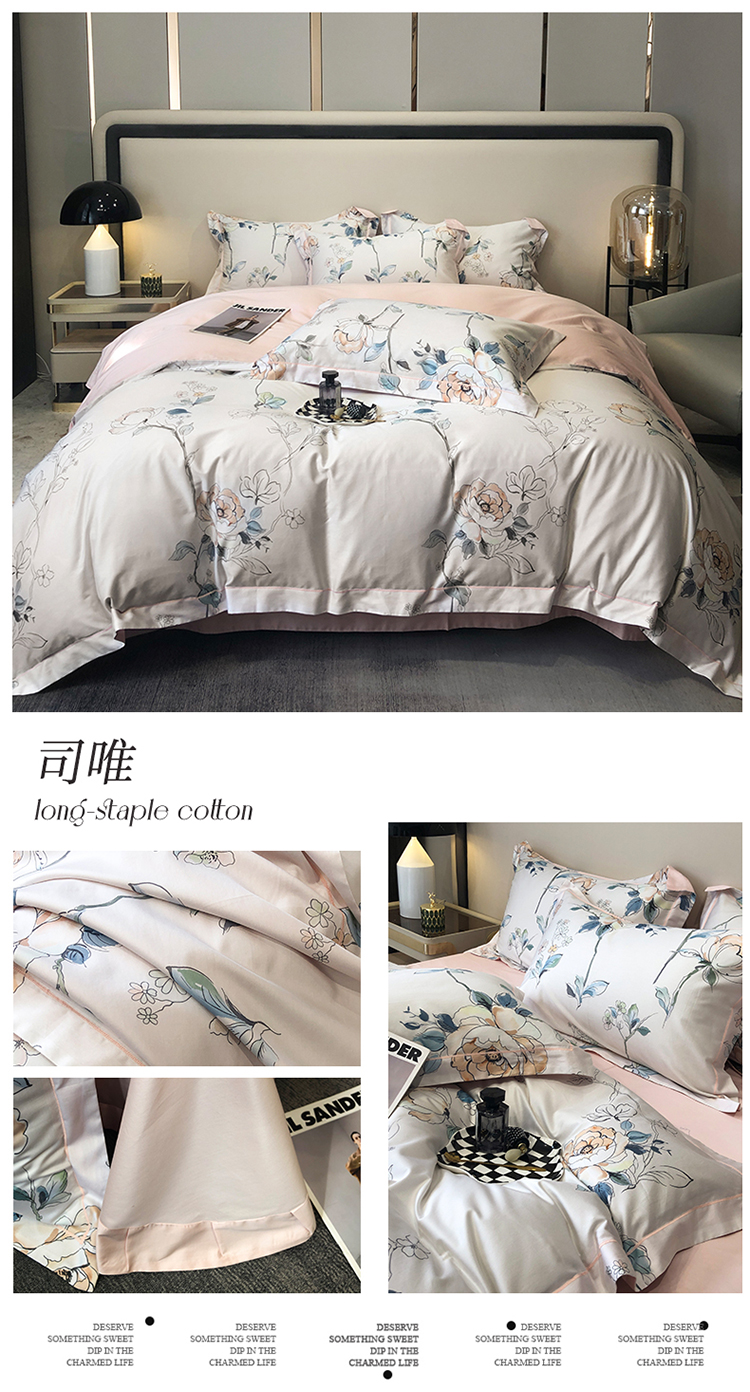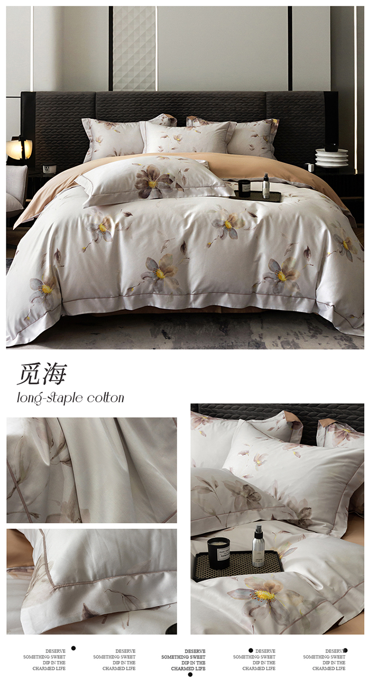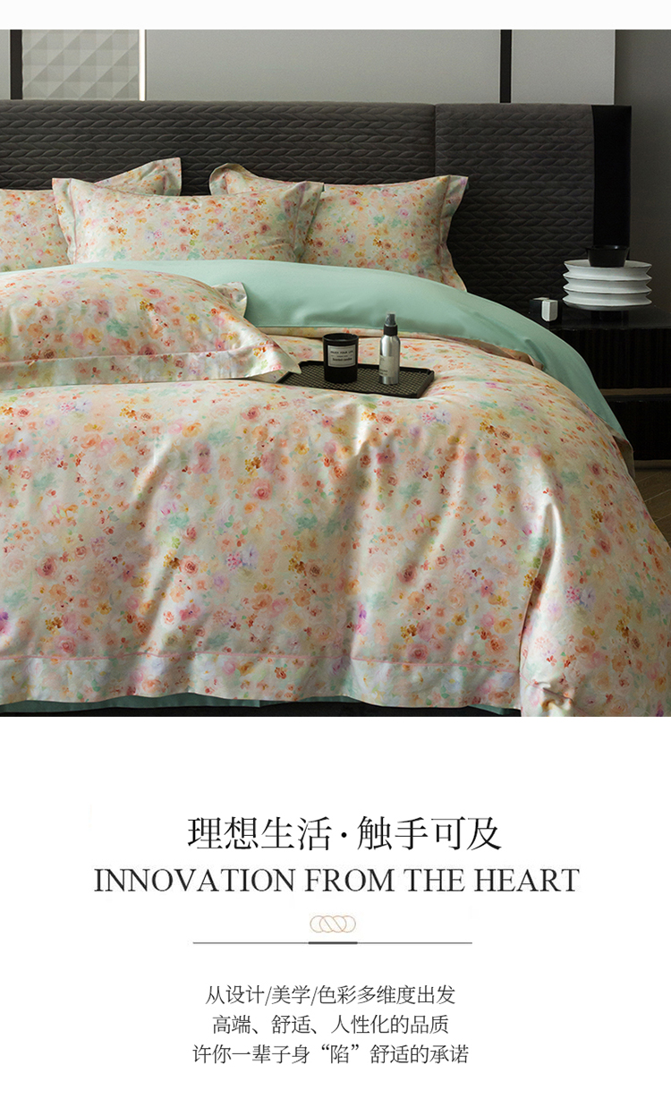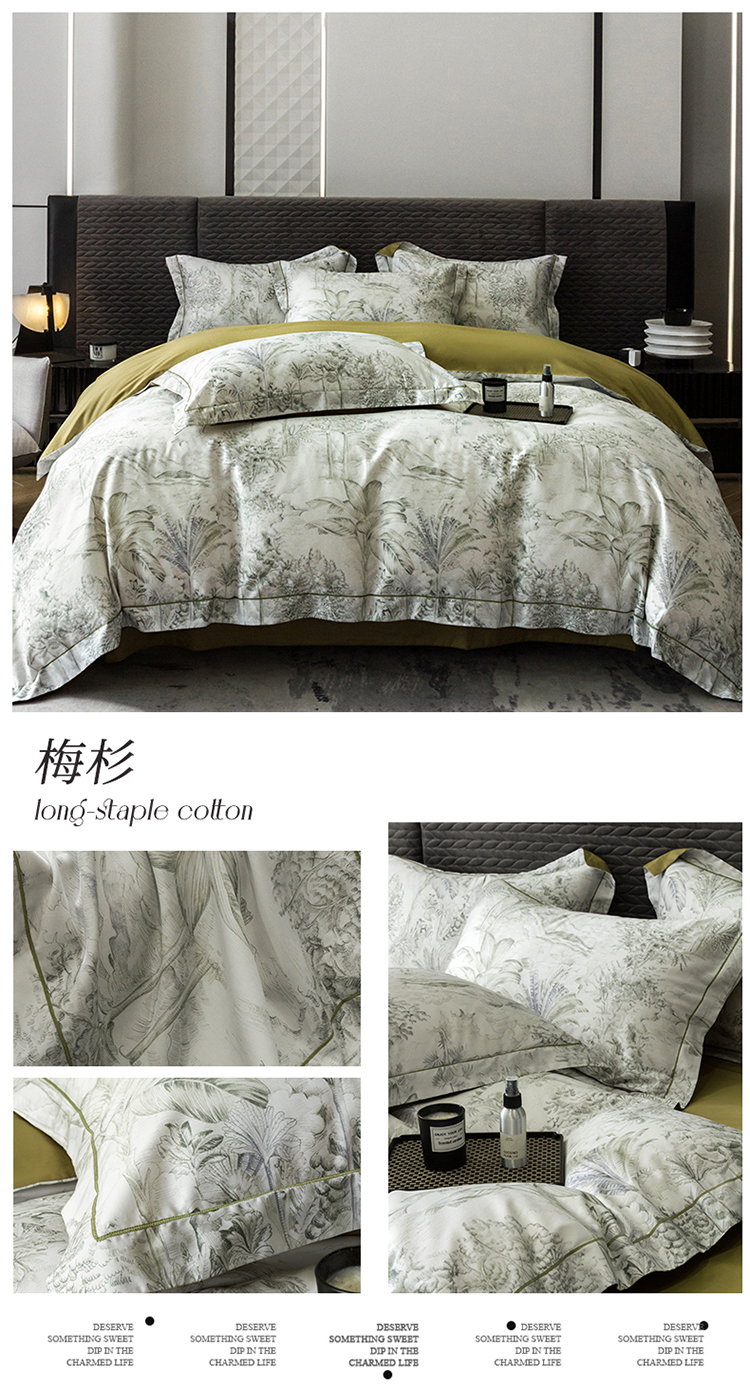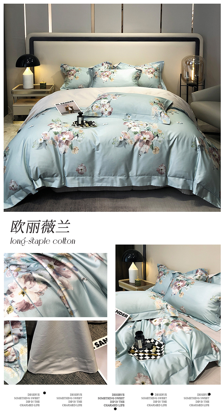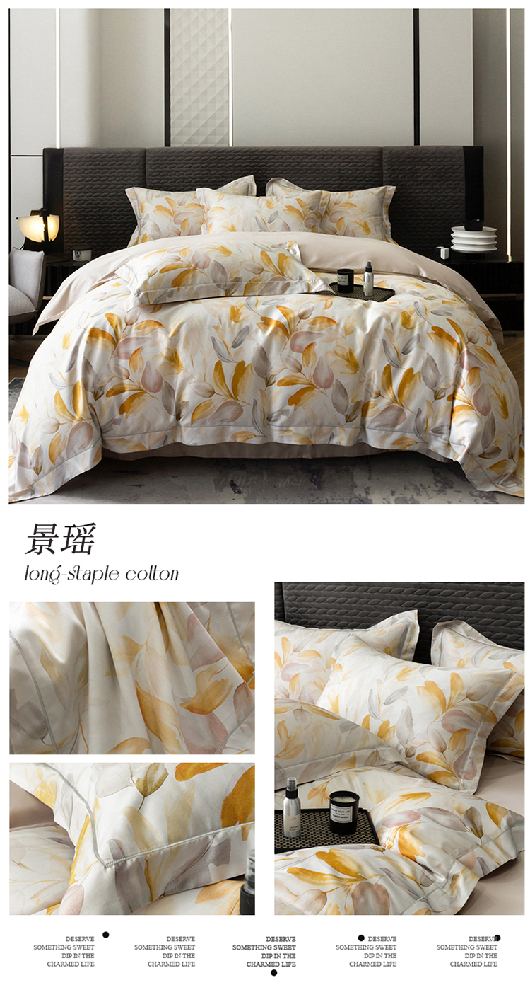 自然醒60支贡缎新疆长绒棉轻奢印花四件套居家床单被套纯棉套件床品KY