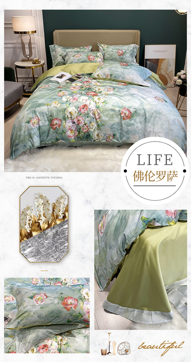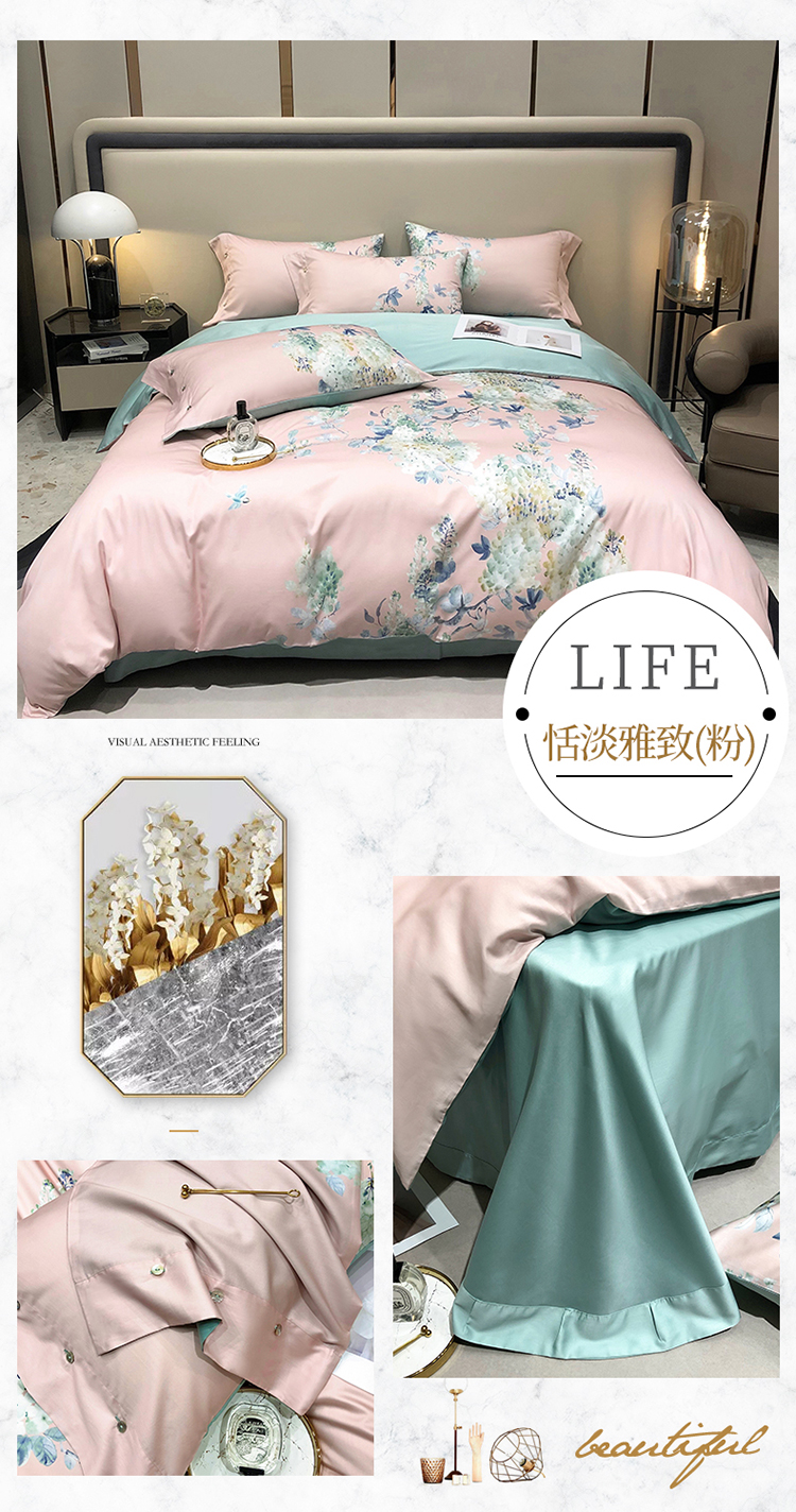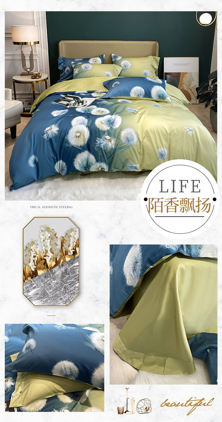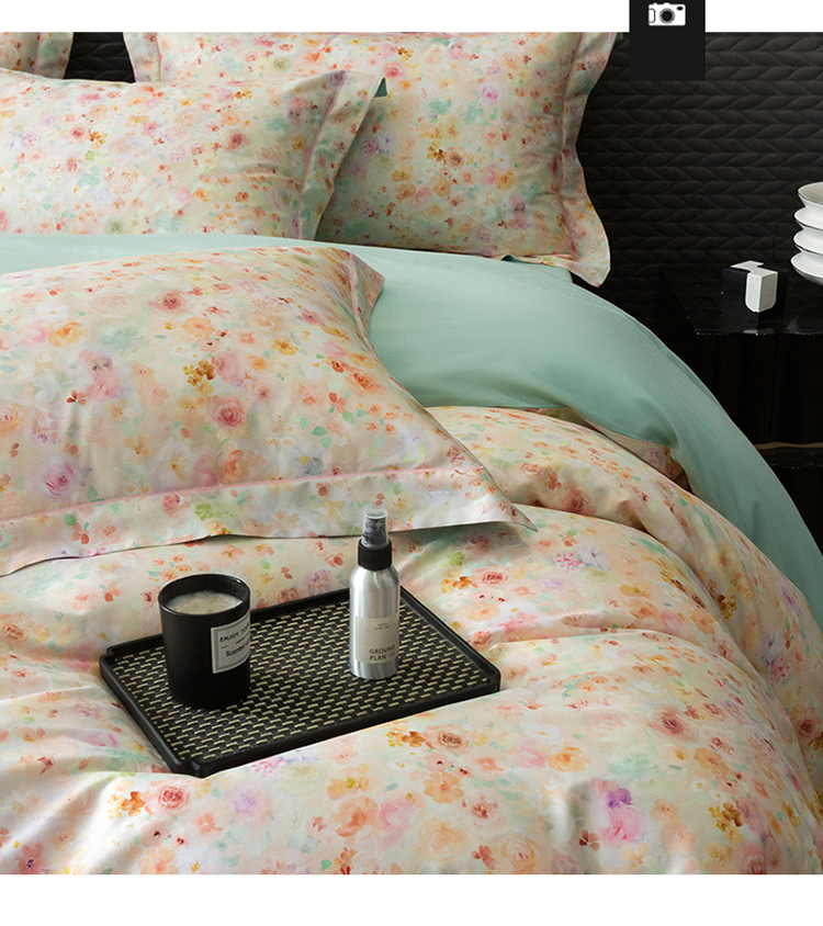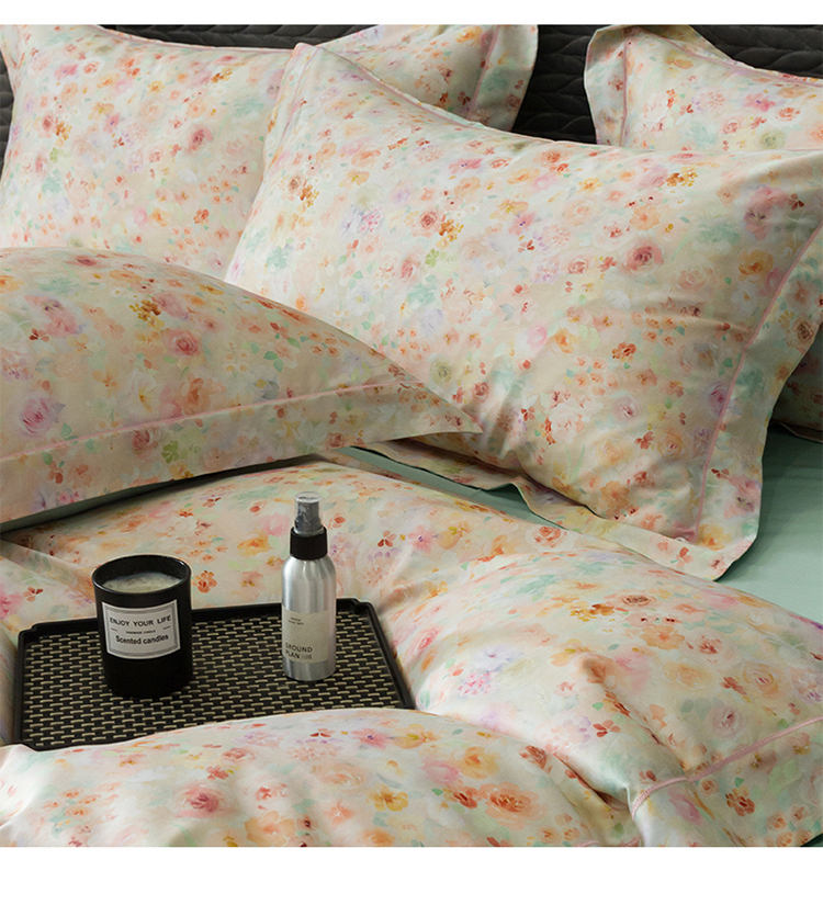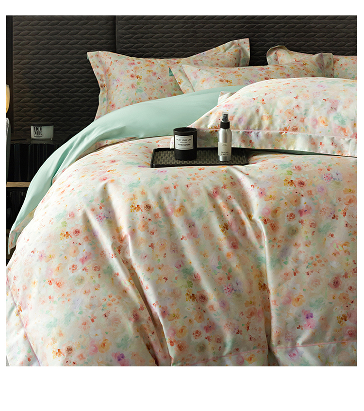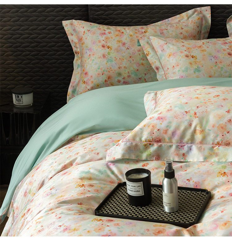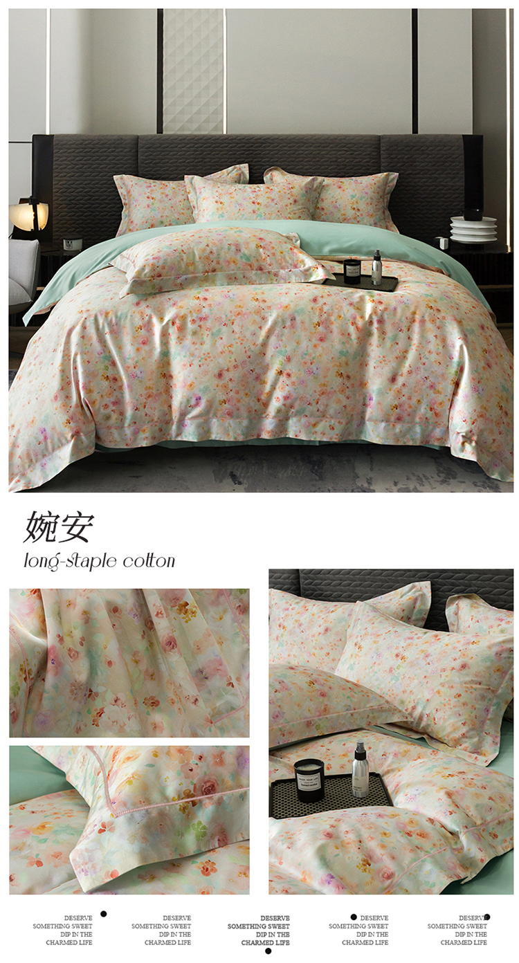 自然醒60支贡缎新疆长绒棉轻奢印花四件套居家床单被套纯棉套件床品KY