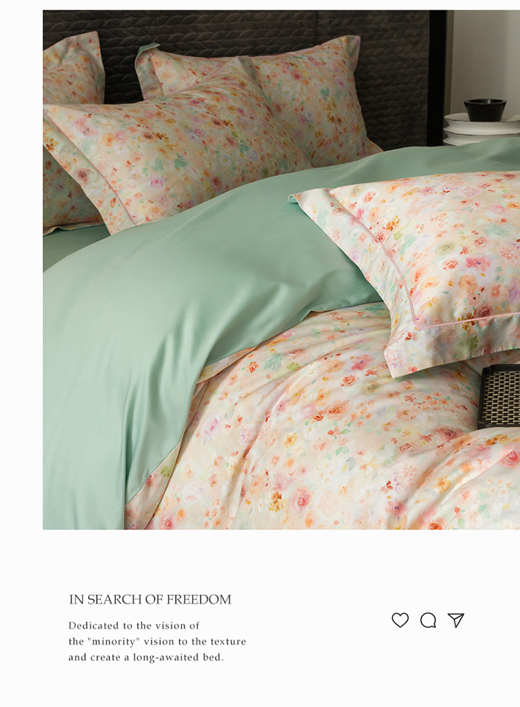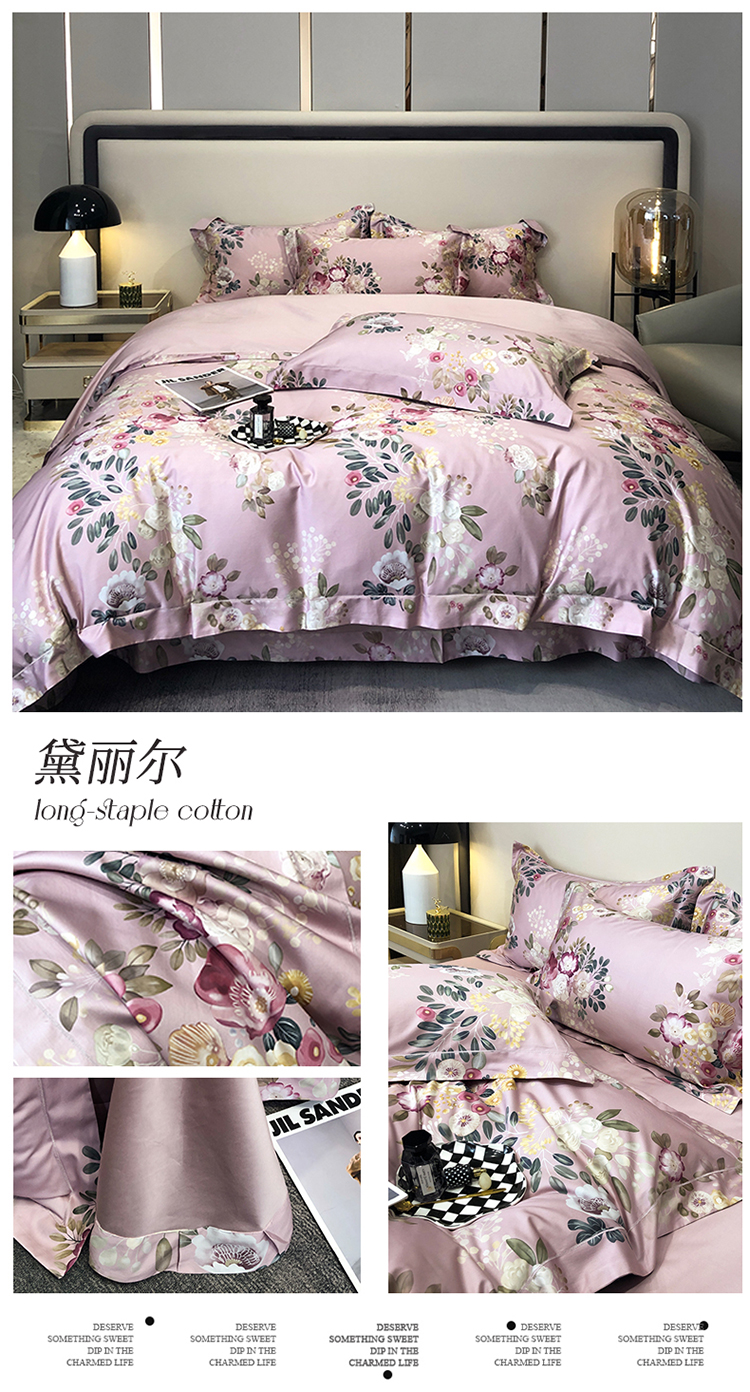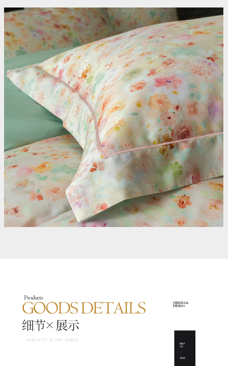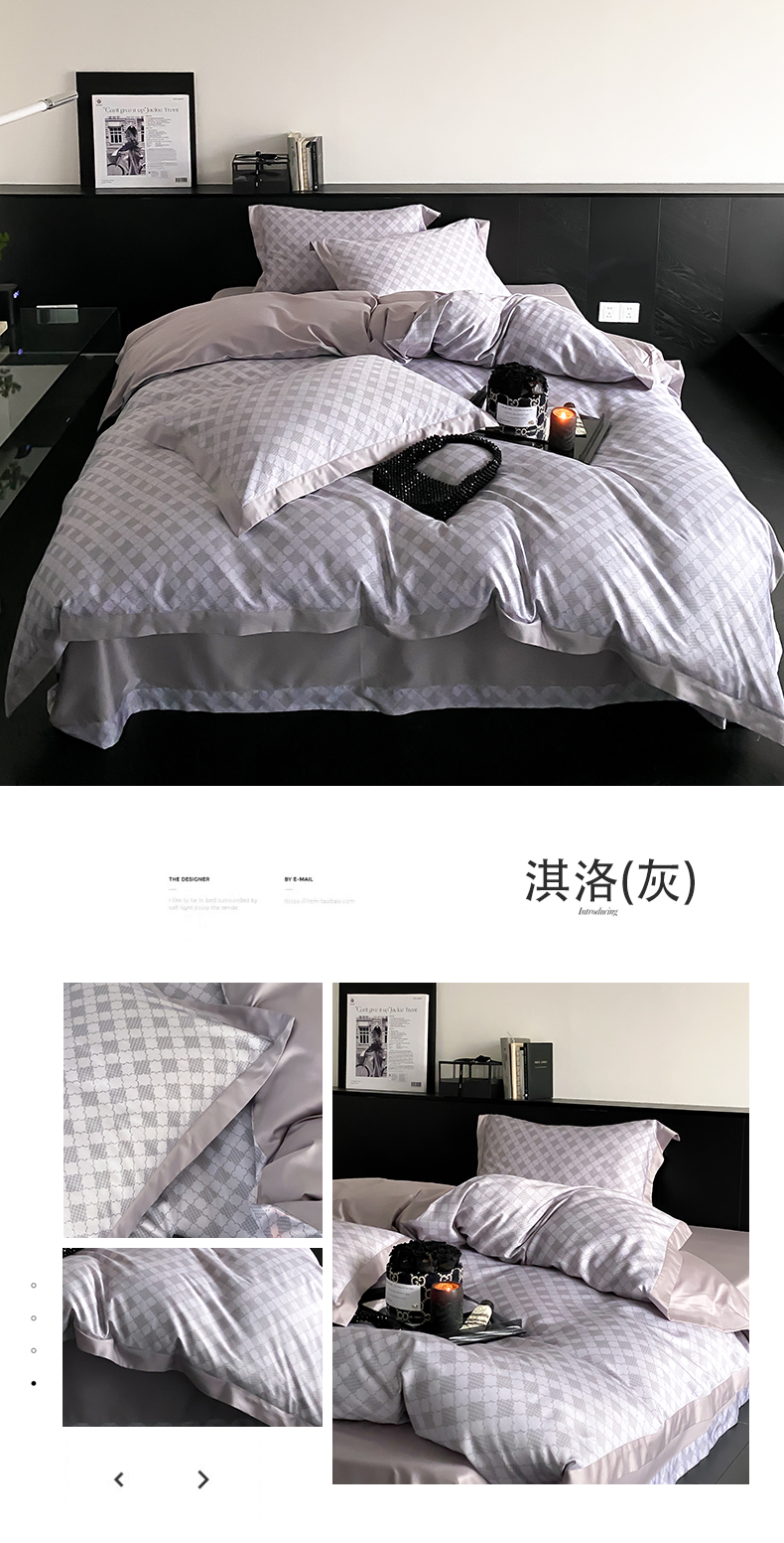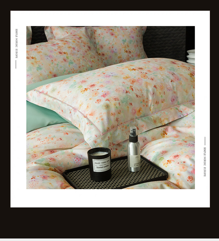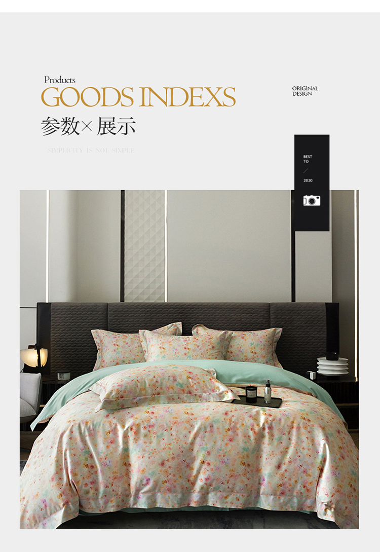 自然醒60支贡缎新疆长绒棉轻奢印花四件套居家床单被套纯棉套件床品KY