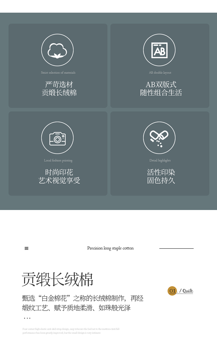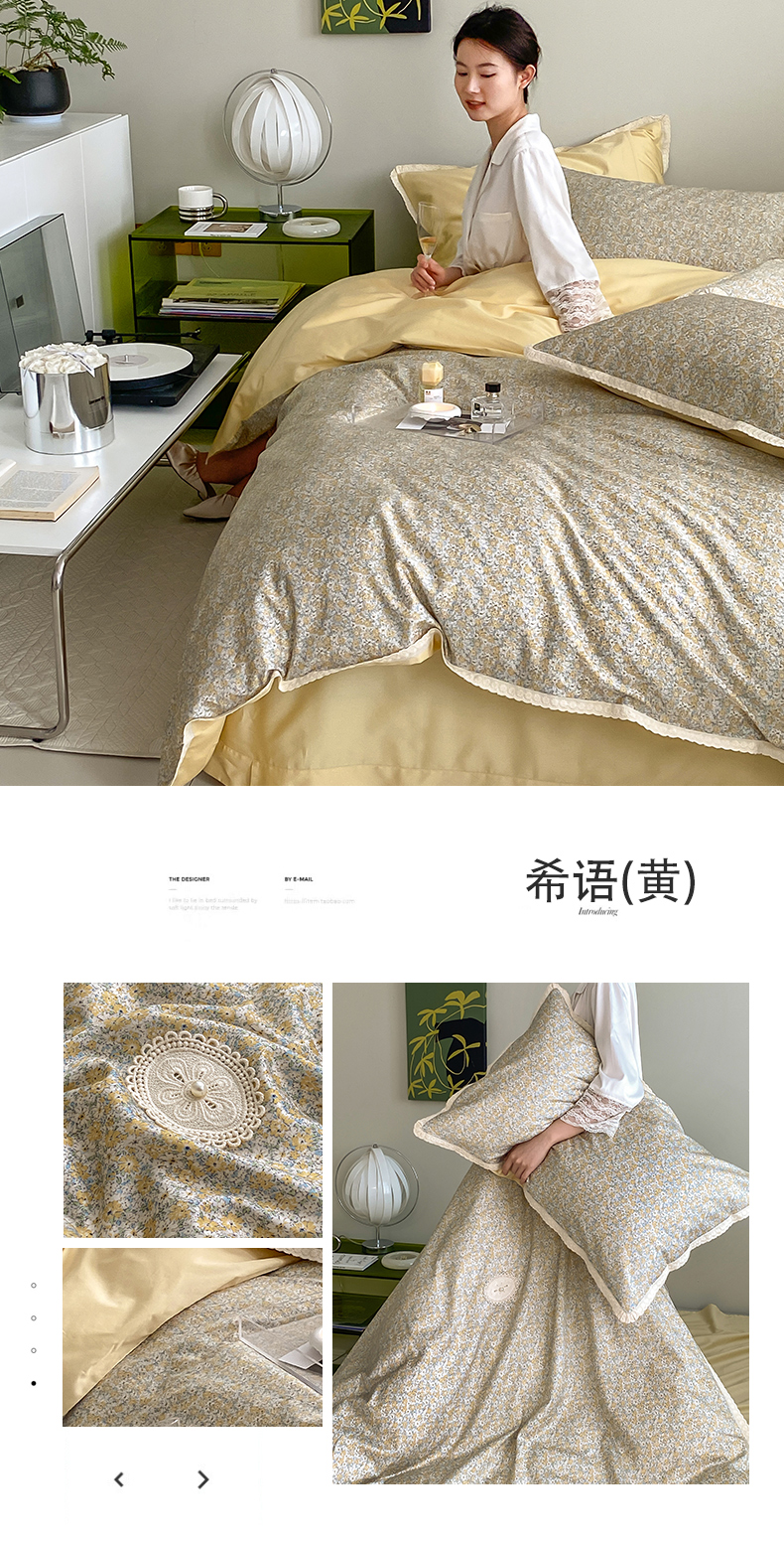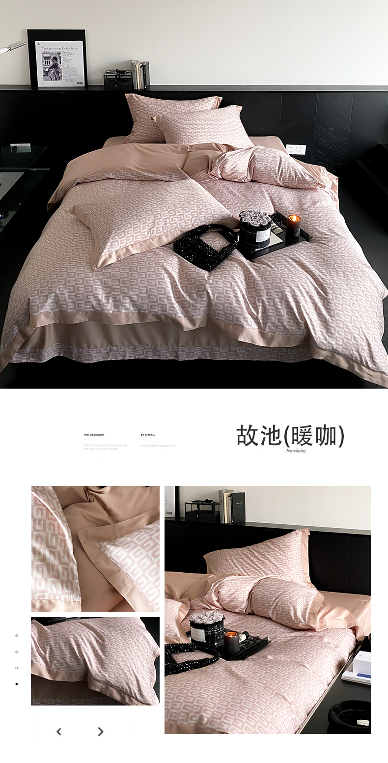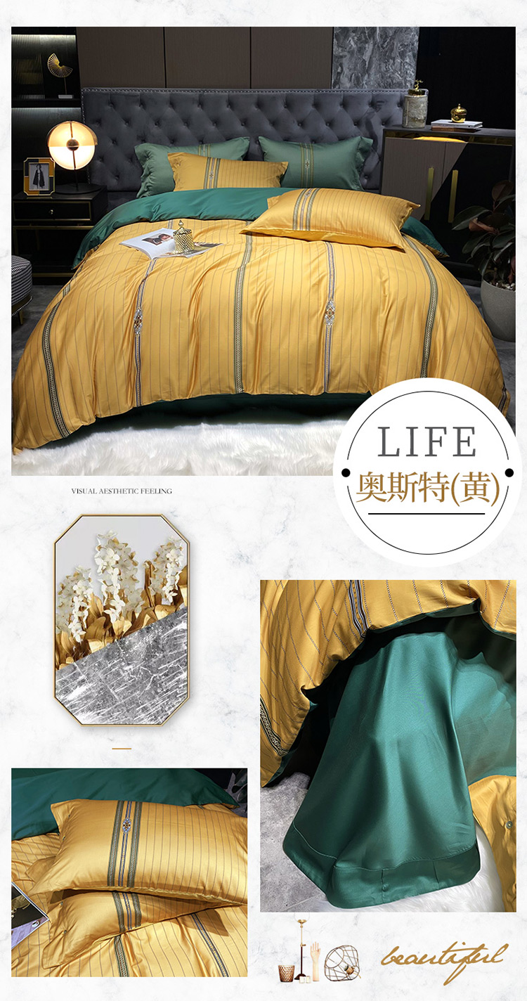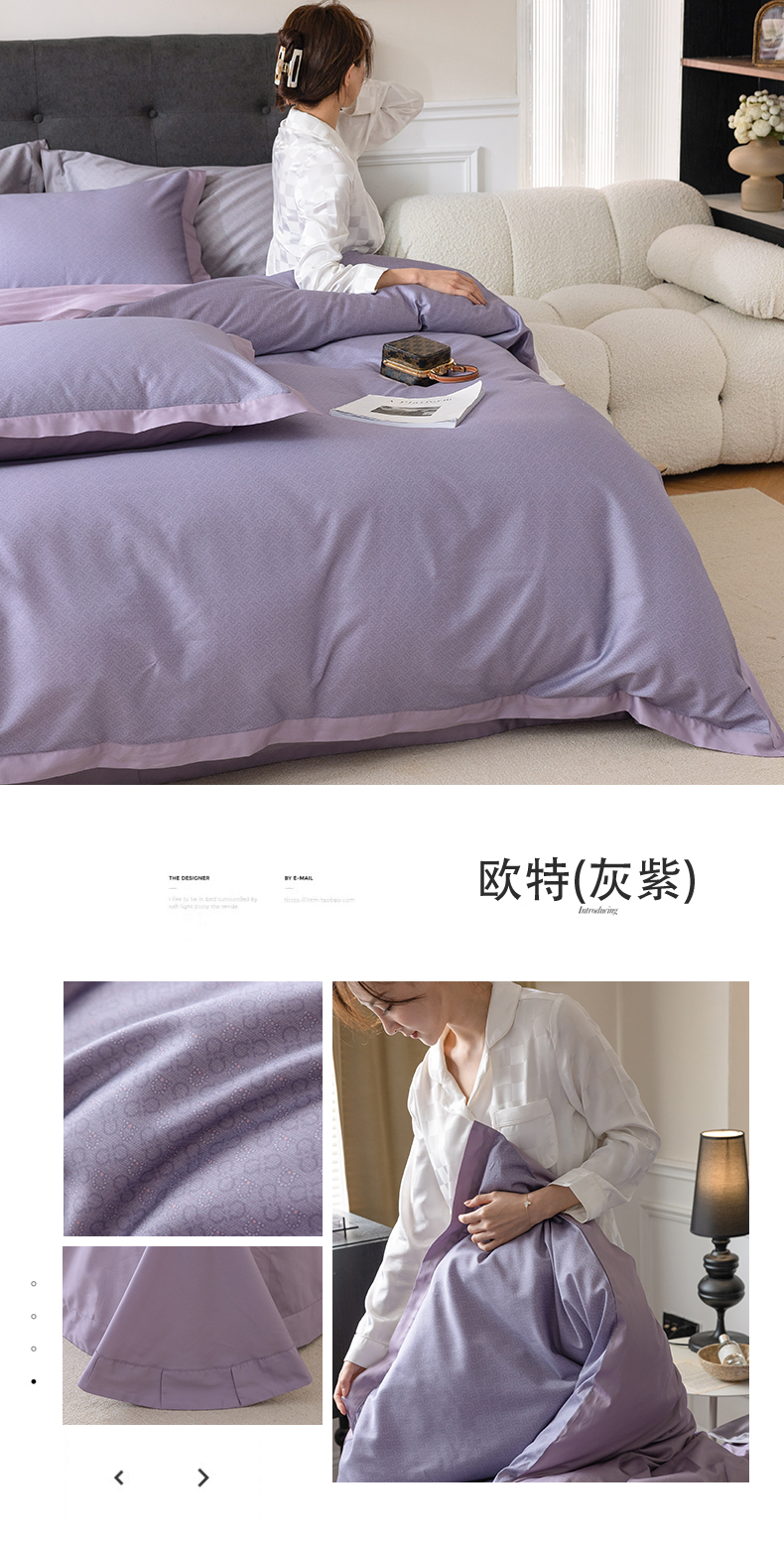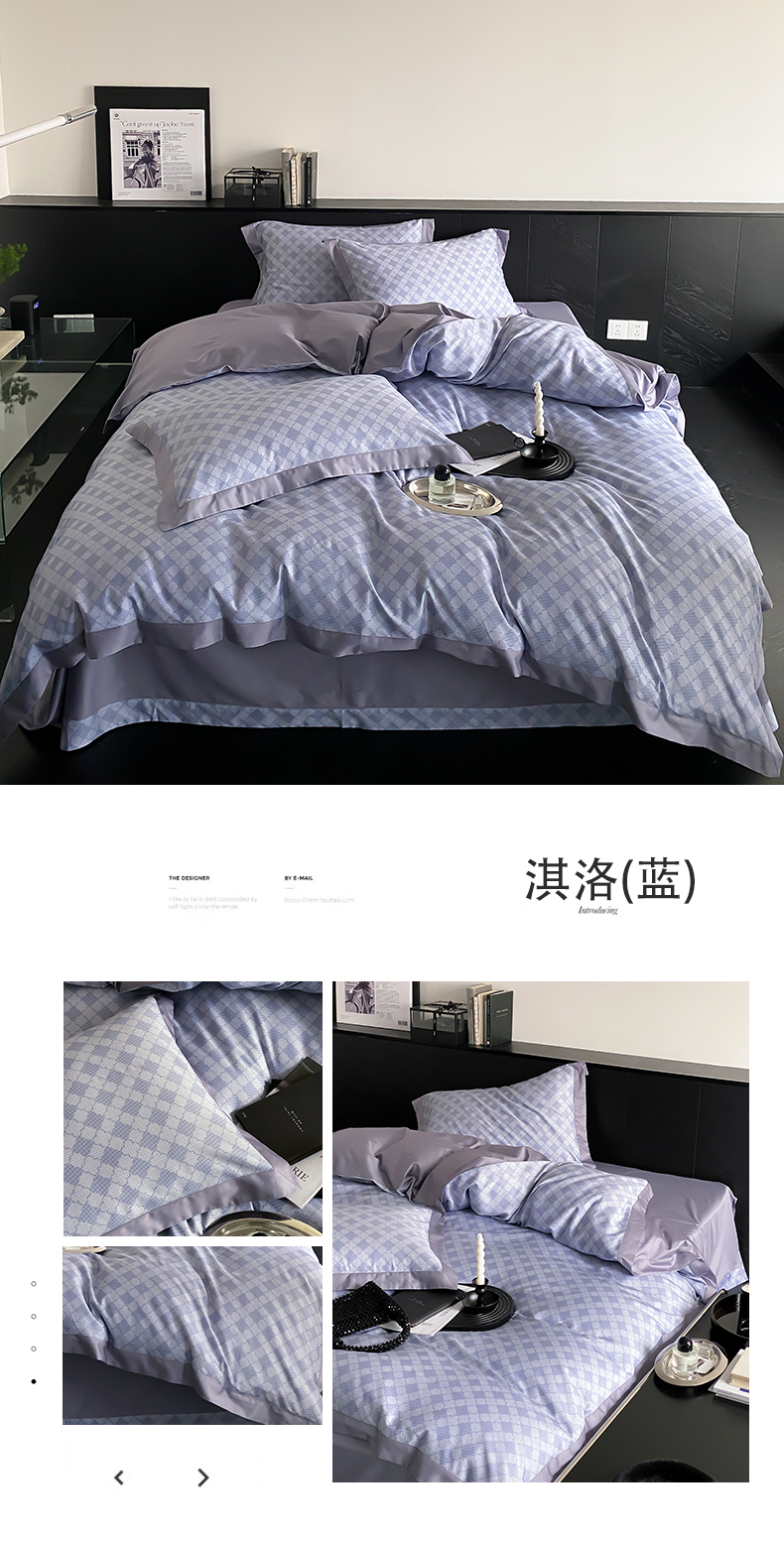 自然醒60支贡缎新疆长绒棉轻奢印花四件套居家床单被套纯棉套件床品KY