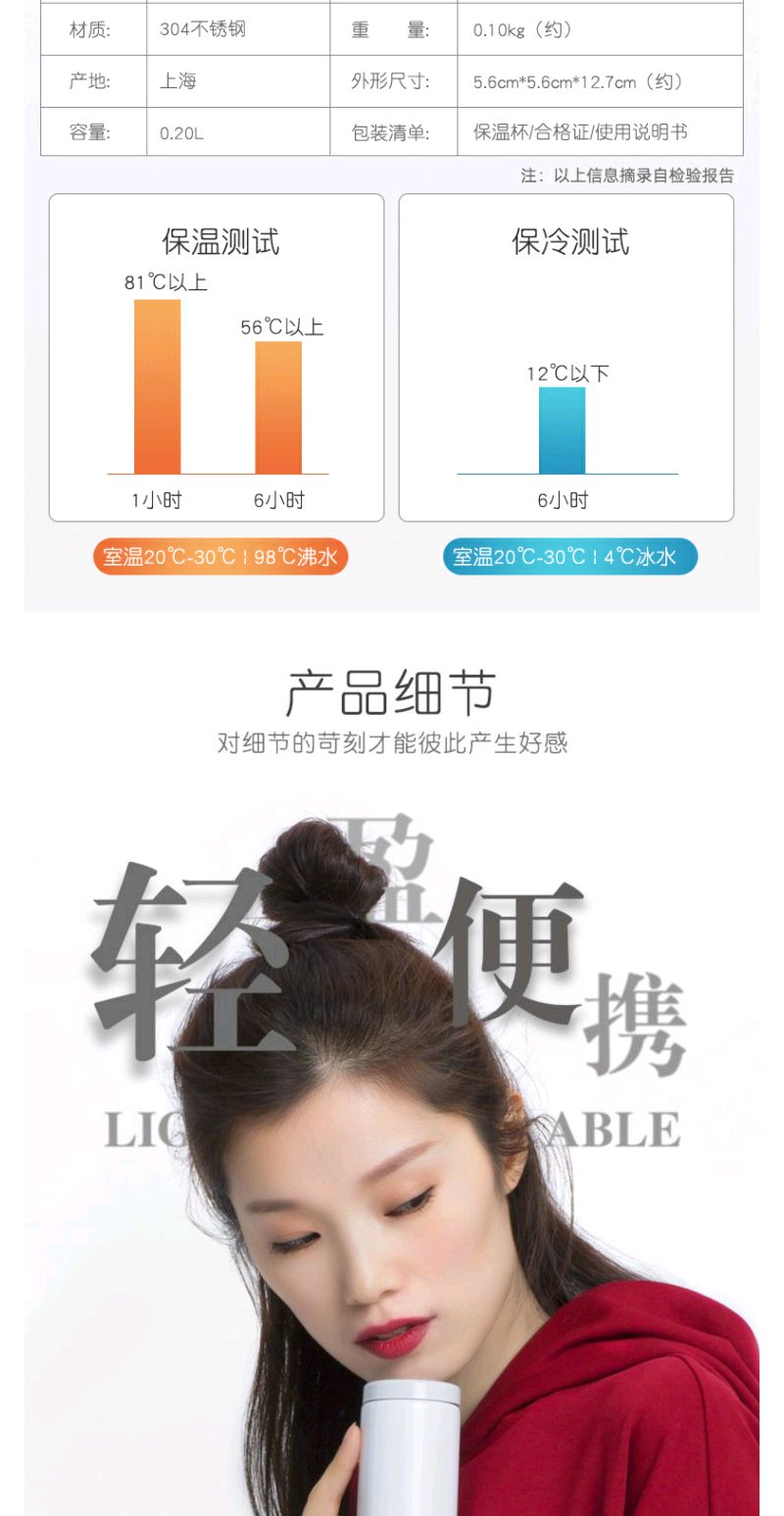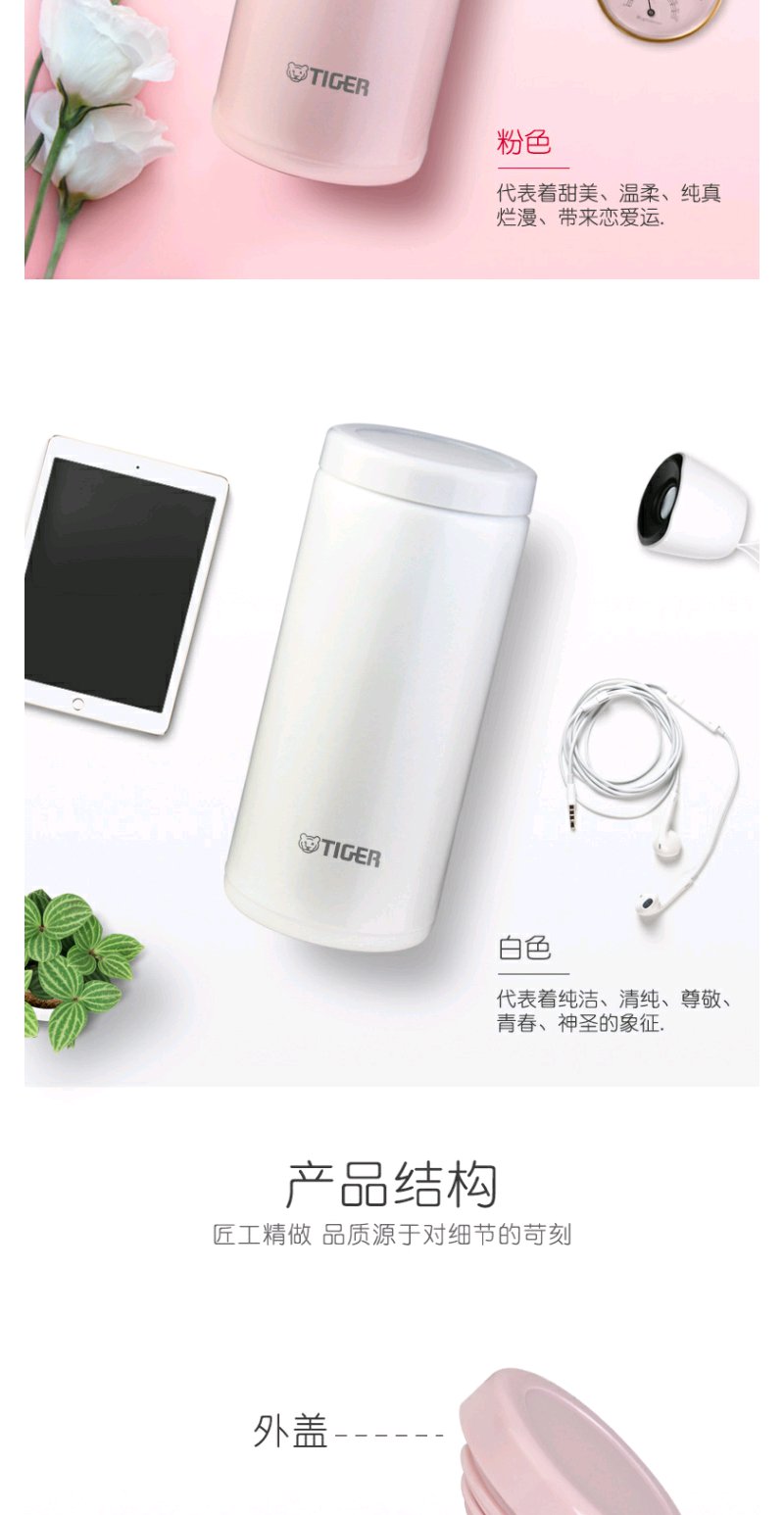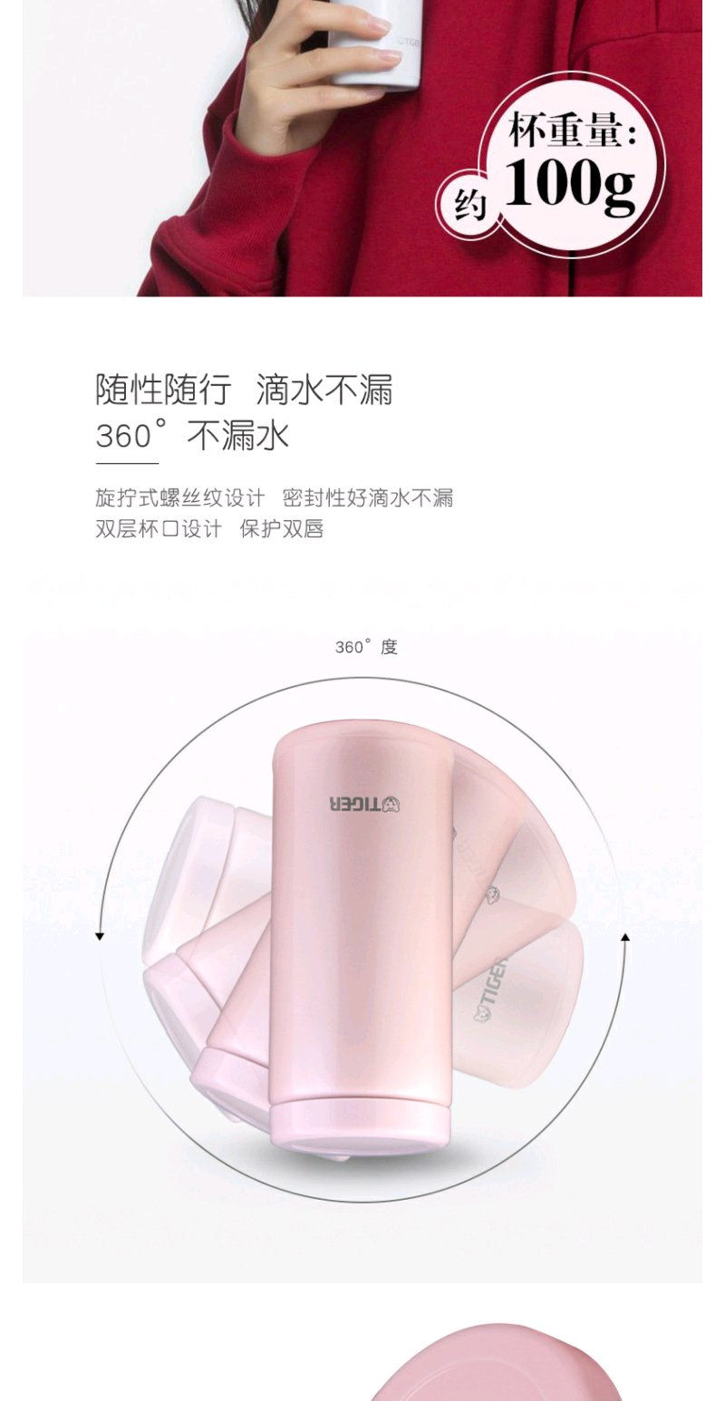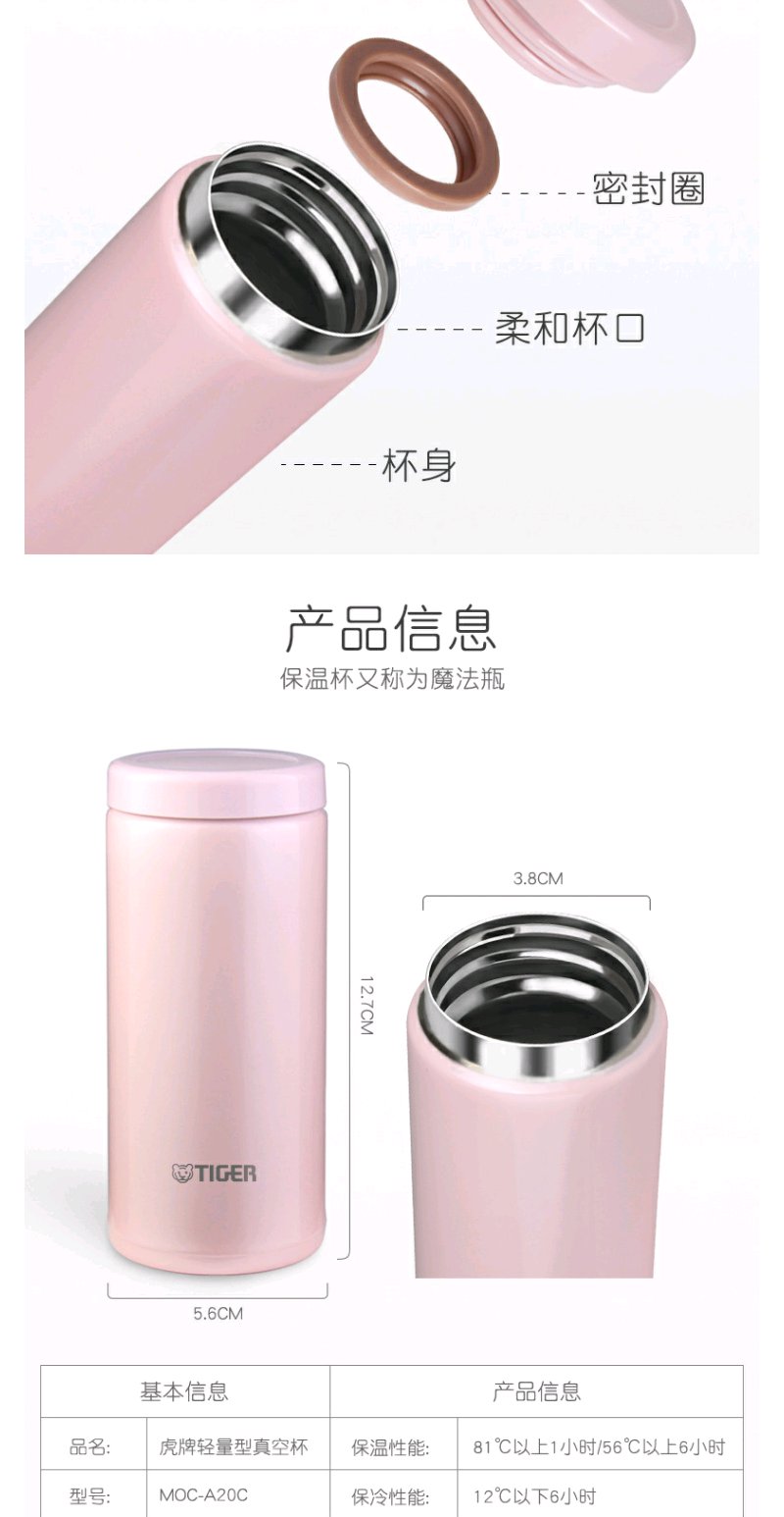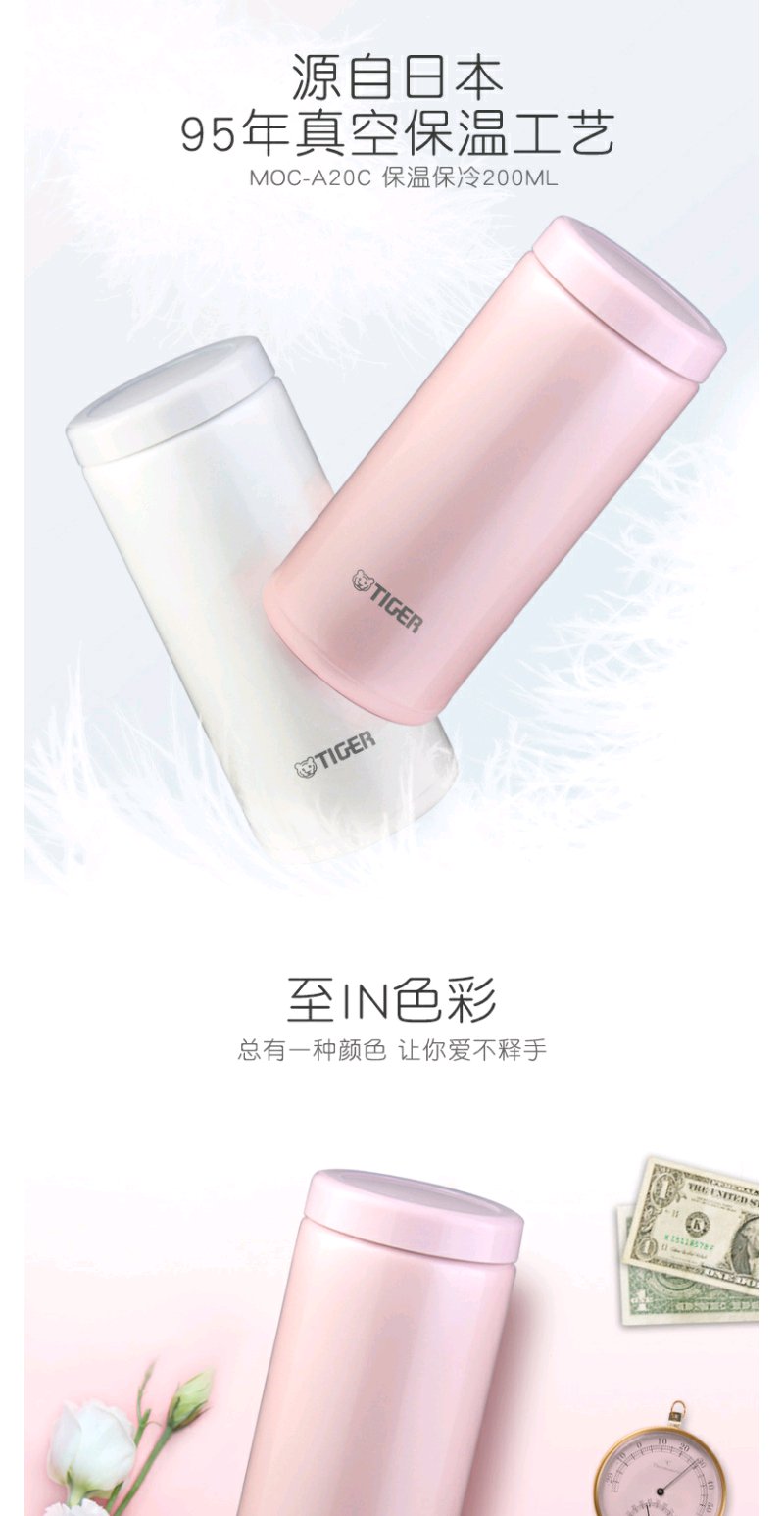 日本虎牌Tiger保温杯轻巧小容量真空日式小清新水杯200ML