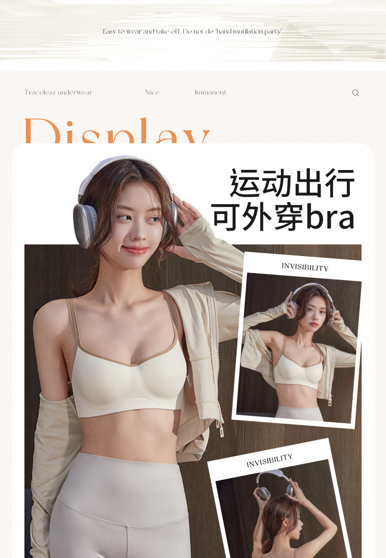 运动内衣夏季薄款时尚撞色无痕隐形文胸无钢圈不跑杯小胸聚拢夏季2025新款小红书爆款