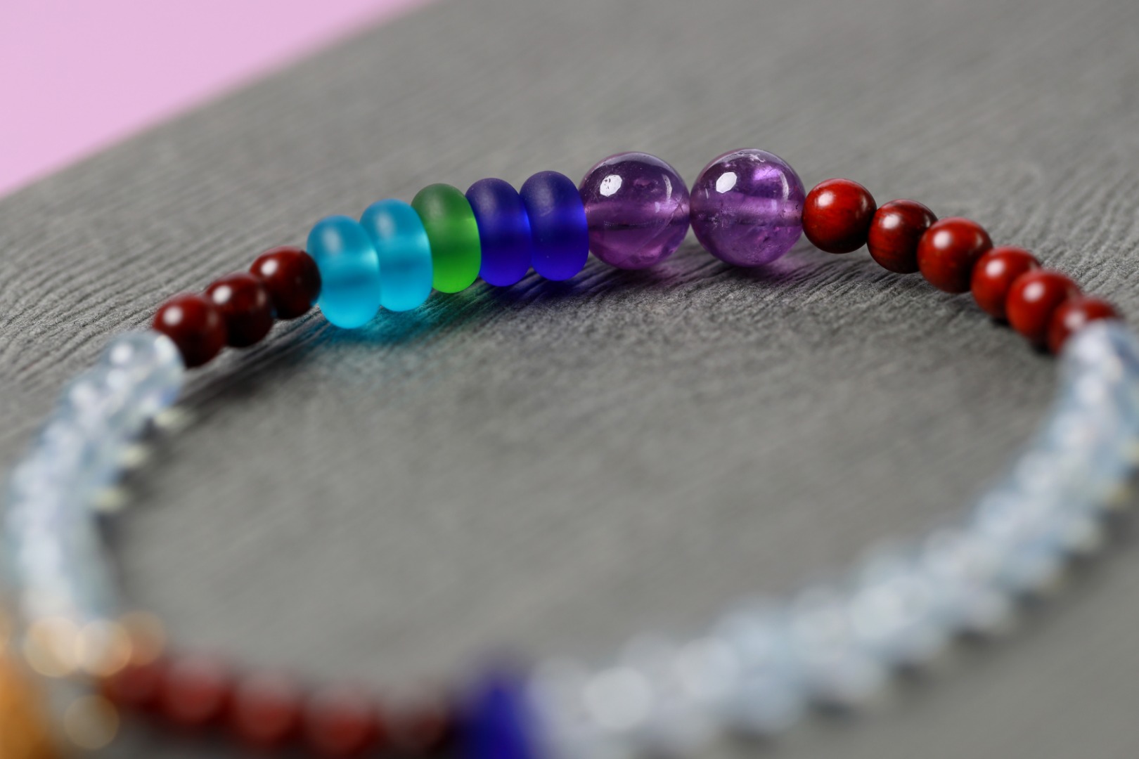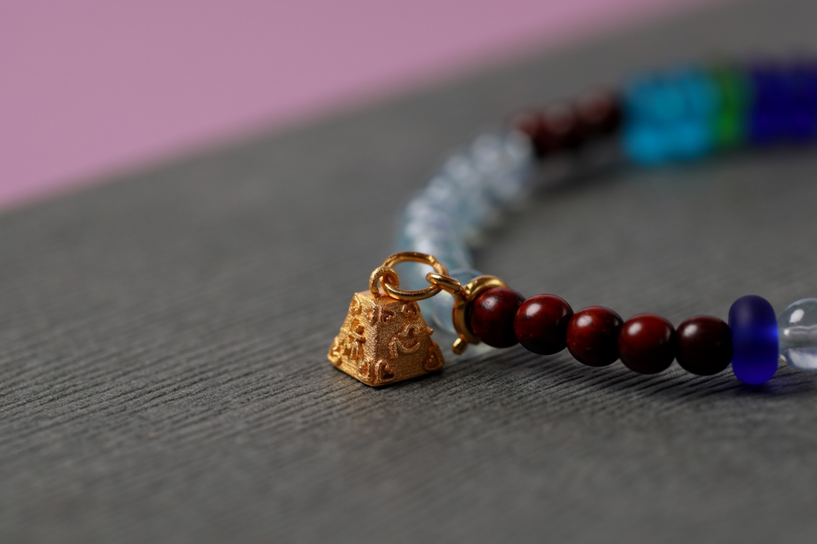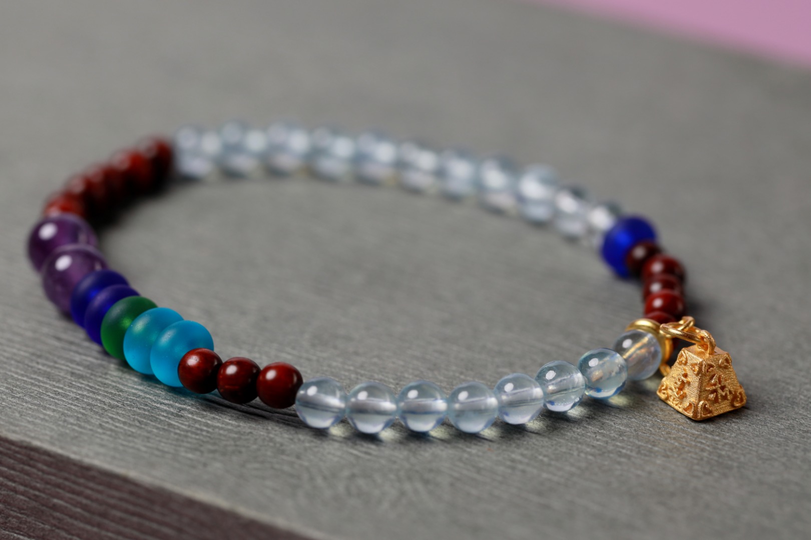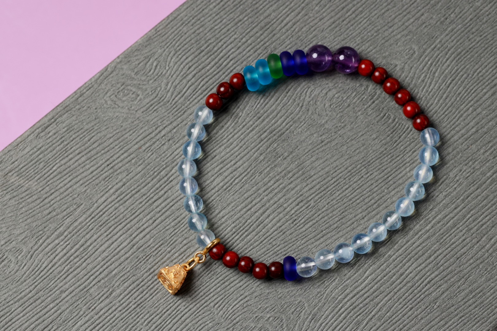 天然小叶紫檀搭配海蓝宝+紫水晶