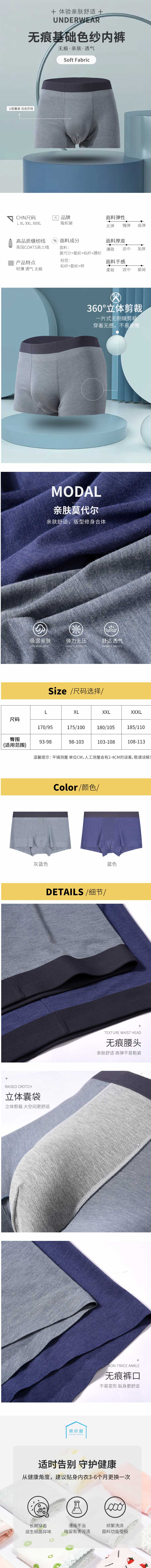 阪织屋内裤男无痕基础色纱莫代尔男士内裤平角裤短裤1331360657604 / 7005
