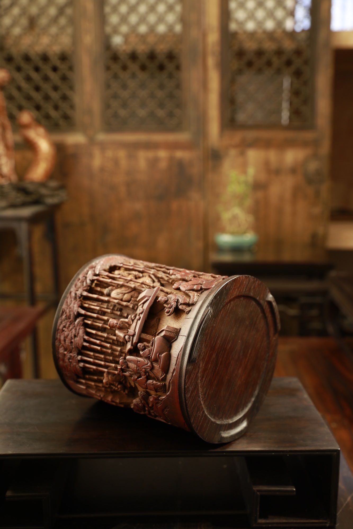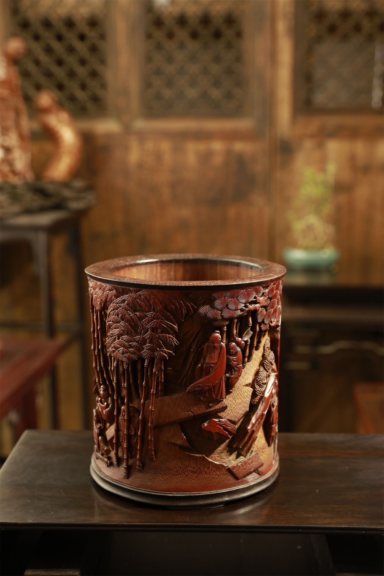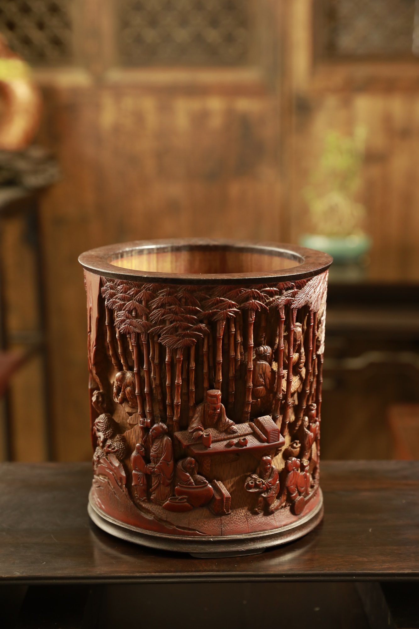 品名:竹林七贤°竹雕笔筒