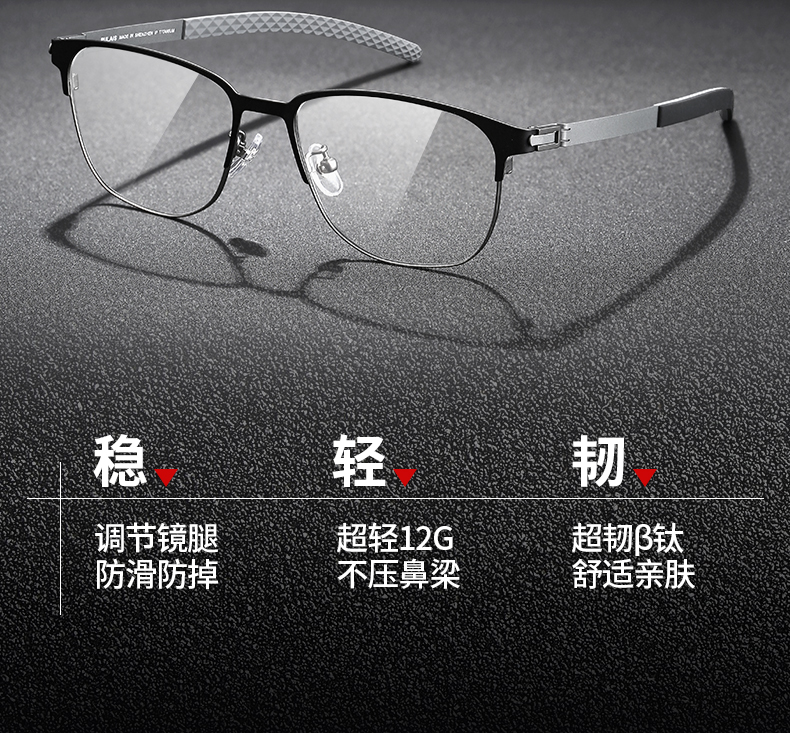 普莱斯光学镜架HE83 高品质纯钛架 痞帅潮款 时尚简约 经典眉框 真空IP电镀 三色可选