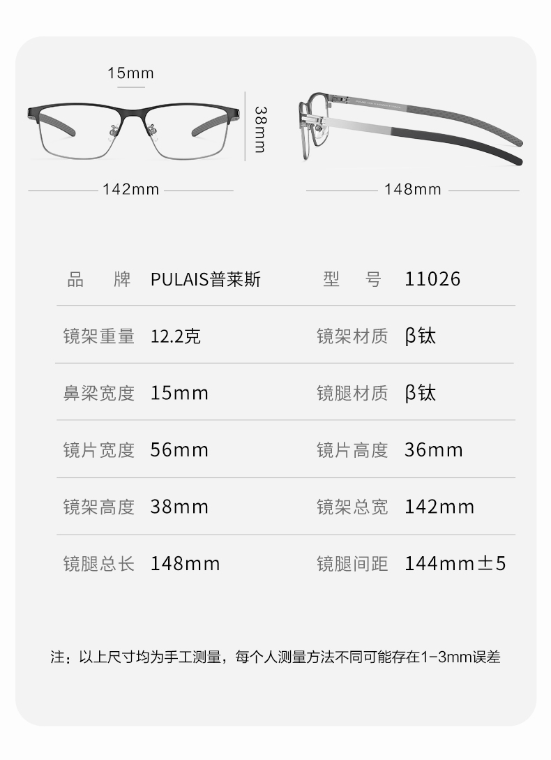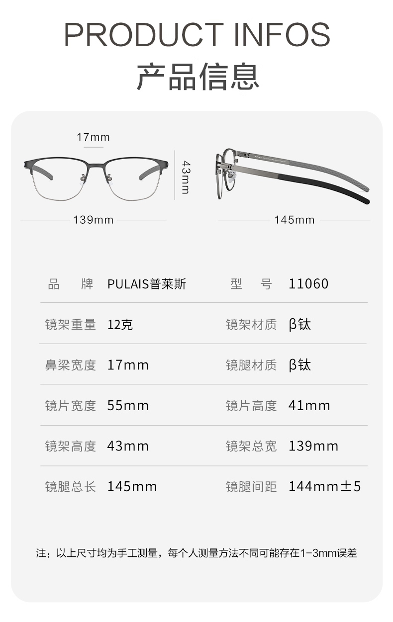普莱斯PT11060 β钛 方框全框 运动休闲 中性男女通用