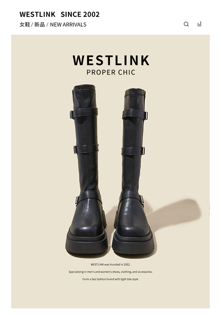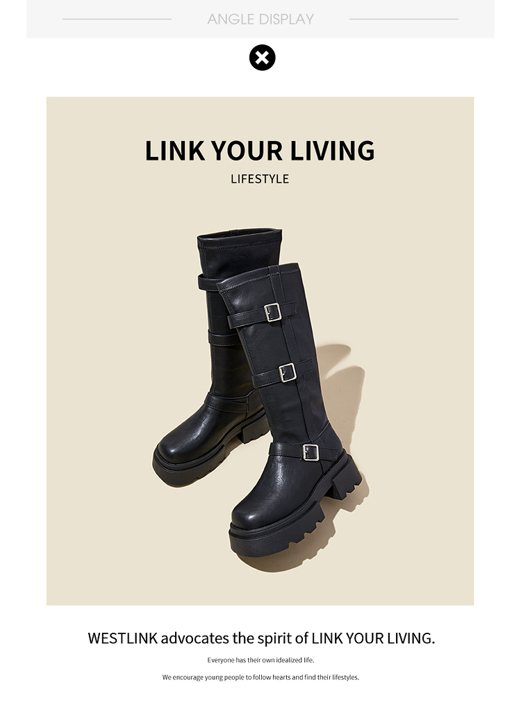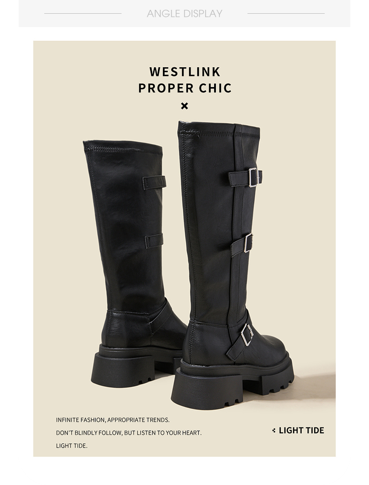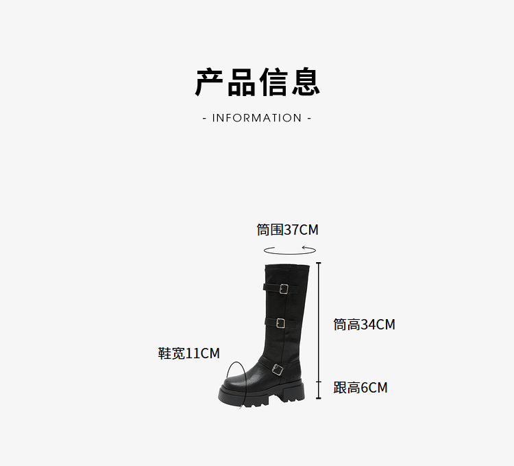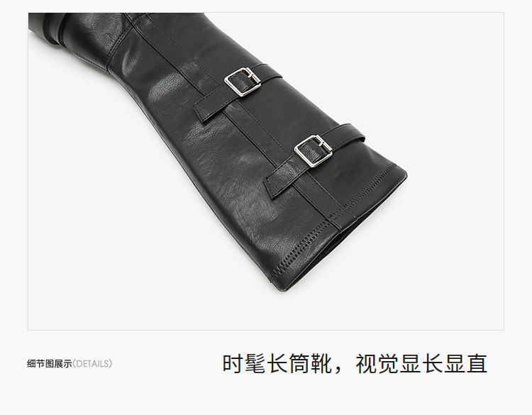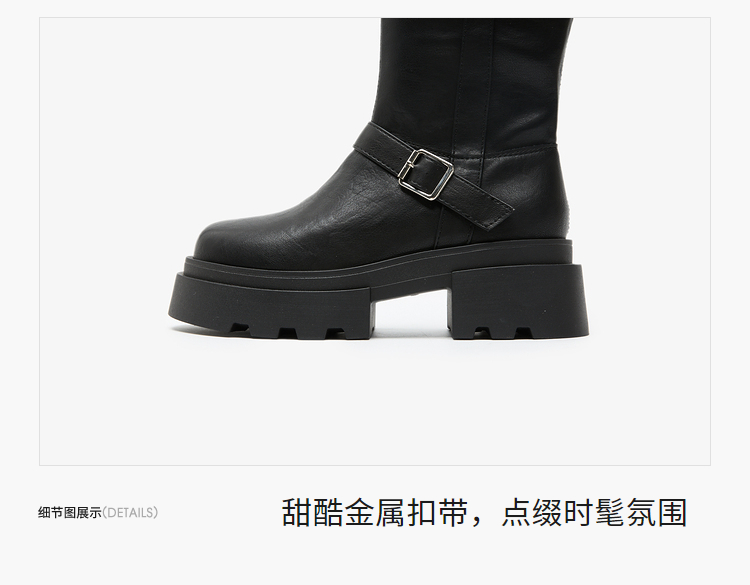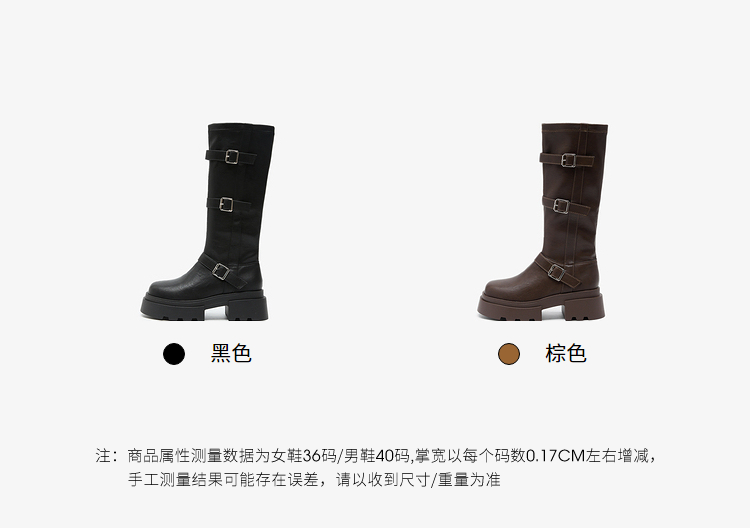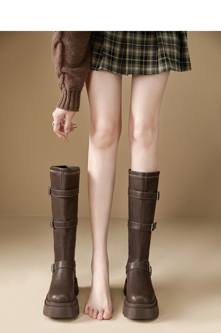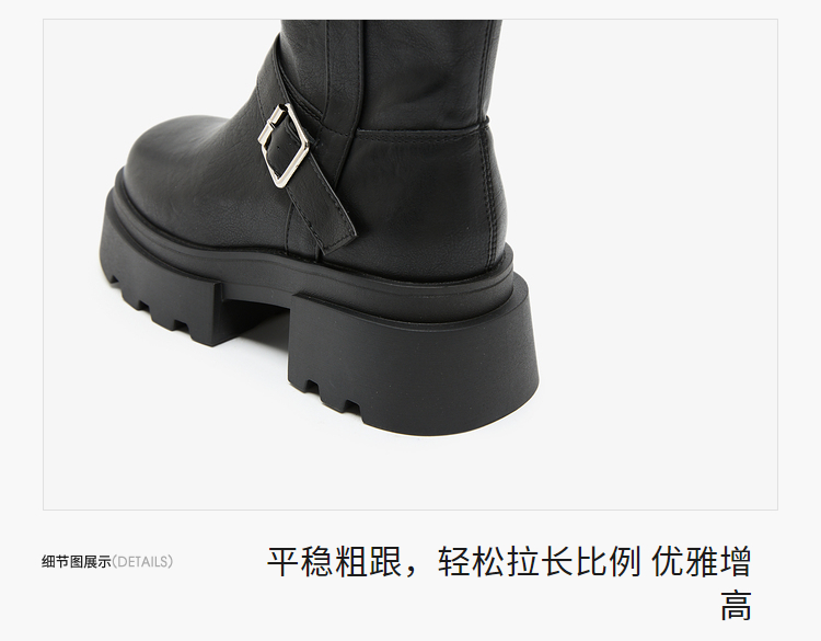 西遇长筒骑士靴女小个子新款秋冬英伦风皮带扣机车靴厚底长靴V3747763