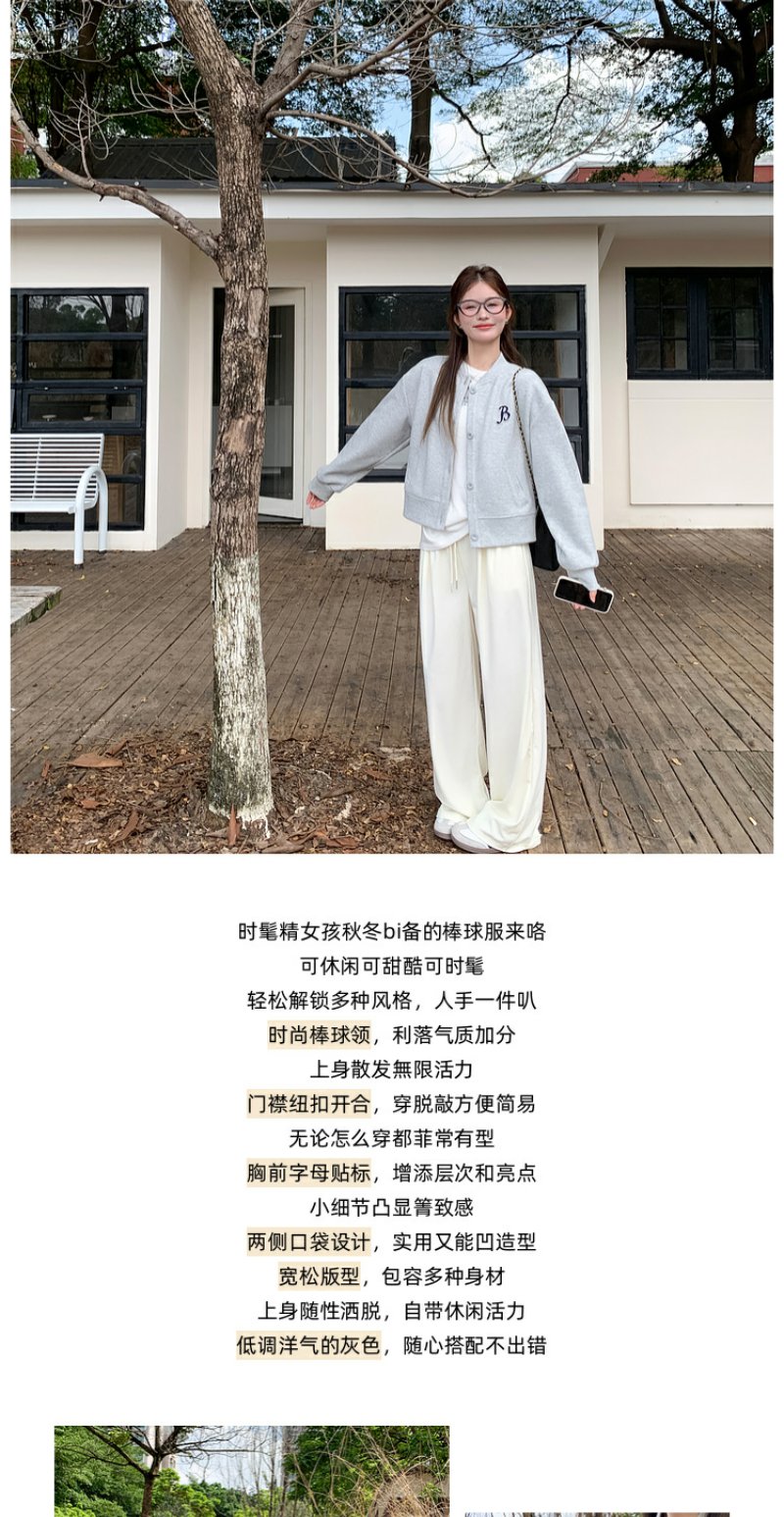 <曾小咸推荐> 韩系时尚百搭灰色宽松棒球服外套