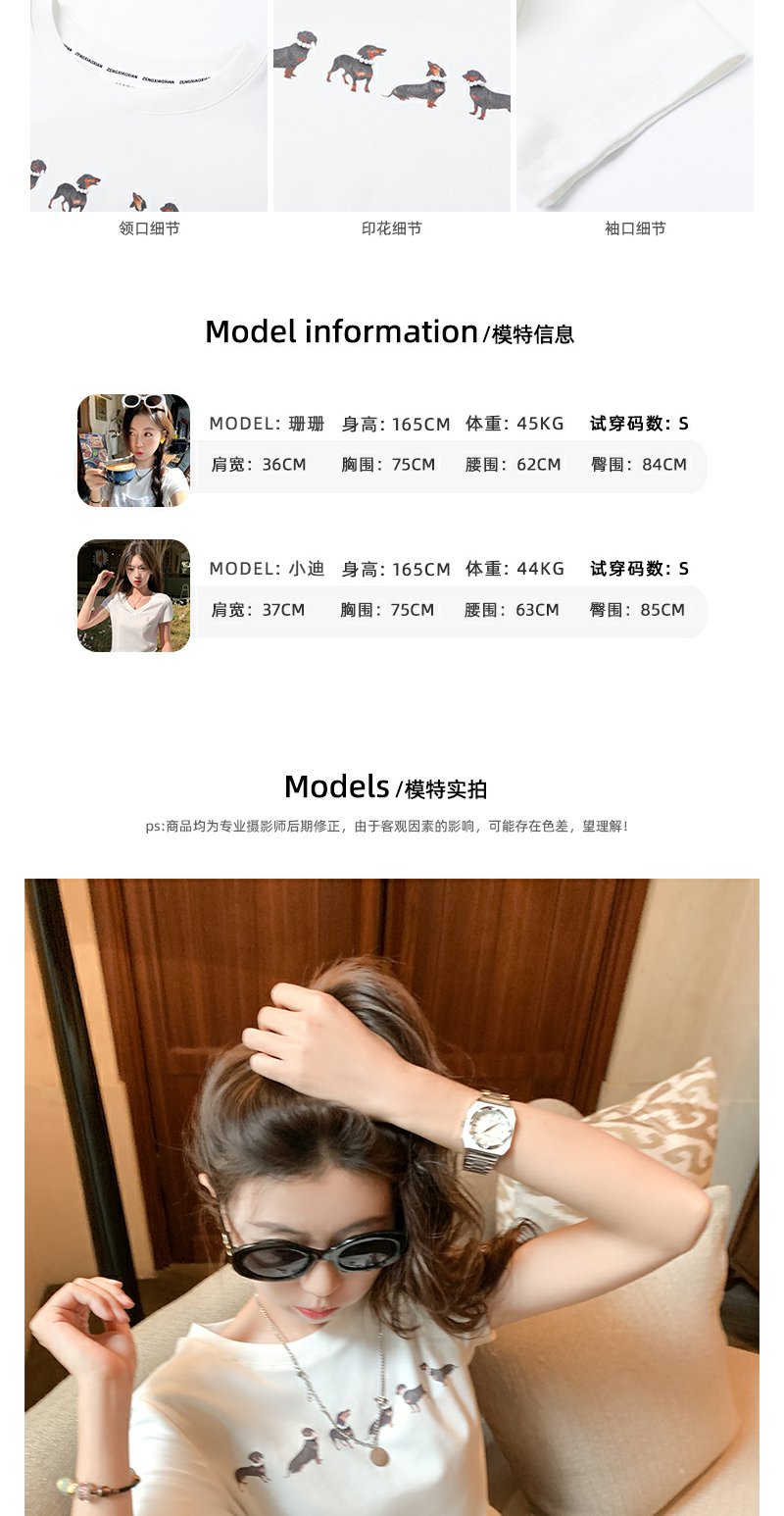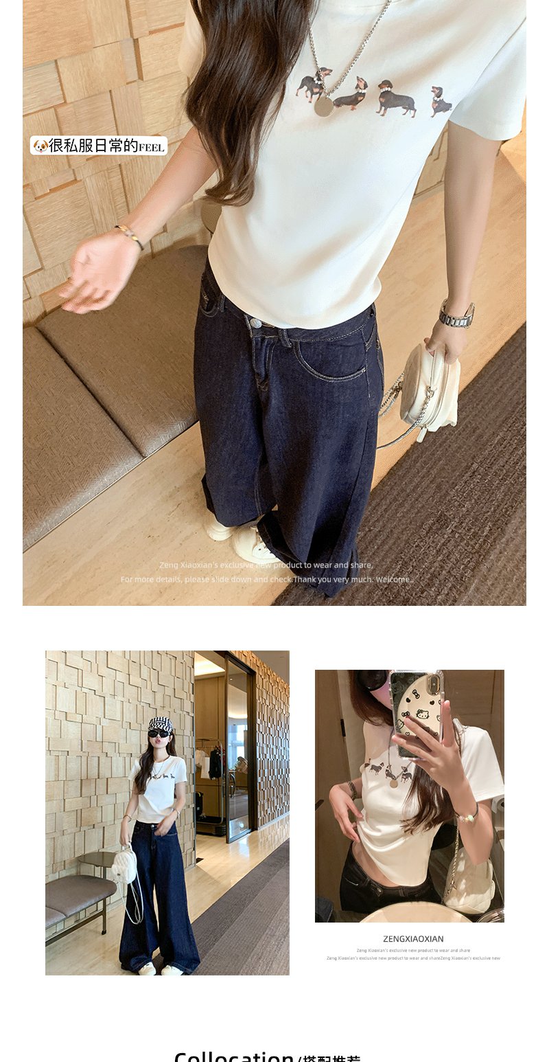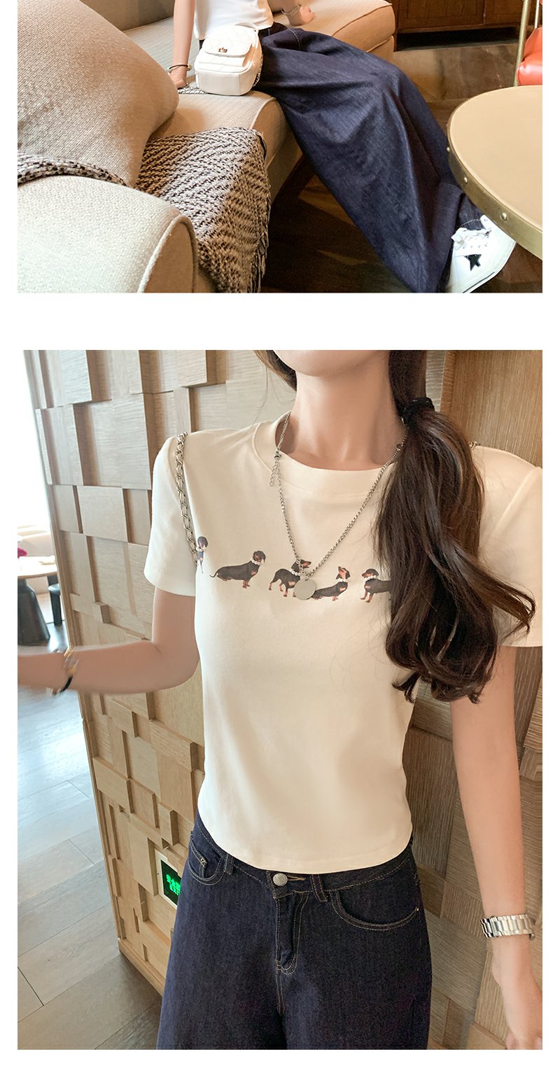 <曾小咸推荐>腊肠狗印花修身正肩短袖T恤