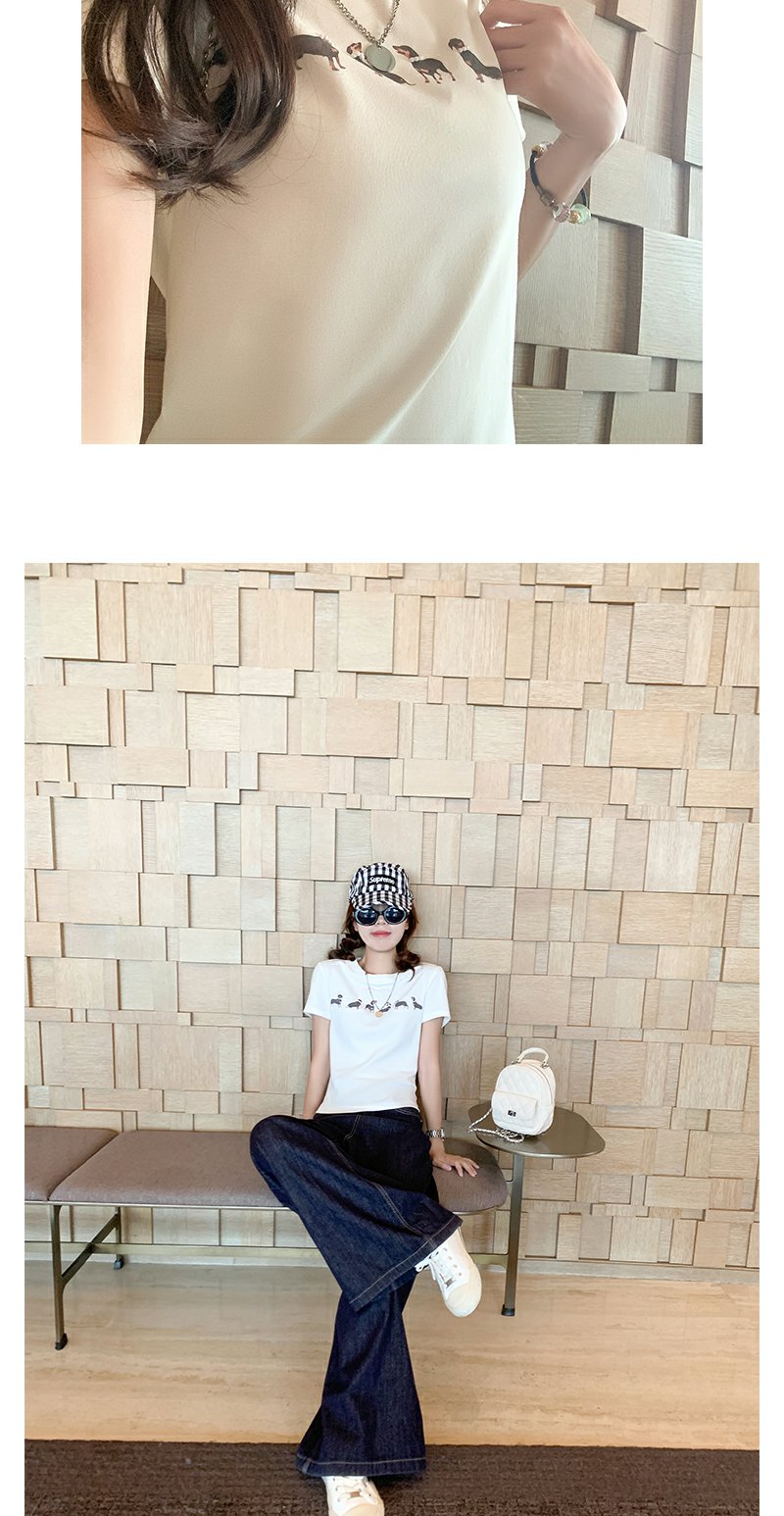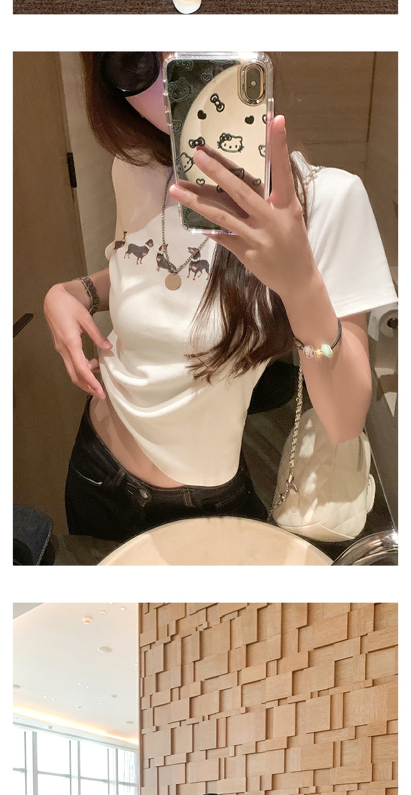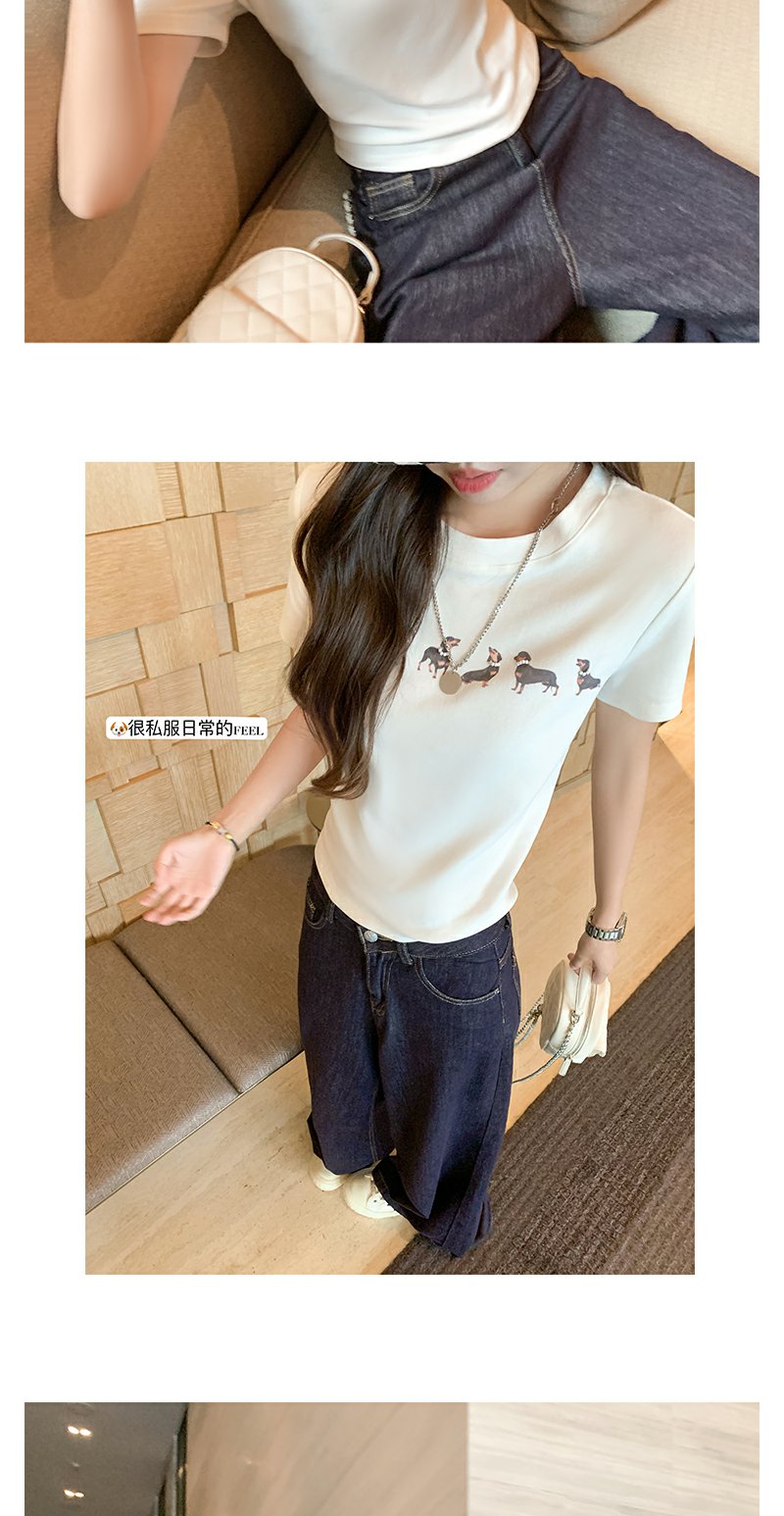 <曾小咸推荐>腊肠狗印花修身正肩短袖T恤
