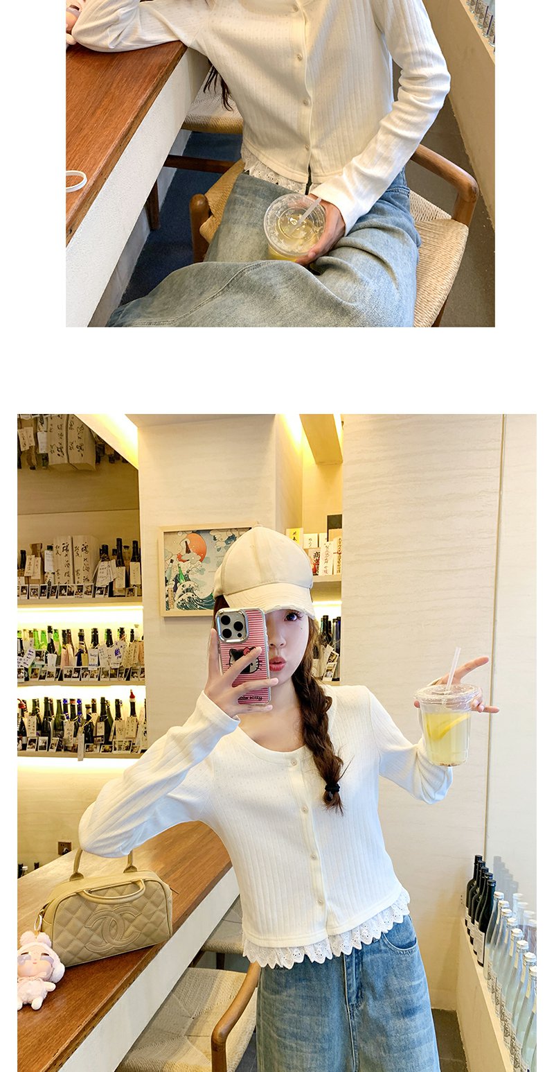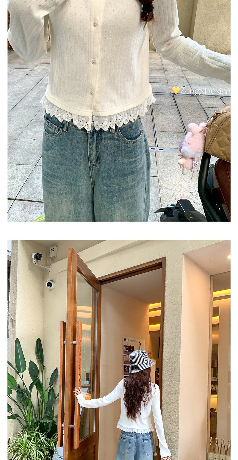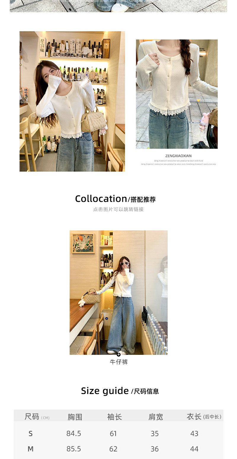 <曾小咸推荐>白色下摆拼接蕾丝长袖毛针织开衫