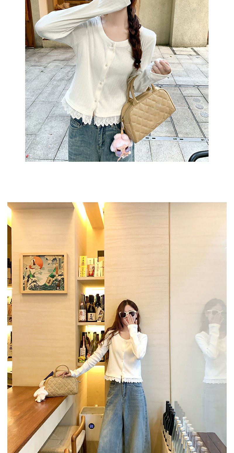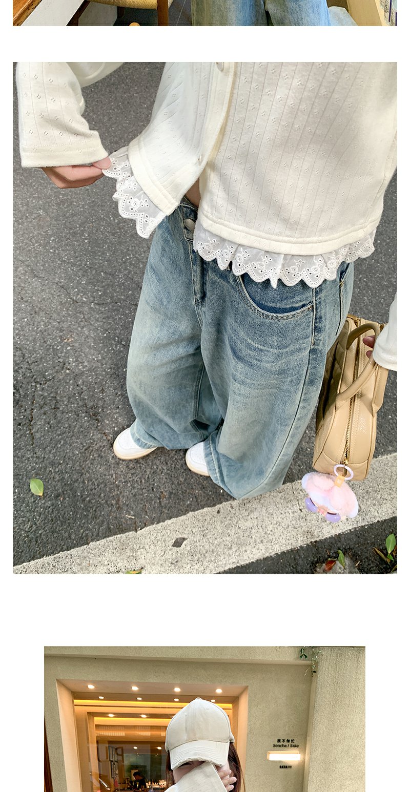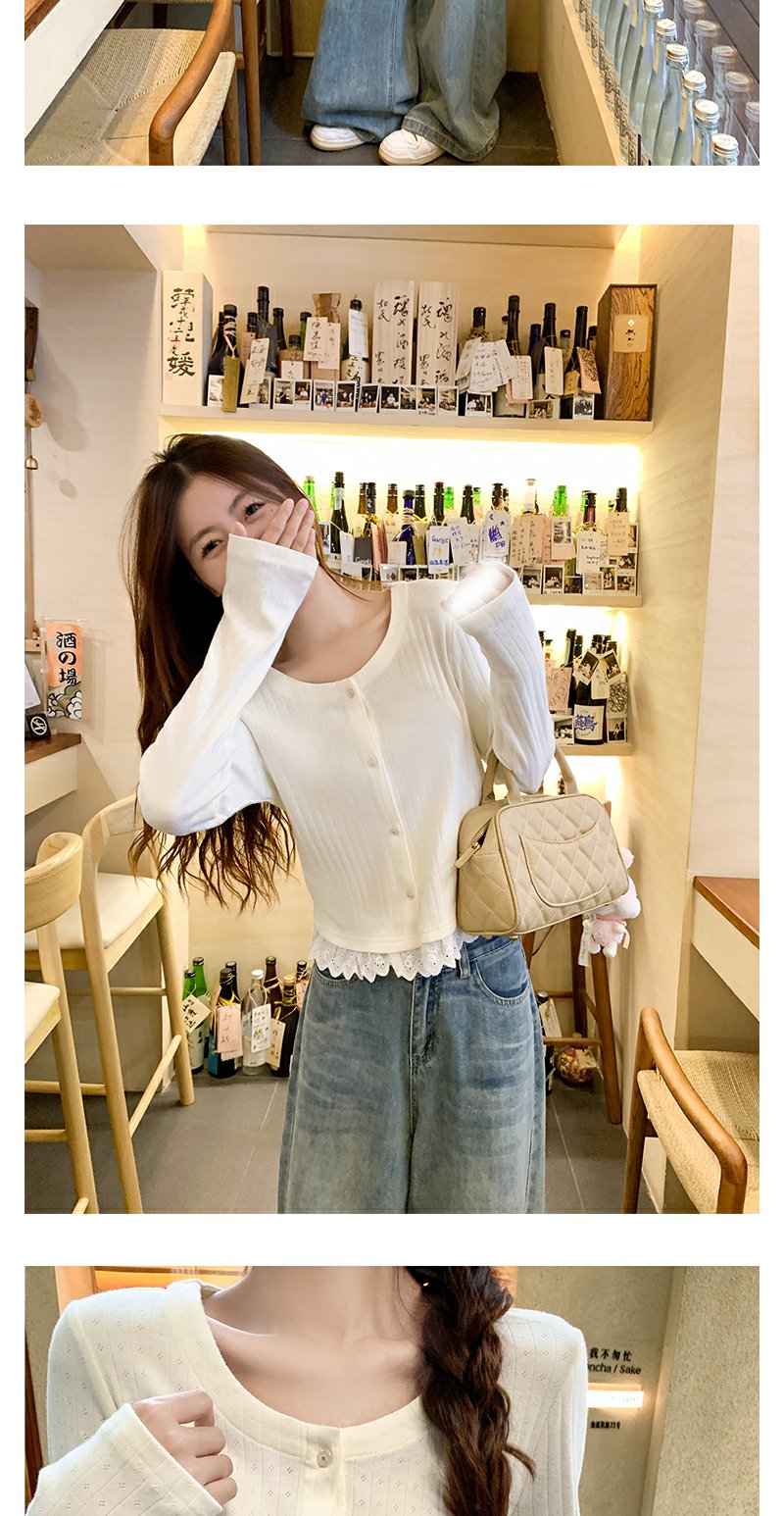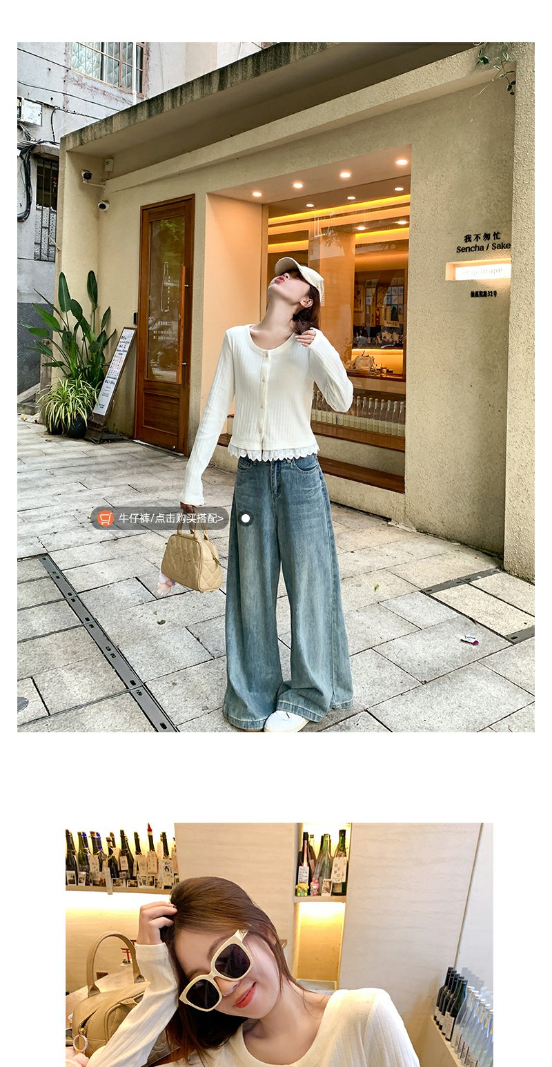 <曾小咸推荐>白色下摆拼接蕾丝长袖毛针织开衫