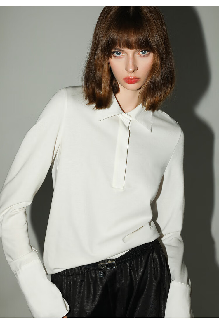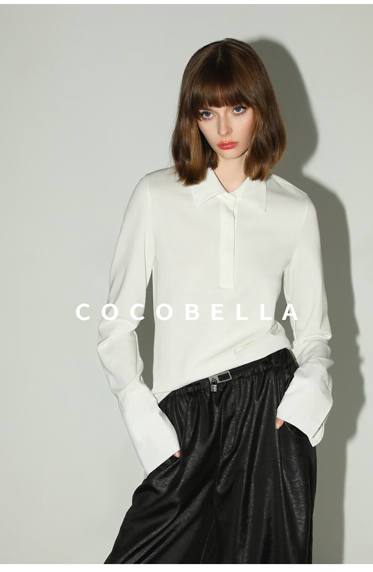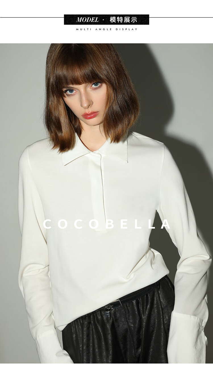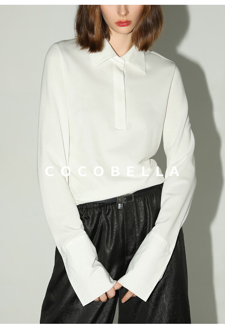 COCOBELLA设计感拼接翻领衬衫针织衫秋通勤内搭POLO衫TS0023