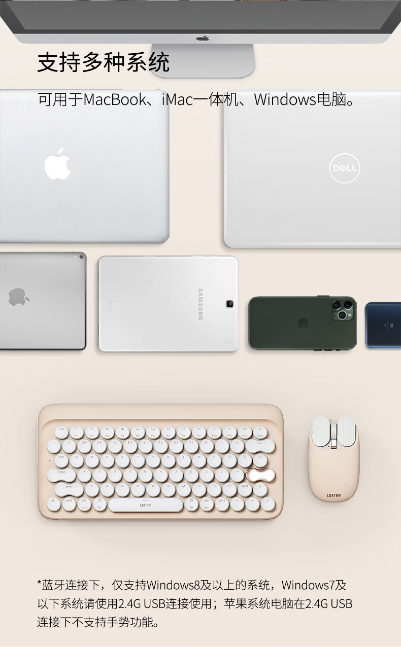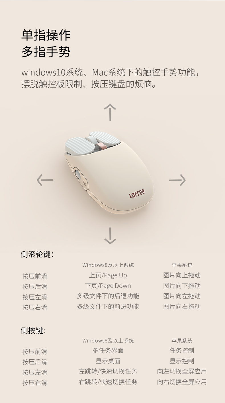 洛斐(LOFREE)无线鼠标常规多系统兼容蓝牙多功能电脑笔记本办公家用奶茶色鼠标