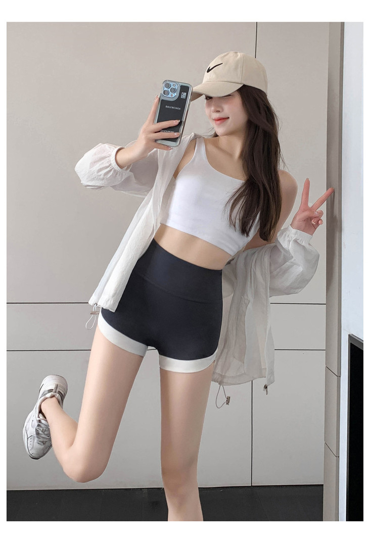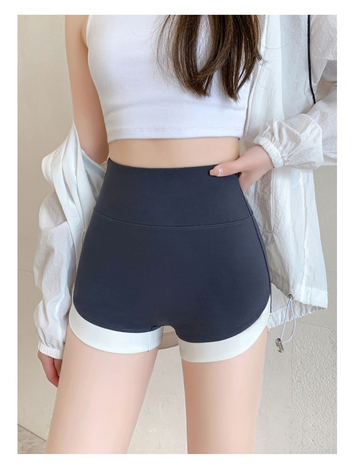 买1送1 夏季高腰撞色鲨鱼裤紧身提臀瑜伽裤三分运动短裤三分拼接安全