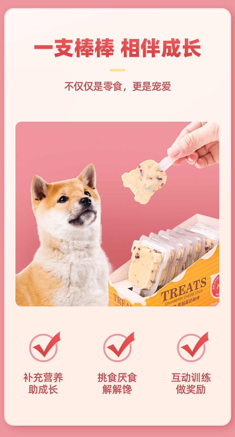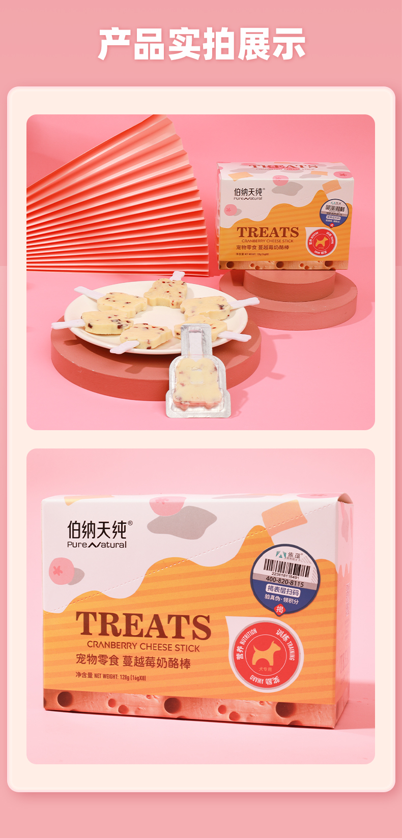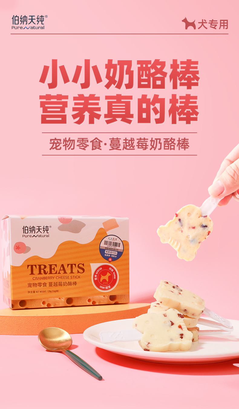 伯纳天纯宠物狗狗零食蔓越莓奶酪棒 小/中/大型犬通用狗零食训犬