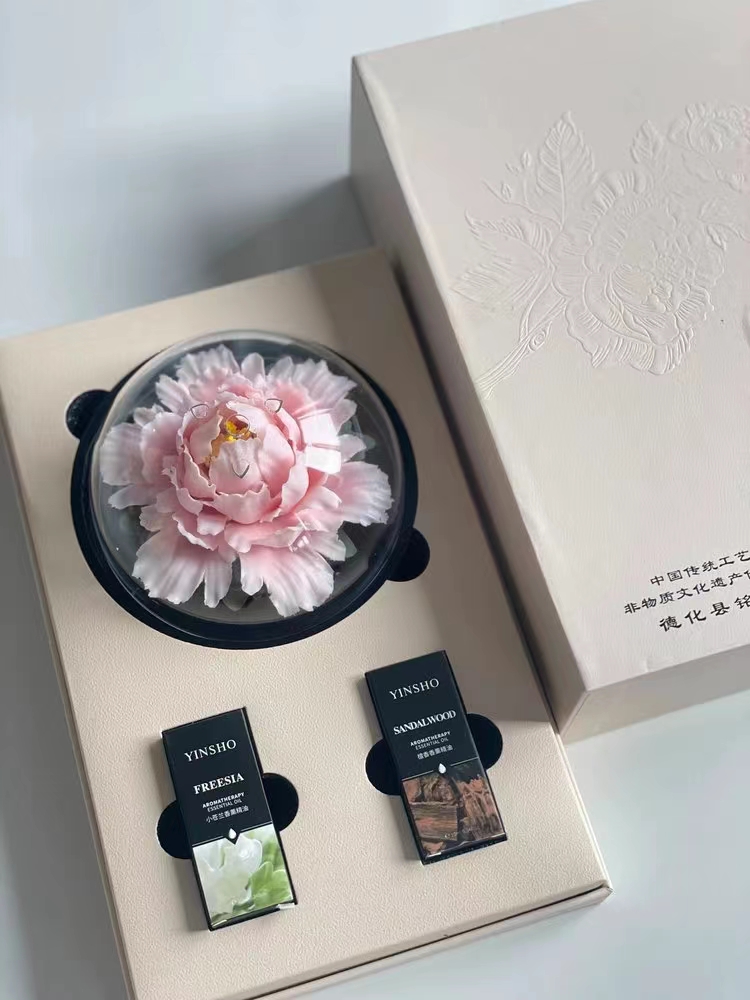 新版非遗手捏牡丹瓷花扩香器香薰礼盒