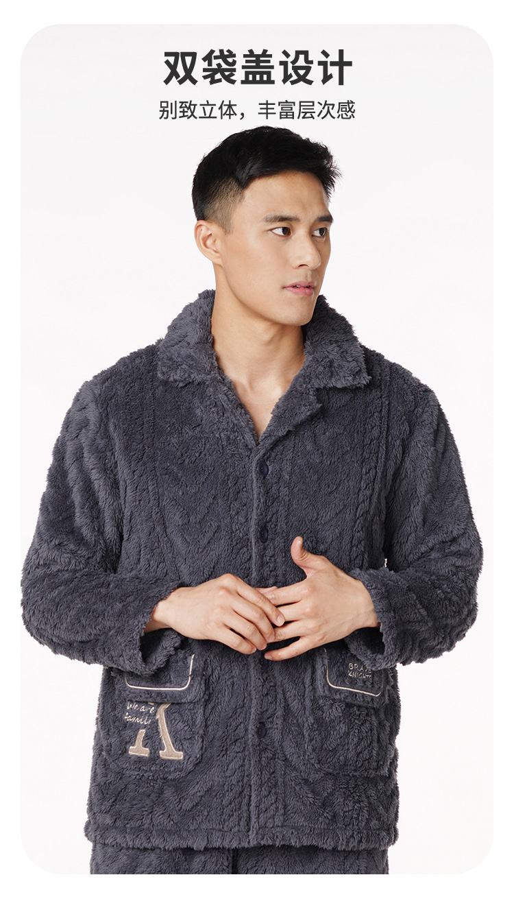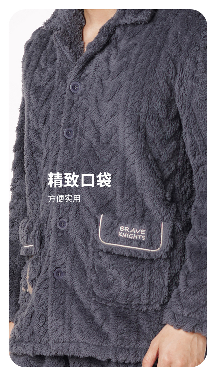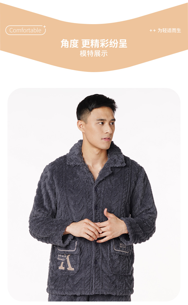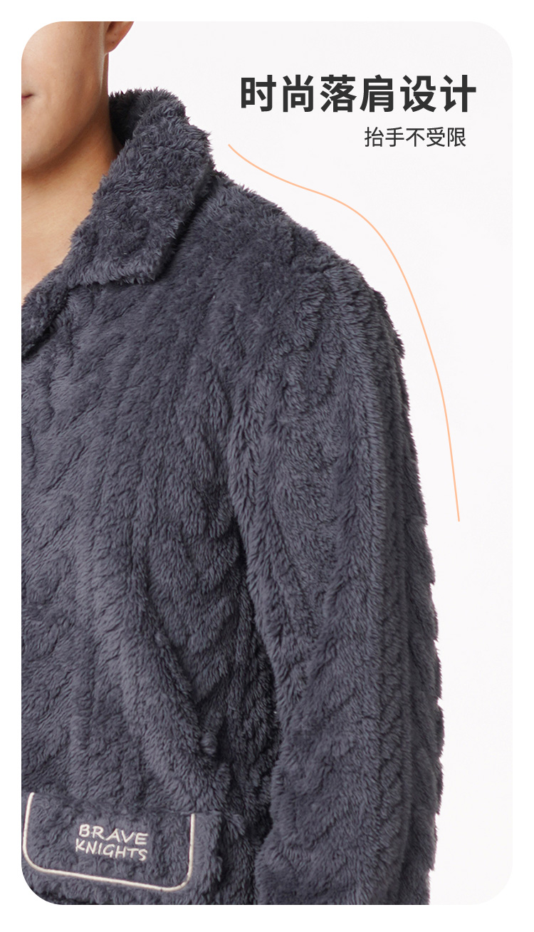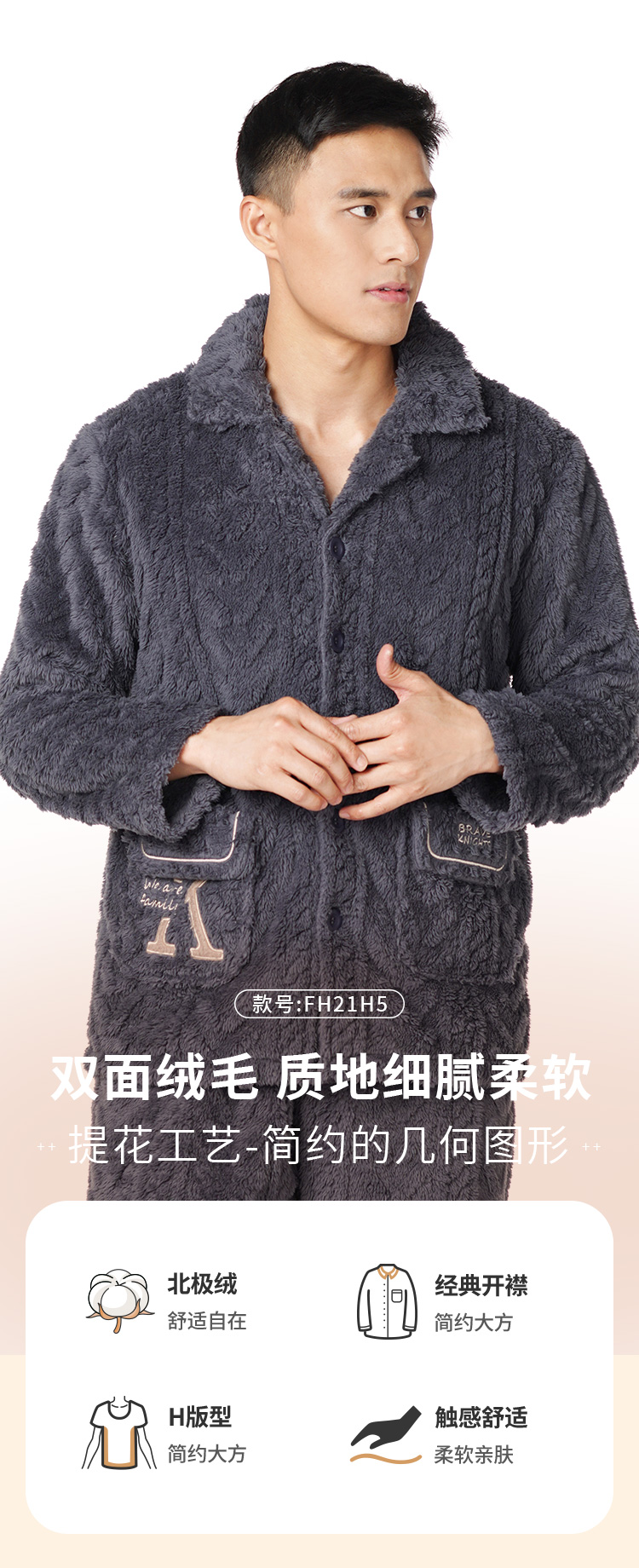 都市丽人都市锋尚生活家居男士长毛绒套装北极绒提花厚家居服长袖睡衣FH21H5