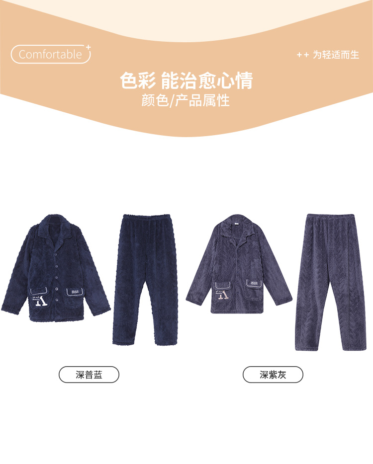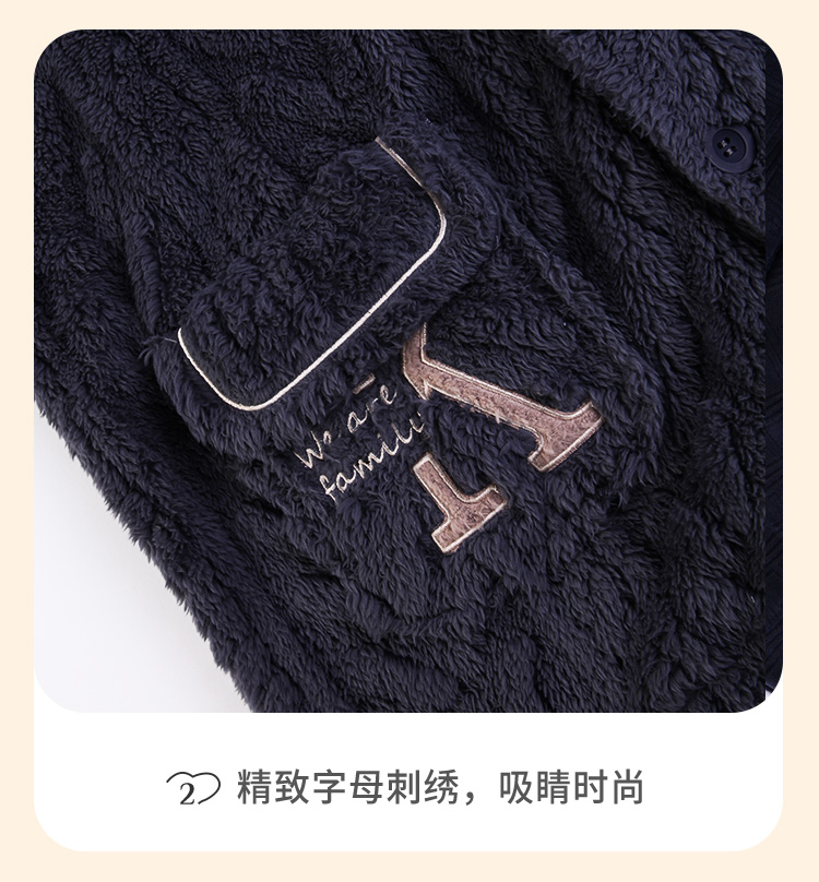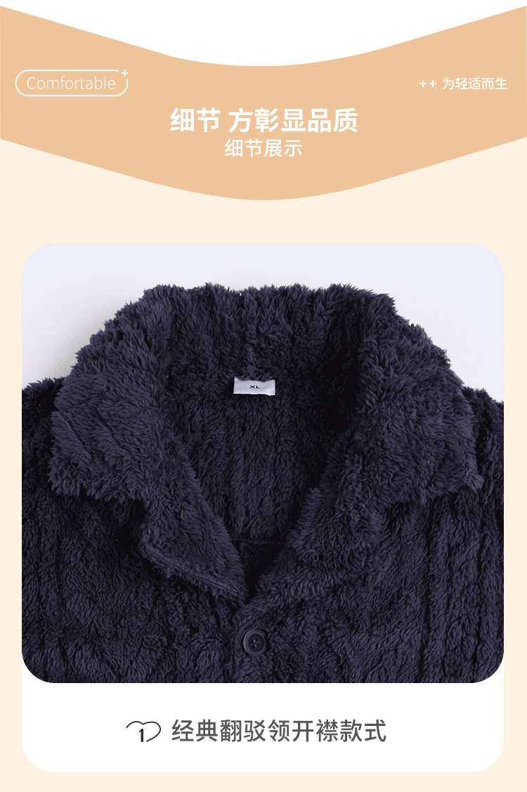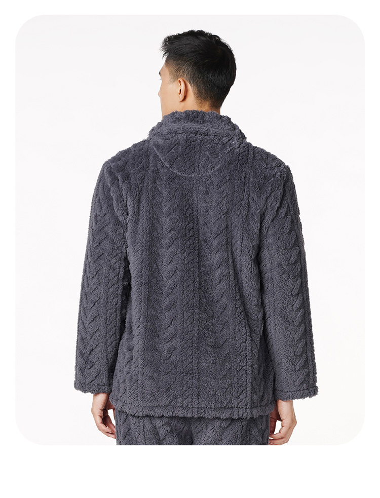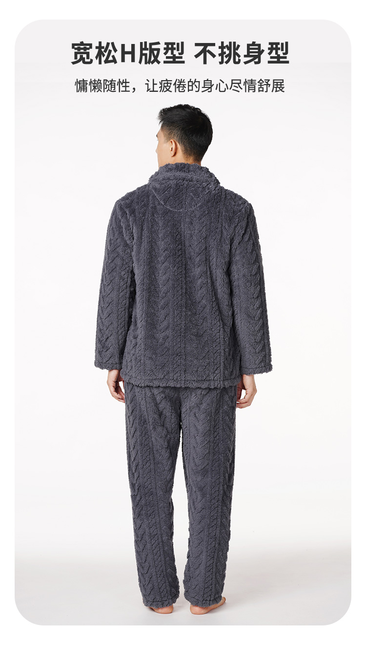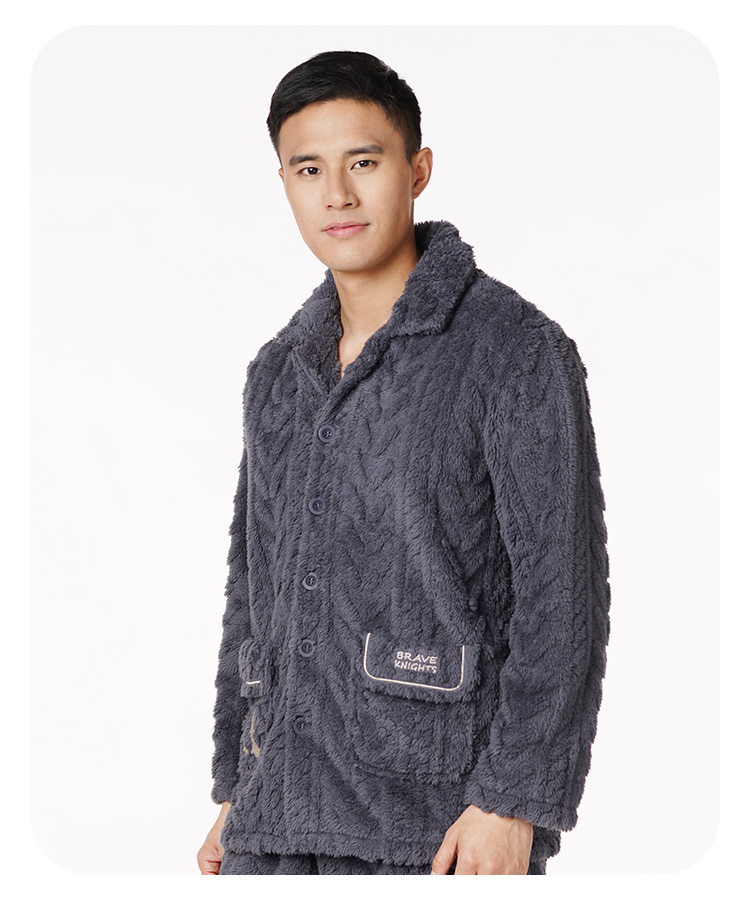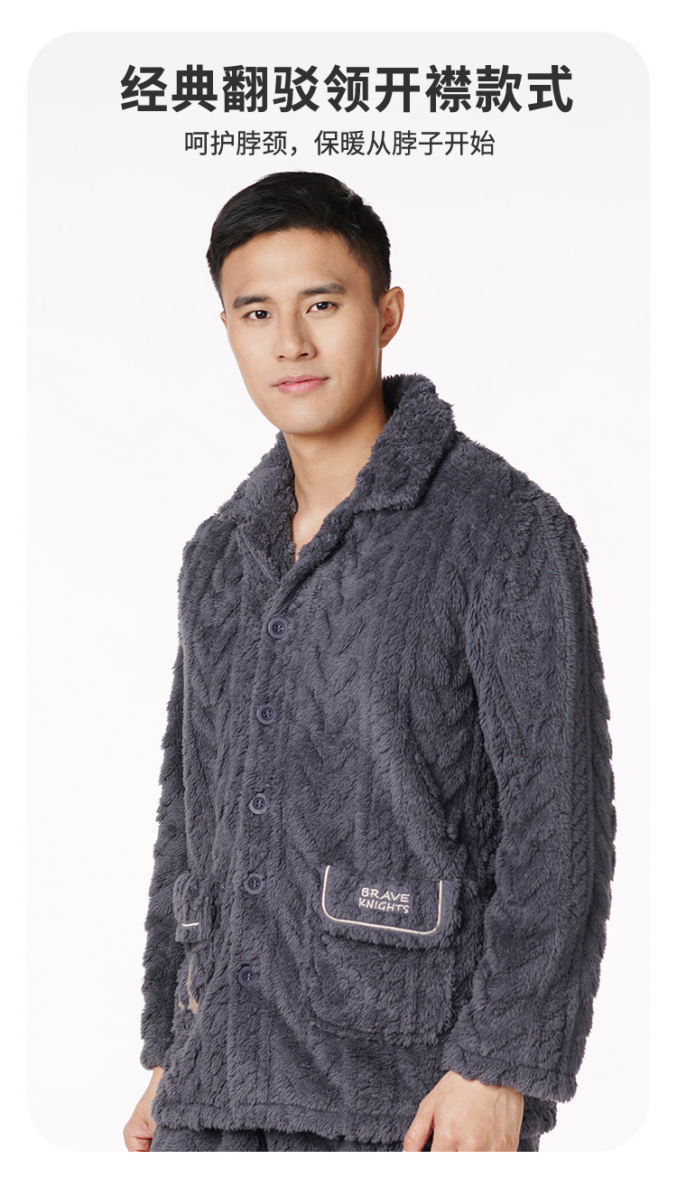 都市丽人都市锋尚生活家居男士长毛绒套装北极绒提花厚家居服长袖睡衣FH21H5
