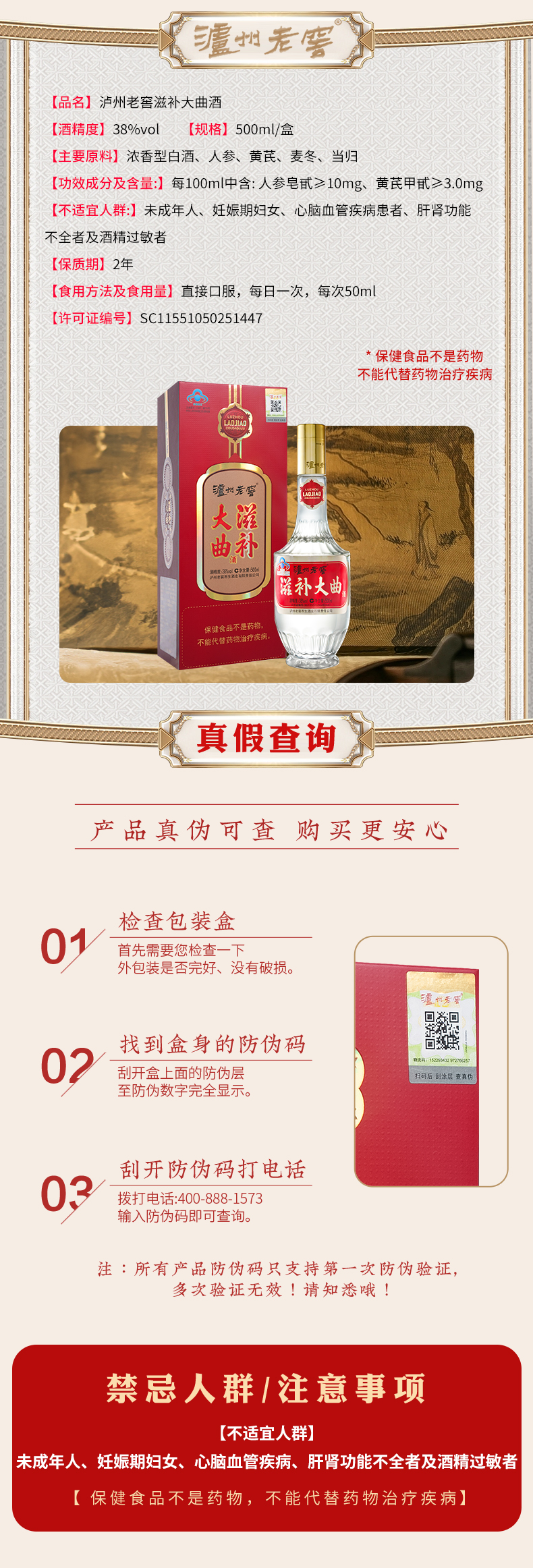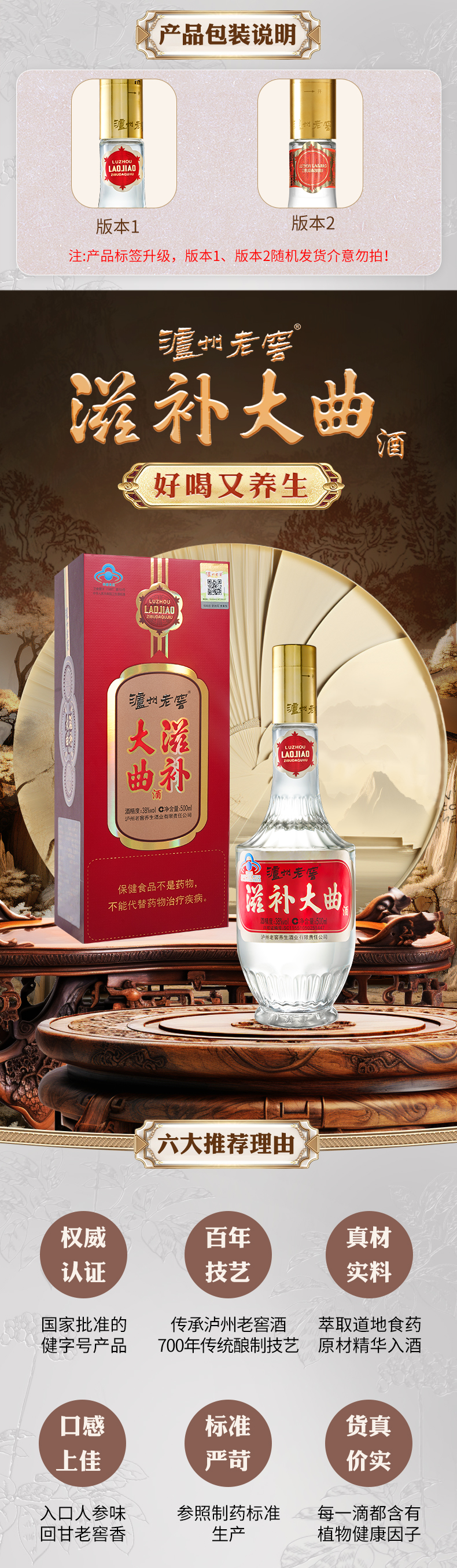 【酒厂直营】38度 泸州老窖滋补大曲酒 500ml*6 泸州老窖官方旗舰店