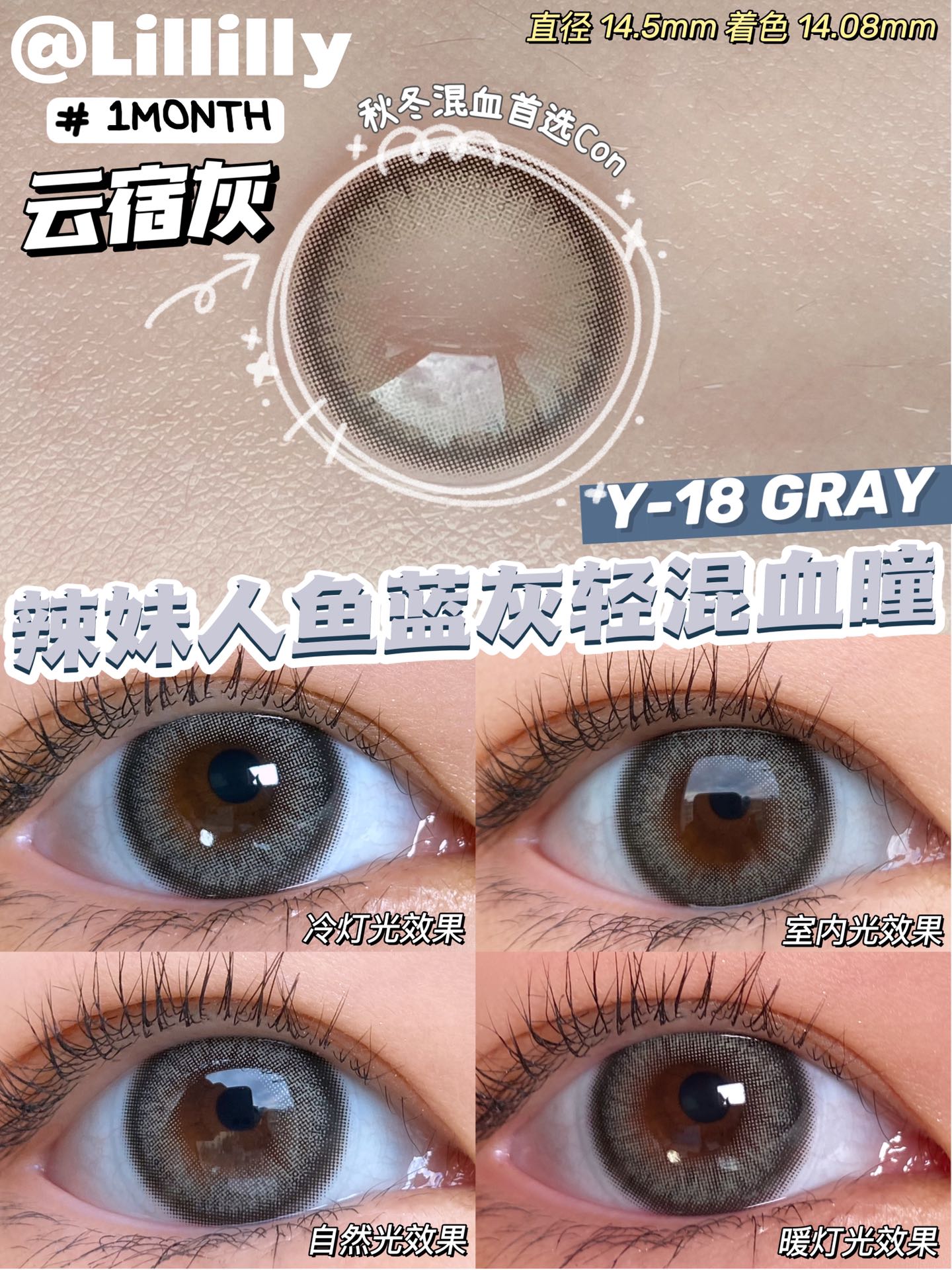 Lillilly Y-18云宿灰 月抛 2片 14.5mm 着色14.0mm 基弧8.6 含水42% 新锐国货