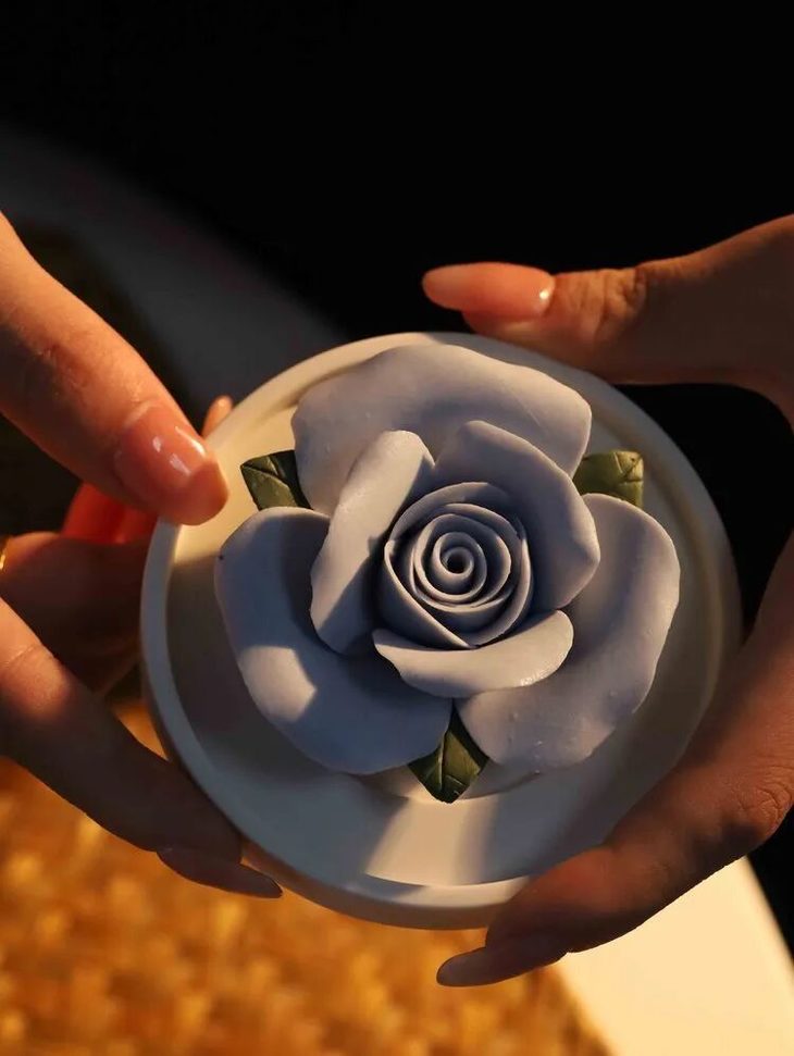 双非遗手捏玫瑰瓷花线香盘香礼盒,一套内含:非遗手捏瓷花+仙鹤莲花香炉+鹅梨帐中香+中国4大名香之一的龙涎香+礼盒、手提礼袋【G】