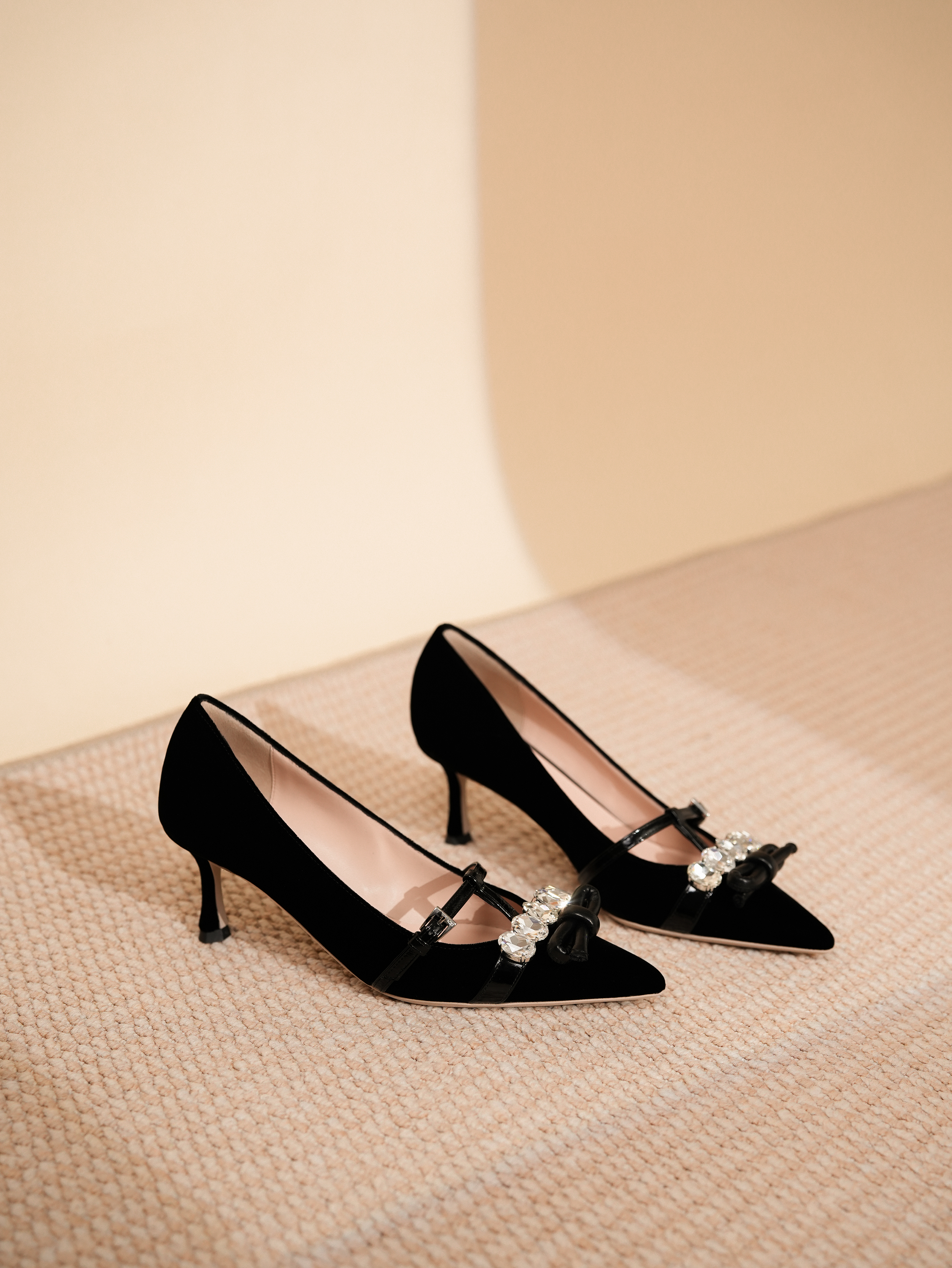 【颜色】:黑色、粉色 【鞋面材质】:丝绒