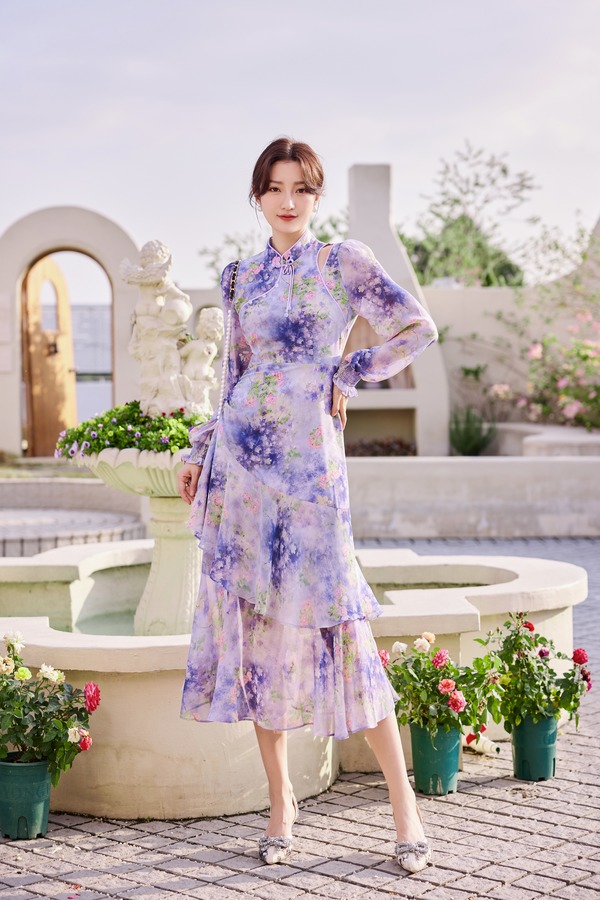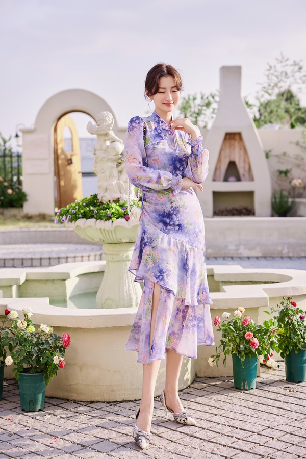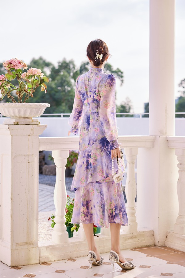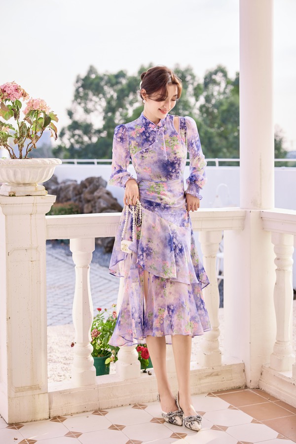 Le Malene 露肩盘扣修身鱼尾连衣裙 19908