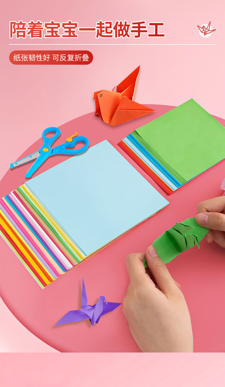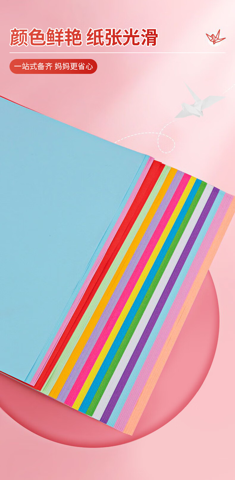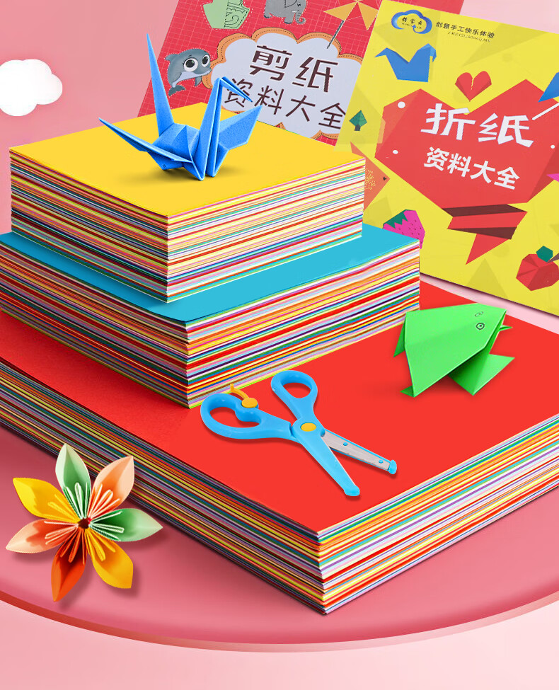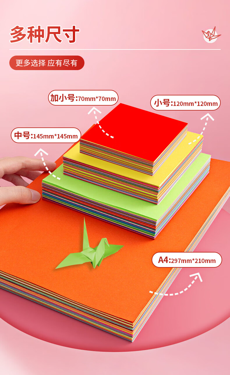 绘威 300张手工折纸10色学生彩纸剪纸美术绘画软卡纸DIY大中小A4各100张 儿童文具生日礼物