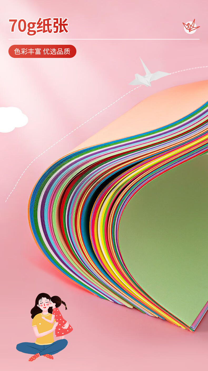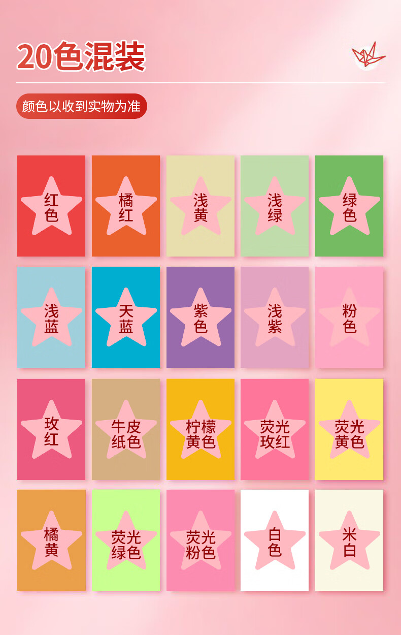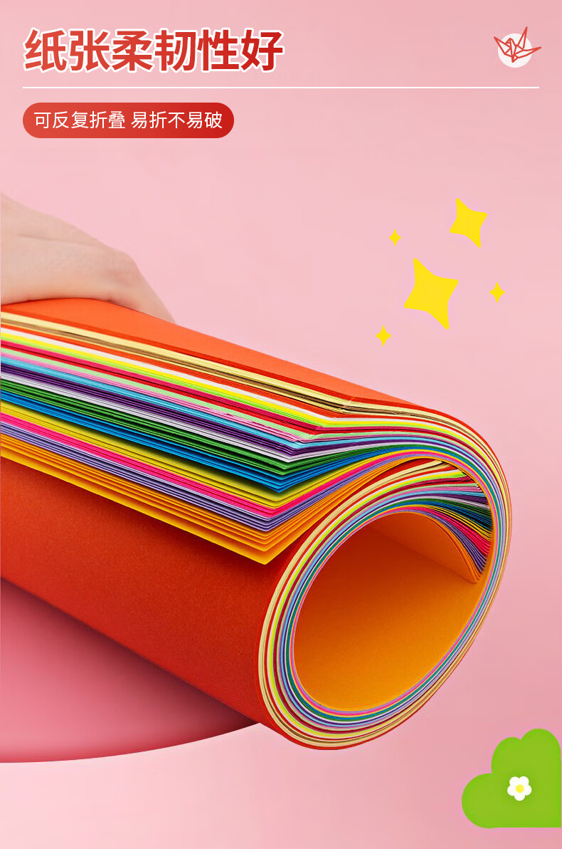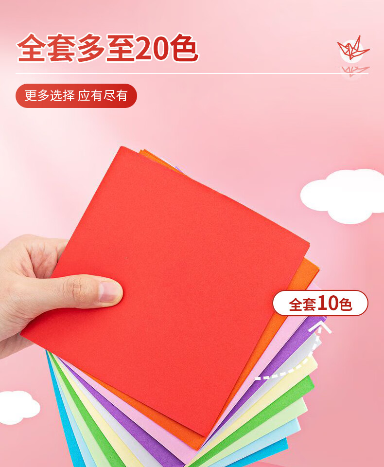 绘威 300张手工折纸10色学生彩纸剪纸美术绘画软卡纸DIY大中小A4各100张 儿童文具生日礼物