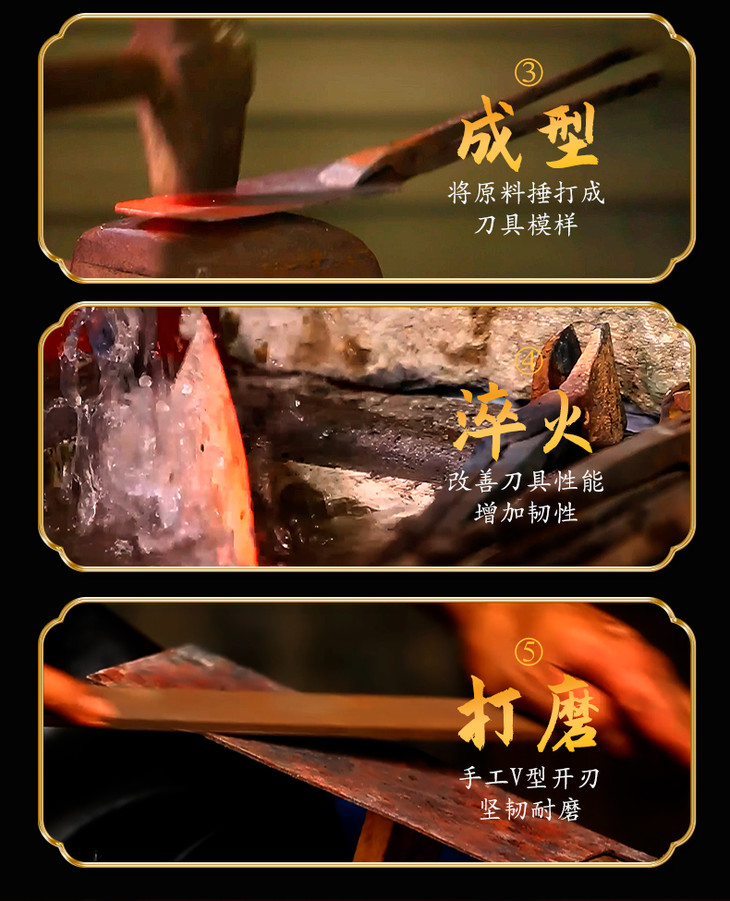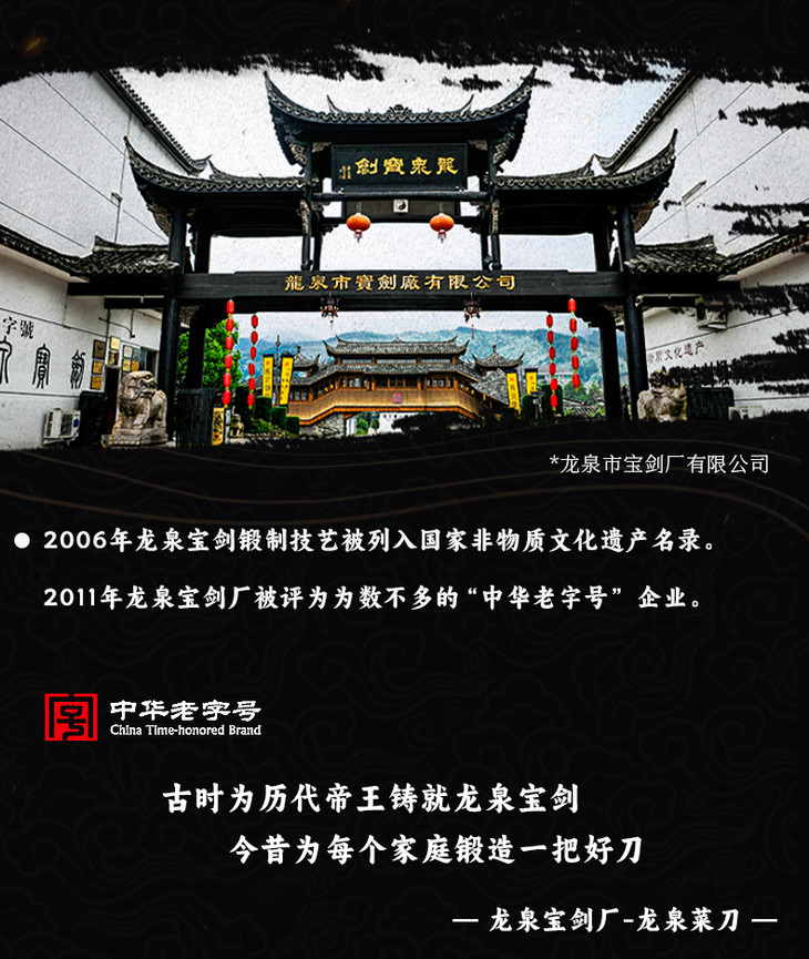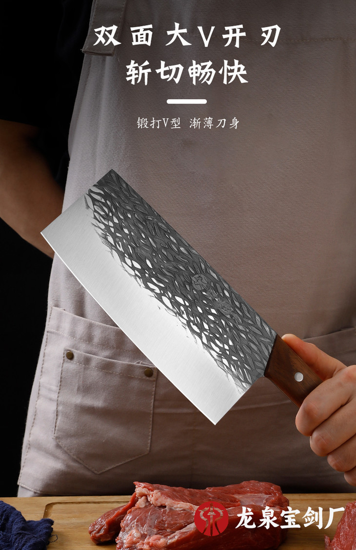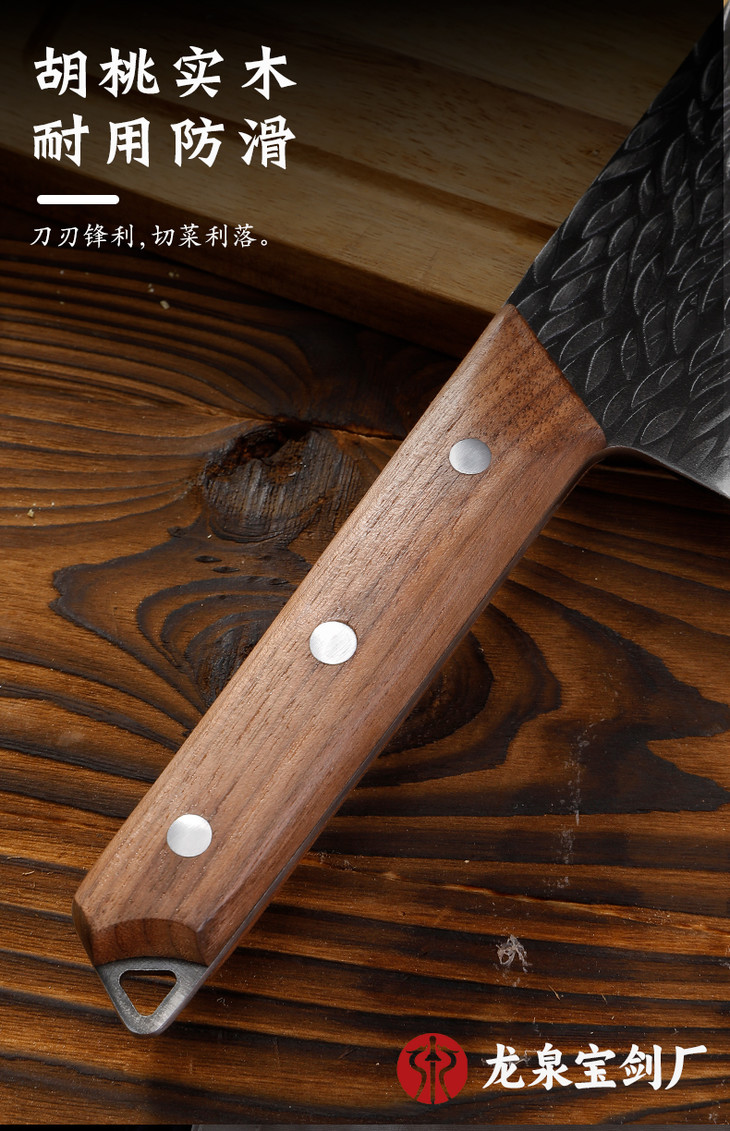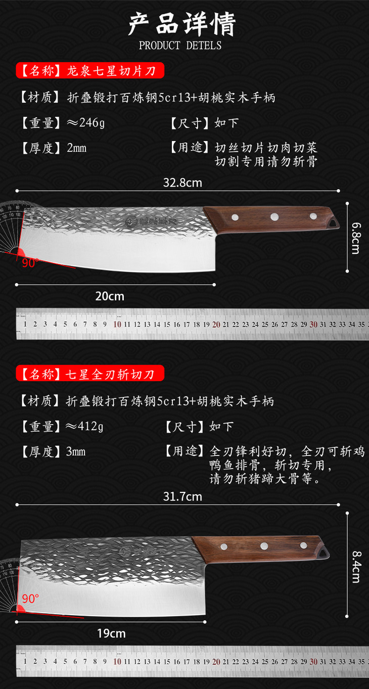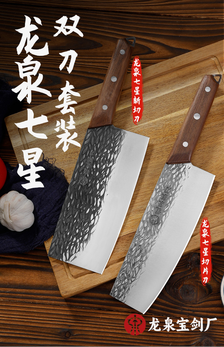 【龙泉宝剑厂-龙泉菜刀】龙泉七星双刀套组 全刃锋利 光油防锈刀身 胡桃木实木手柄 渐薄刀身 结实耐用