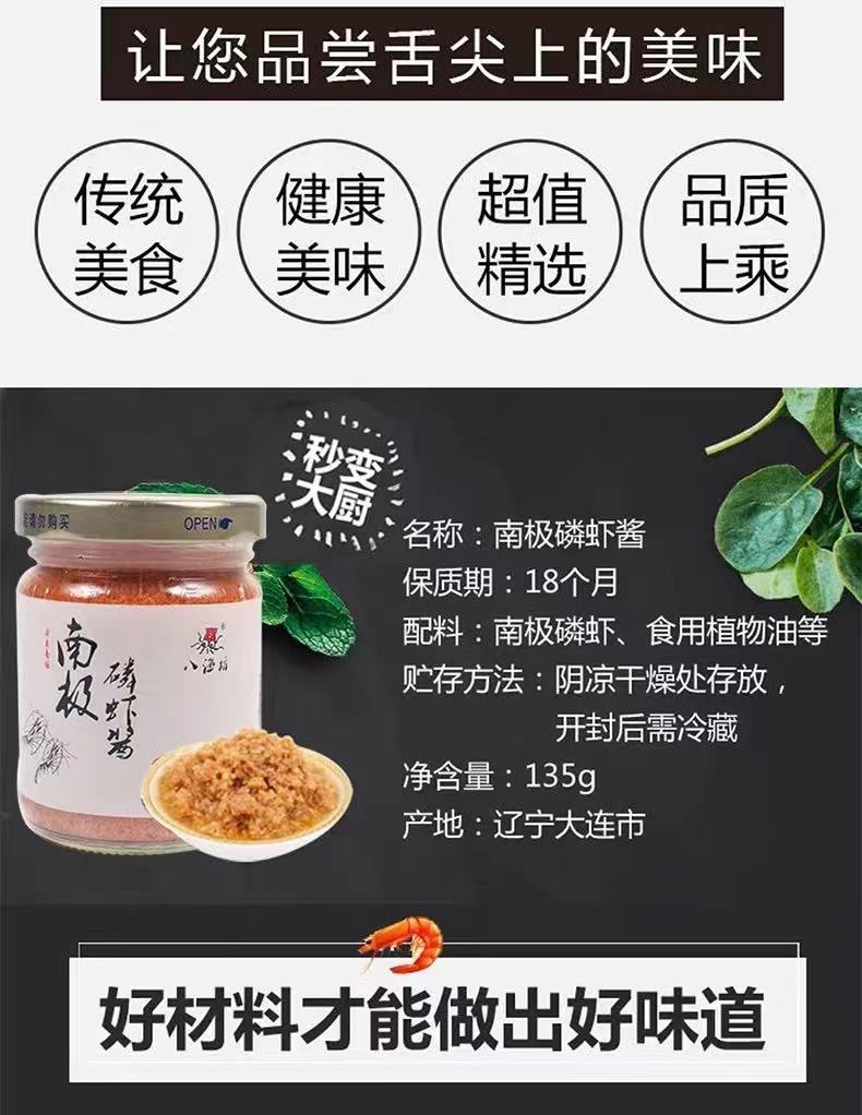 6瓶39.9 鲜美绝了❗️150只虾=一瓶虾酱 这鲜的不一般【八渔坊南极磷虾酱】️杂质 配料表纯净 ️添加 新鲜南极磷虾制作 打开就是虾香扑鼻 被世卫组织誉为最完美食物