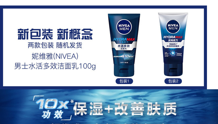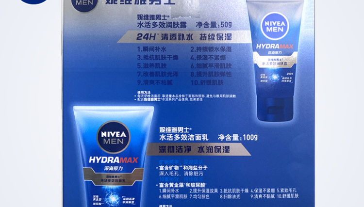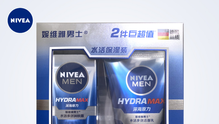 【妮维雅】男士套装面霜水活多效润肤露50g送100g洗面奶套装