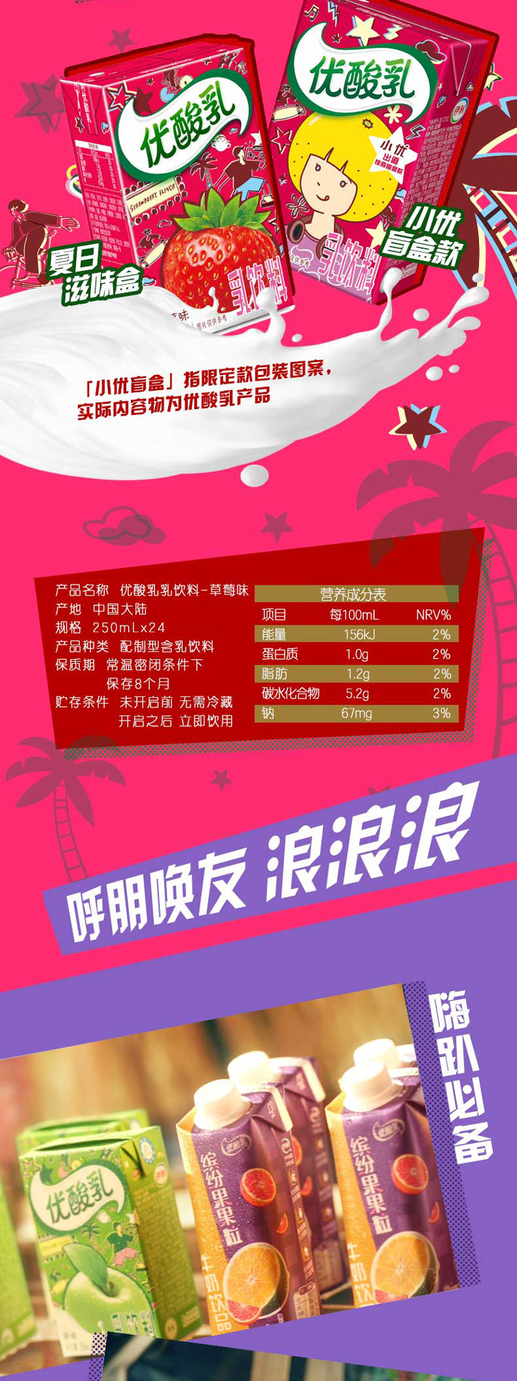 伊利草莓味优酸乳250ml*24盒