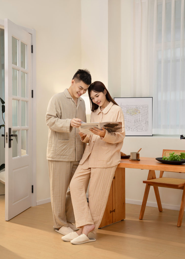 2月11日停运~最新升级四层纱柔软情侣睡衣 越洗越软 柔软亲肤 透气舒适 男女居家睡眠套装