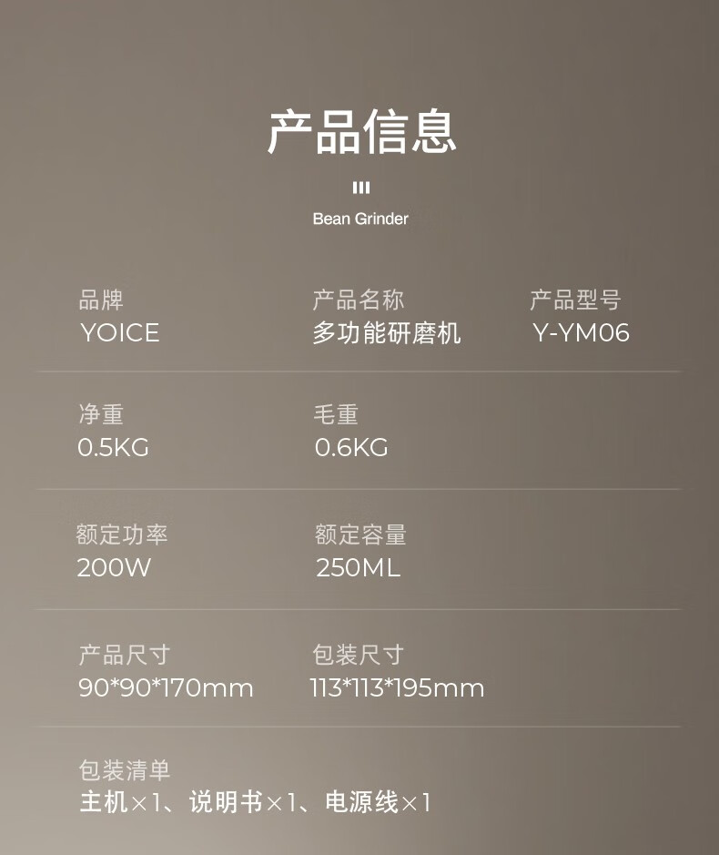 优益YOICE厨房用品研磨机304不锈钢Y-YM06